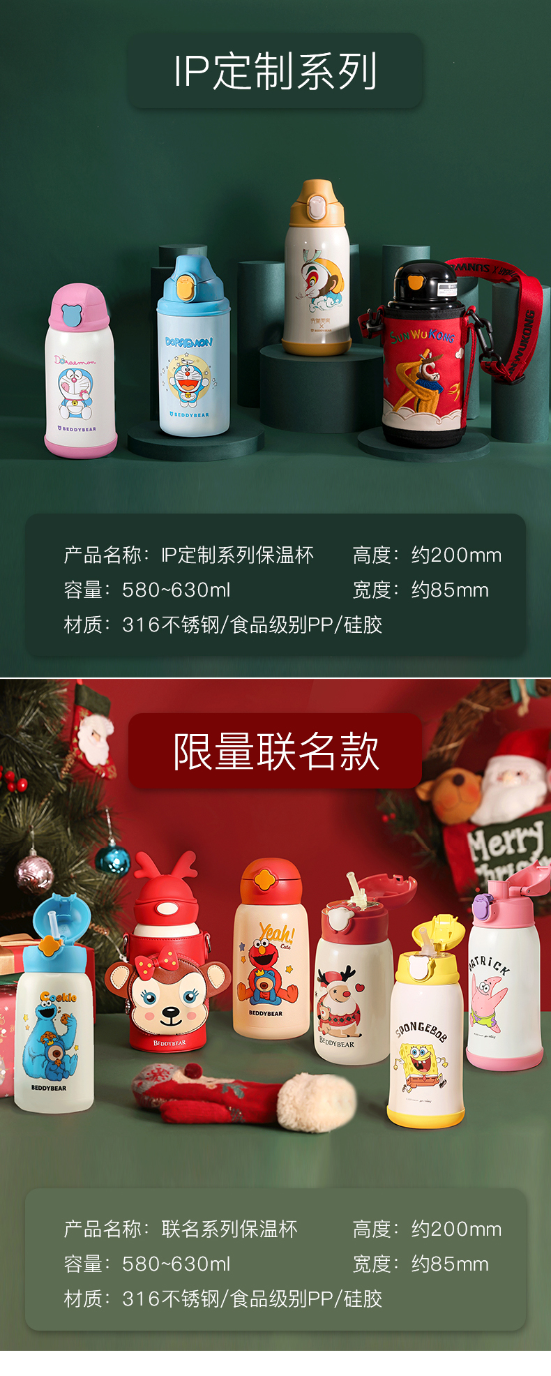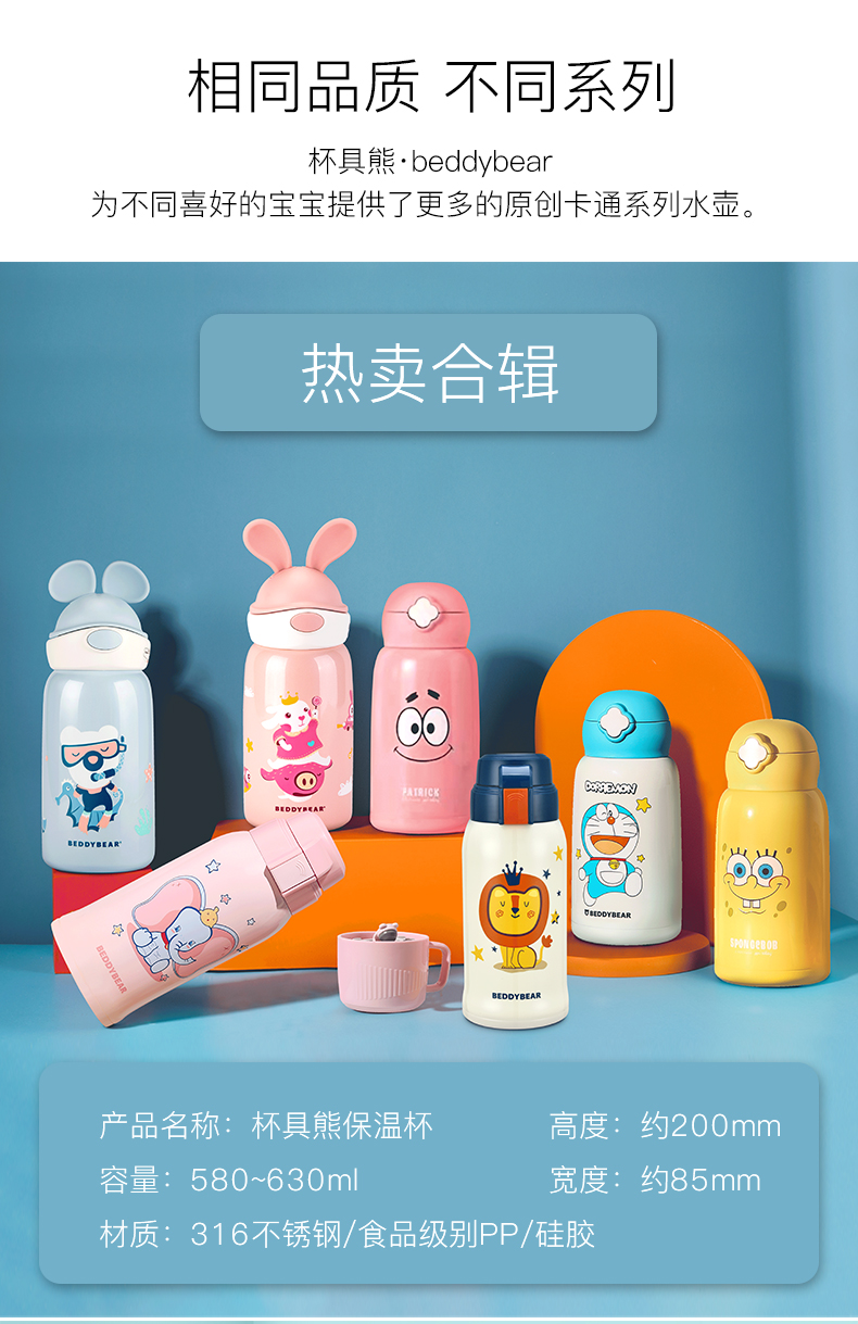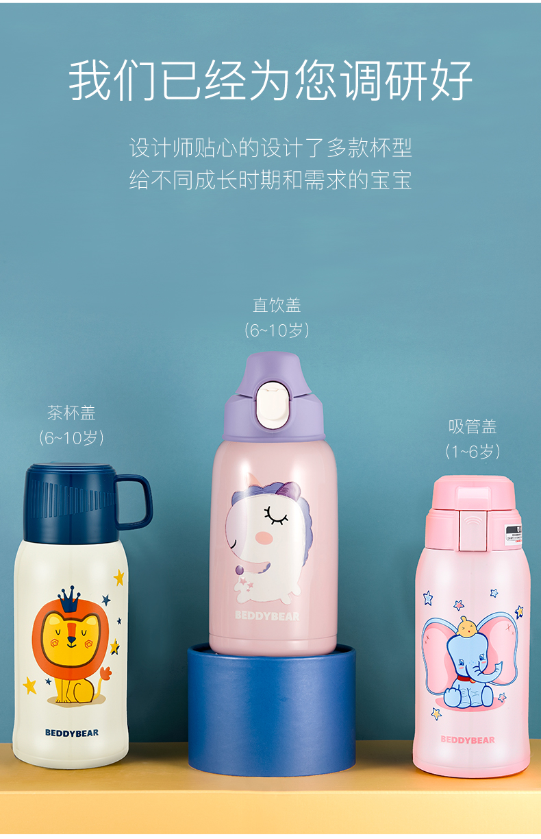 杯具熊儿童保温杯带吸管女幼儿园男宝宝小学生旗舰店官方水杯水壶