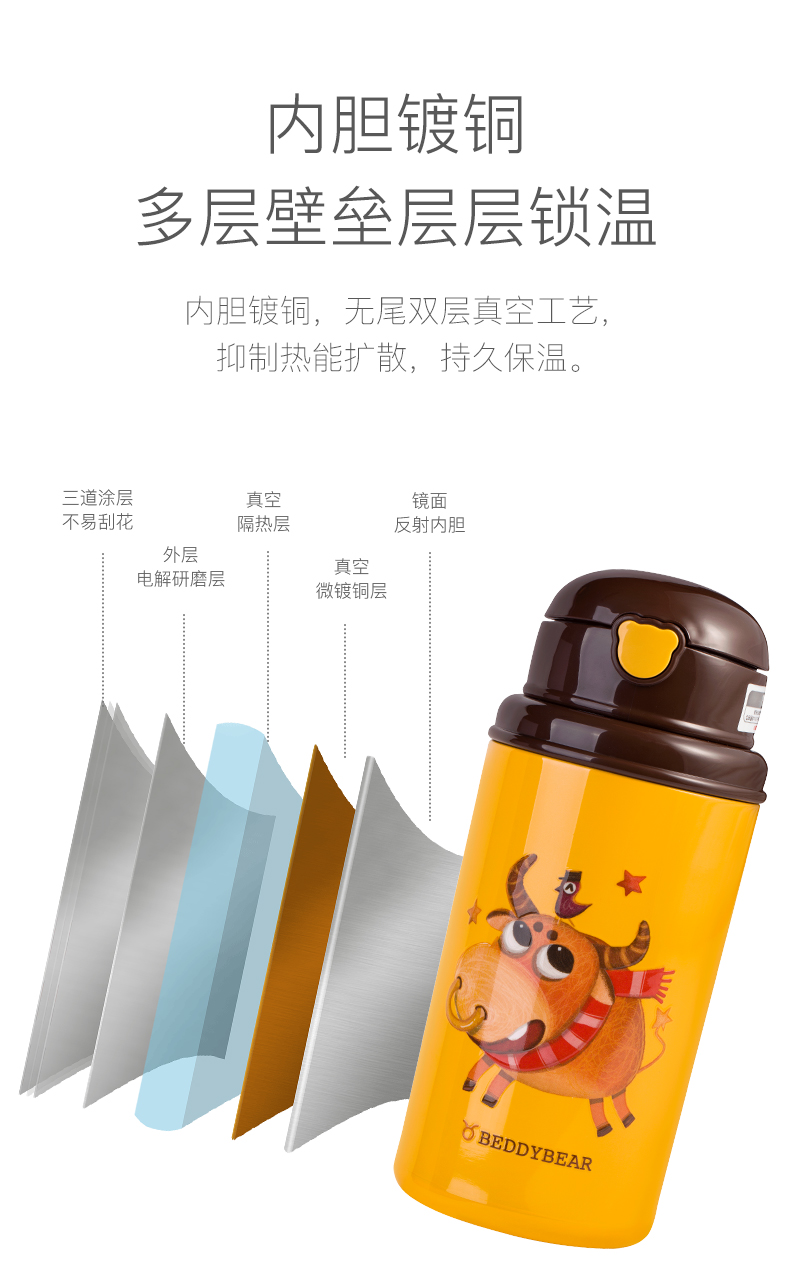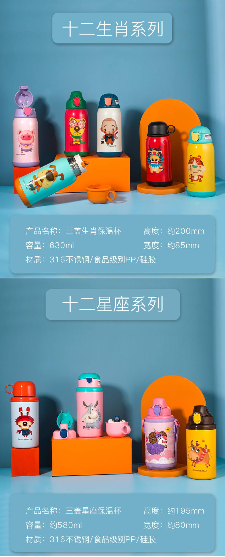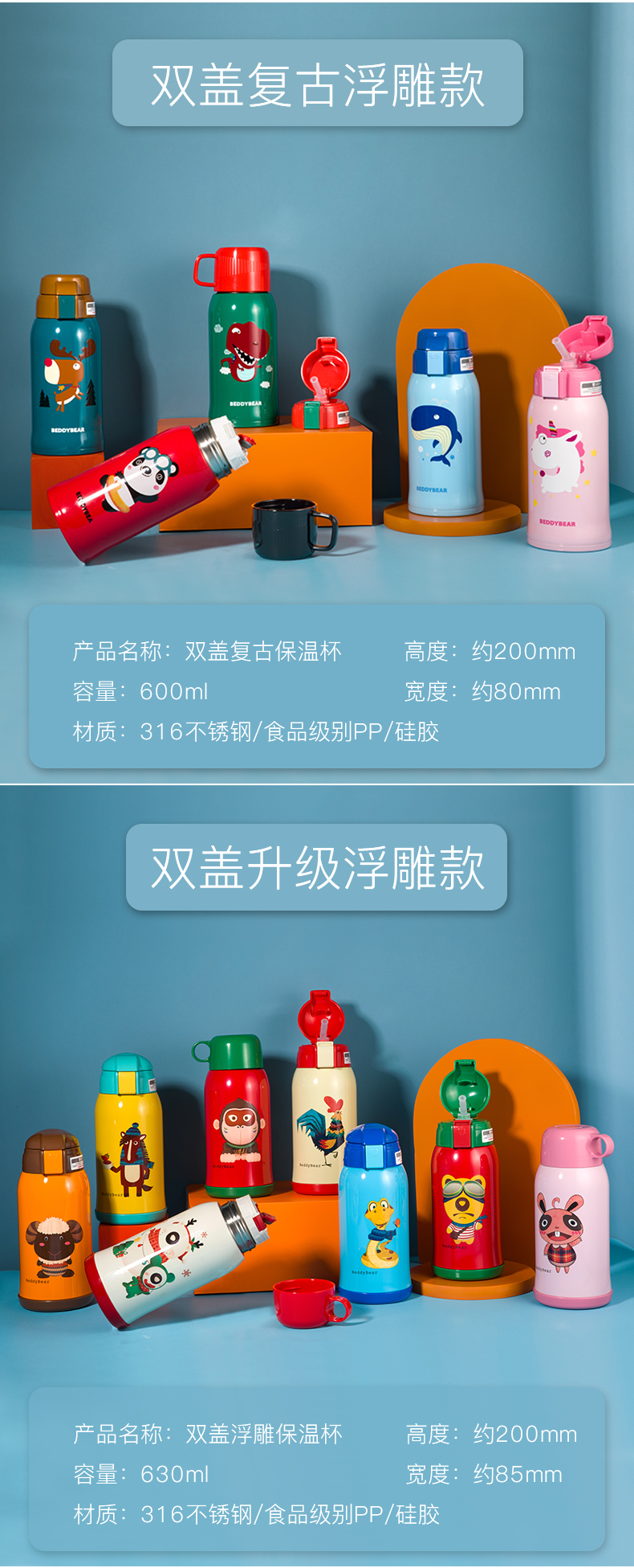 杯具熊儿童保温杯带吸管女幼儿园男宝宝小学生旗舰店官方水杯水壶