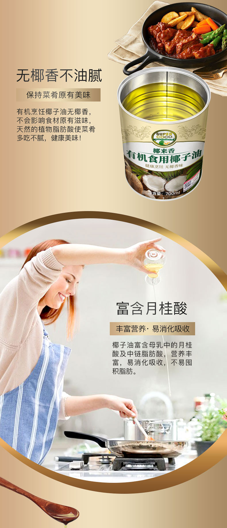 700ml有机椰子油食用油 椰来香无椰香健康烹饪耐高温生酮