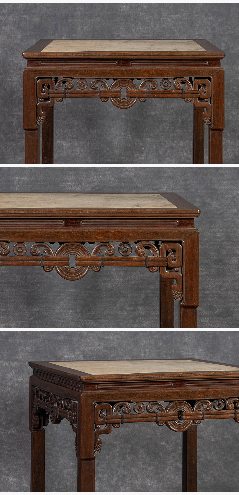 清中期 红木镶云石拱璧纹八仙桌