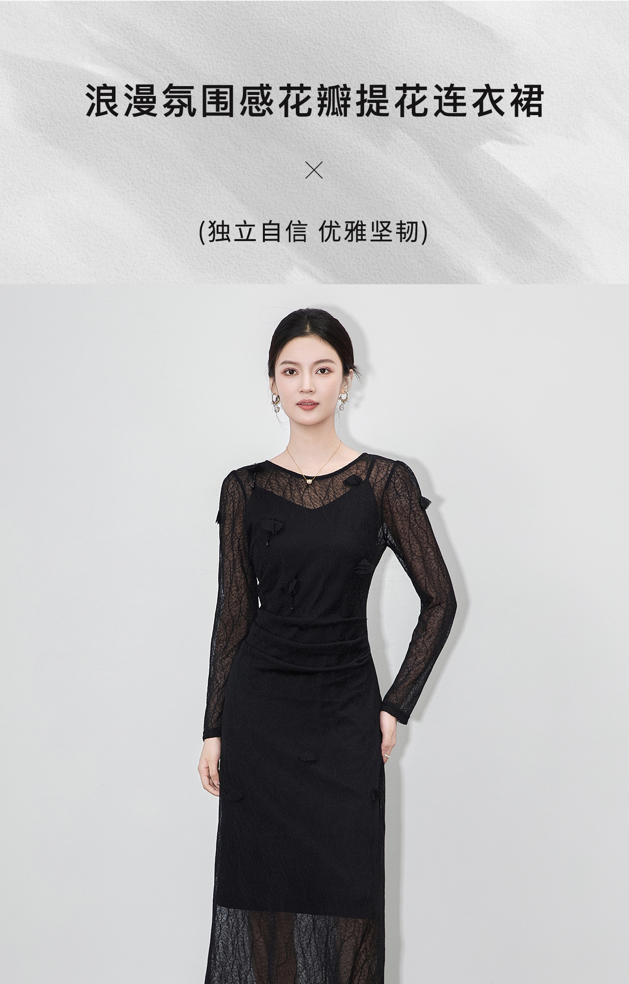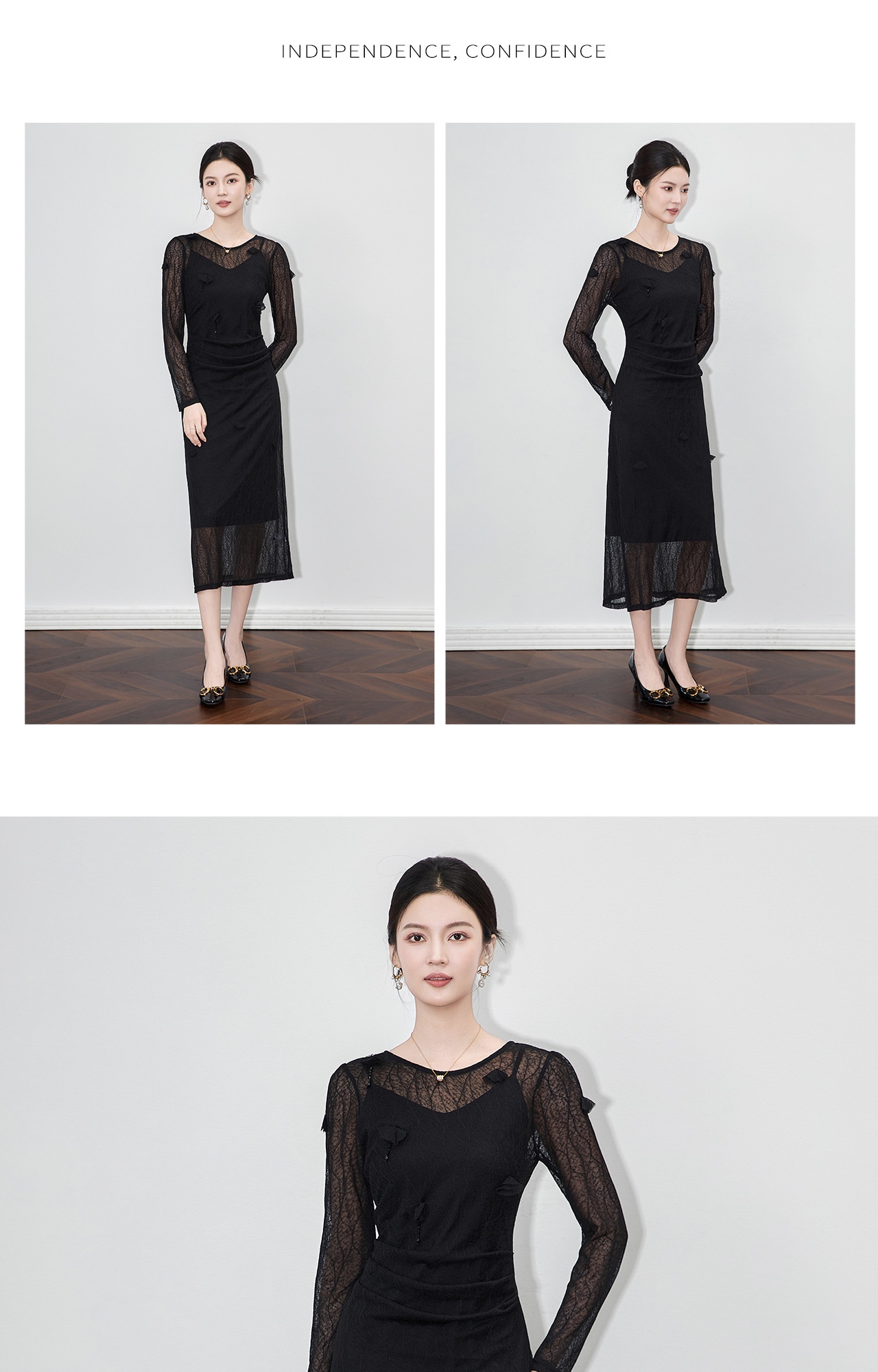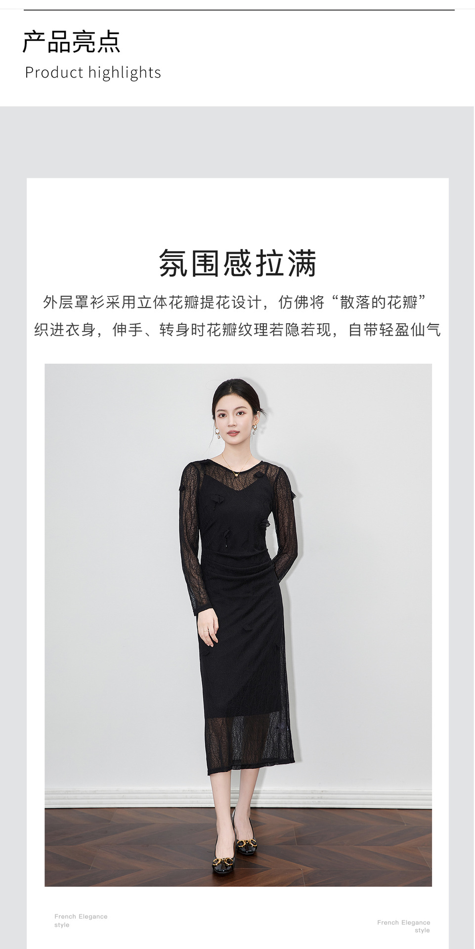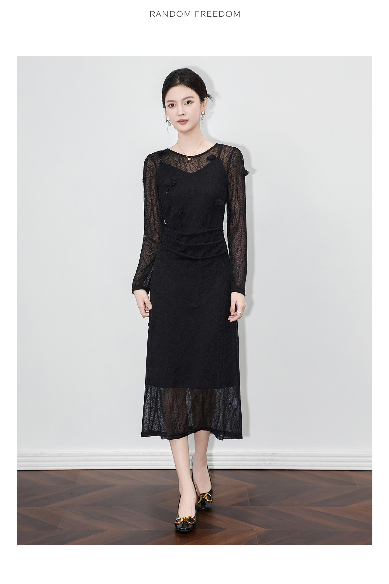 「高货wl」全新升级【铂金会员293/天猫389/差价96】(95022)洛诗琳超仙气质微透镂空连衣裙2025秋季修身显瘦蕾丝裙女
