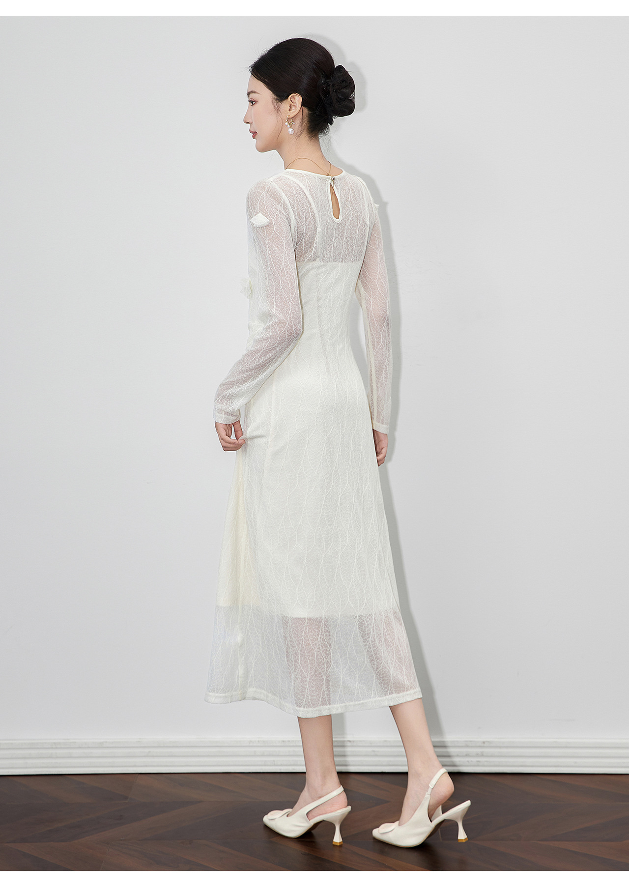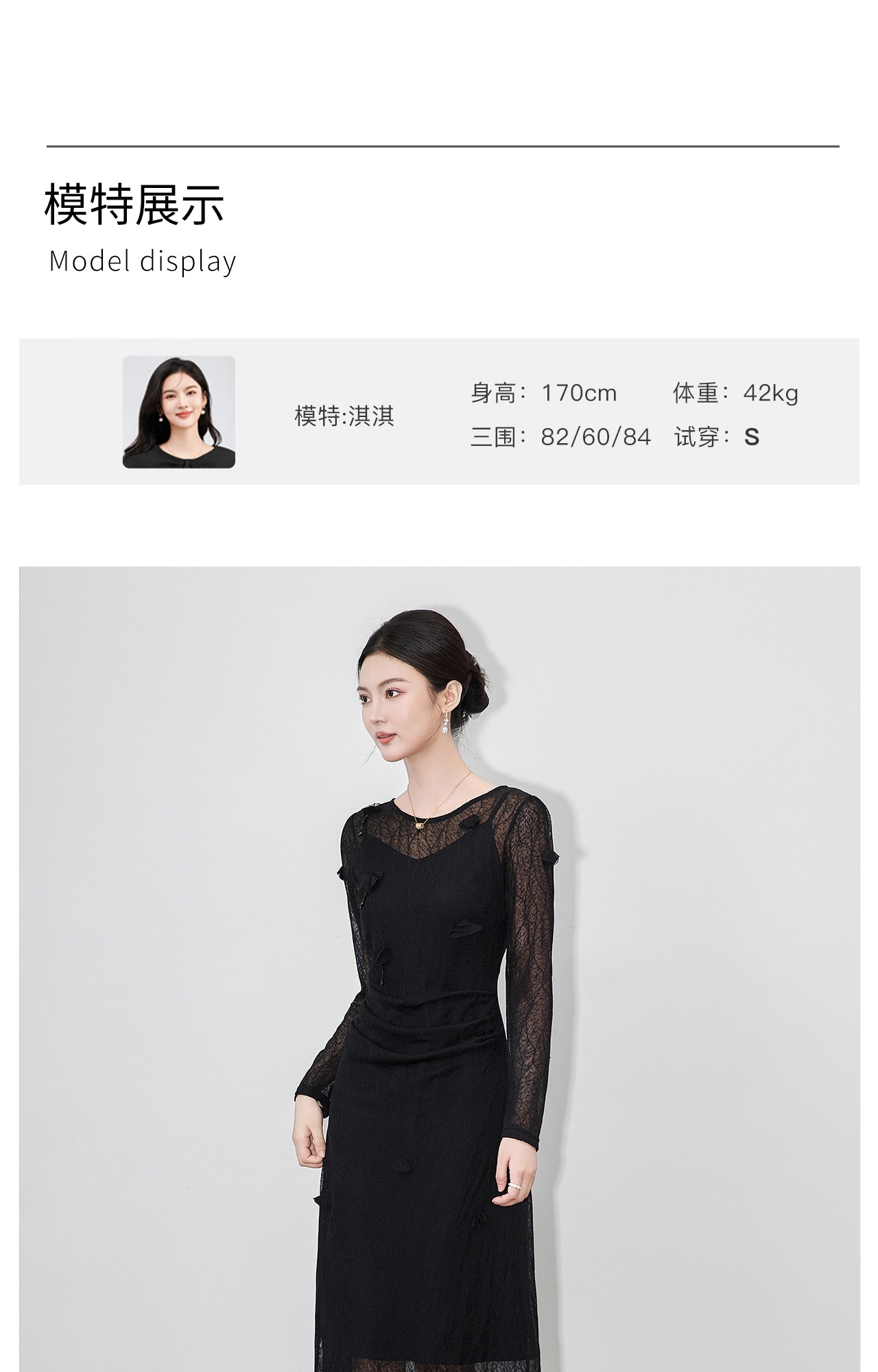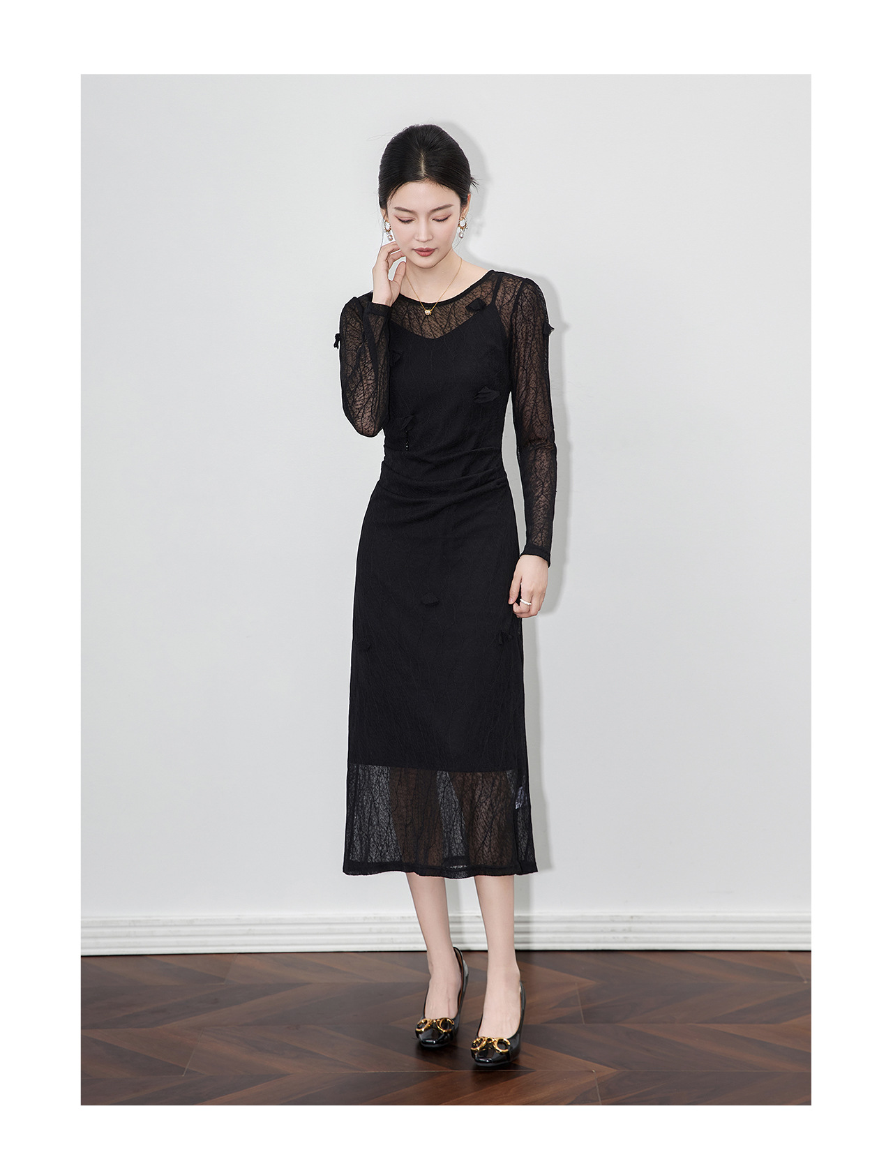 「高货wl」全新升级【铂金会员293/天猫389/差价96】(95022)洛诗琳超仙气质微透镂空连衣裙2025秋季修身显瘦蕾丝裙女