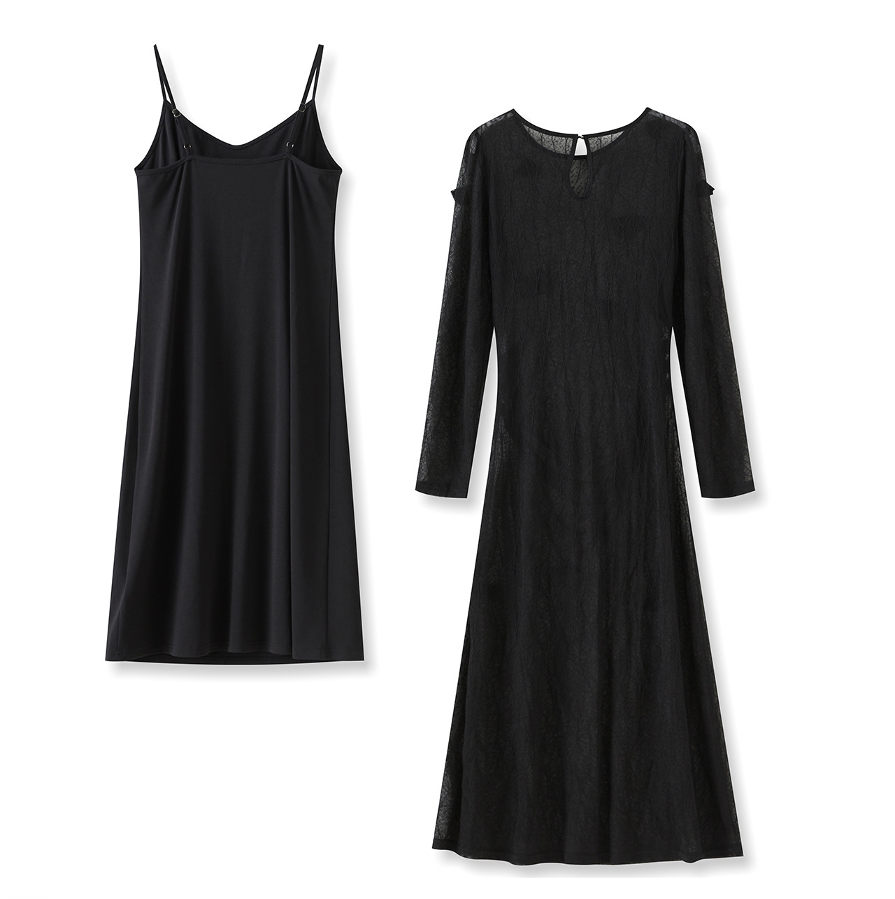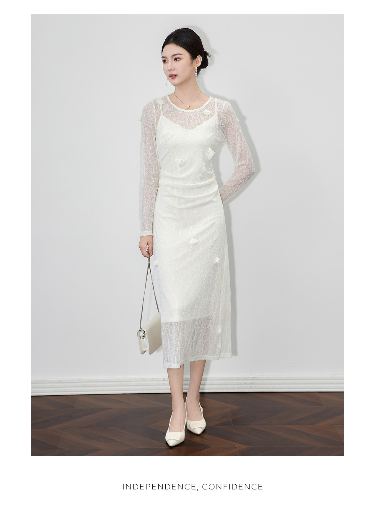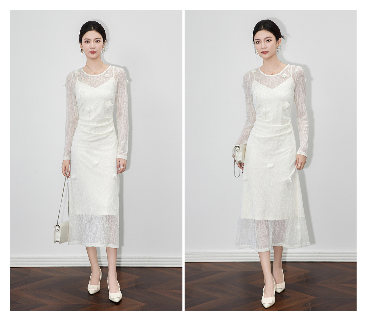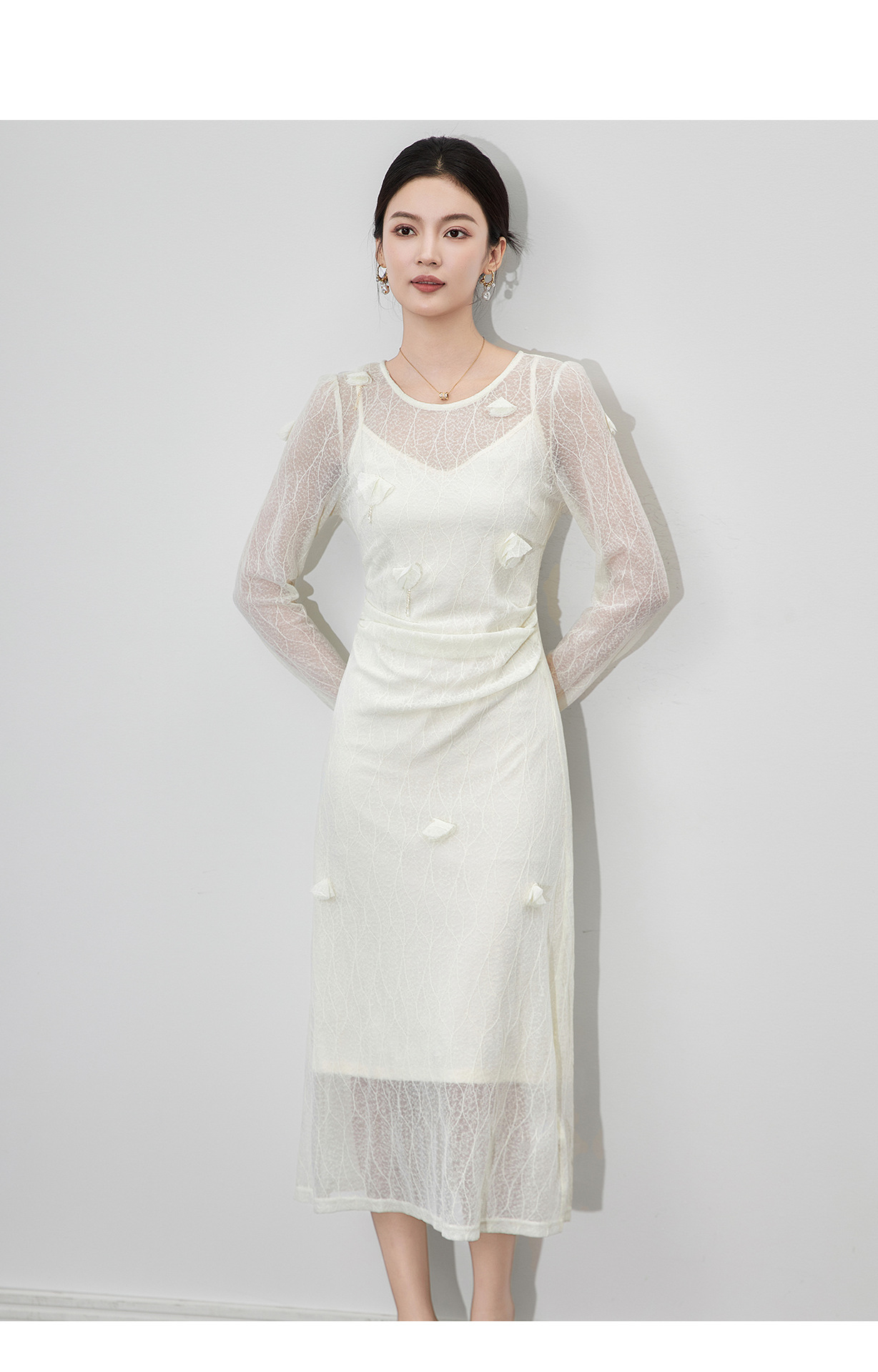 「高货wl」全新升级【铂金会员293/天猫389/差价96】(95022)洛诗琳超仙气质微透镂空连衣裙2025秋季修身显瘦蕾丝裙女