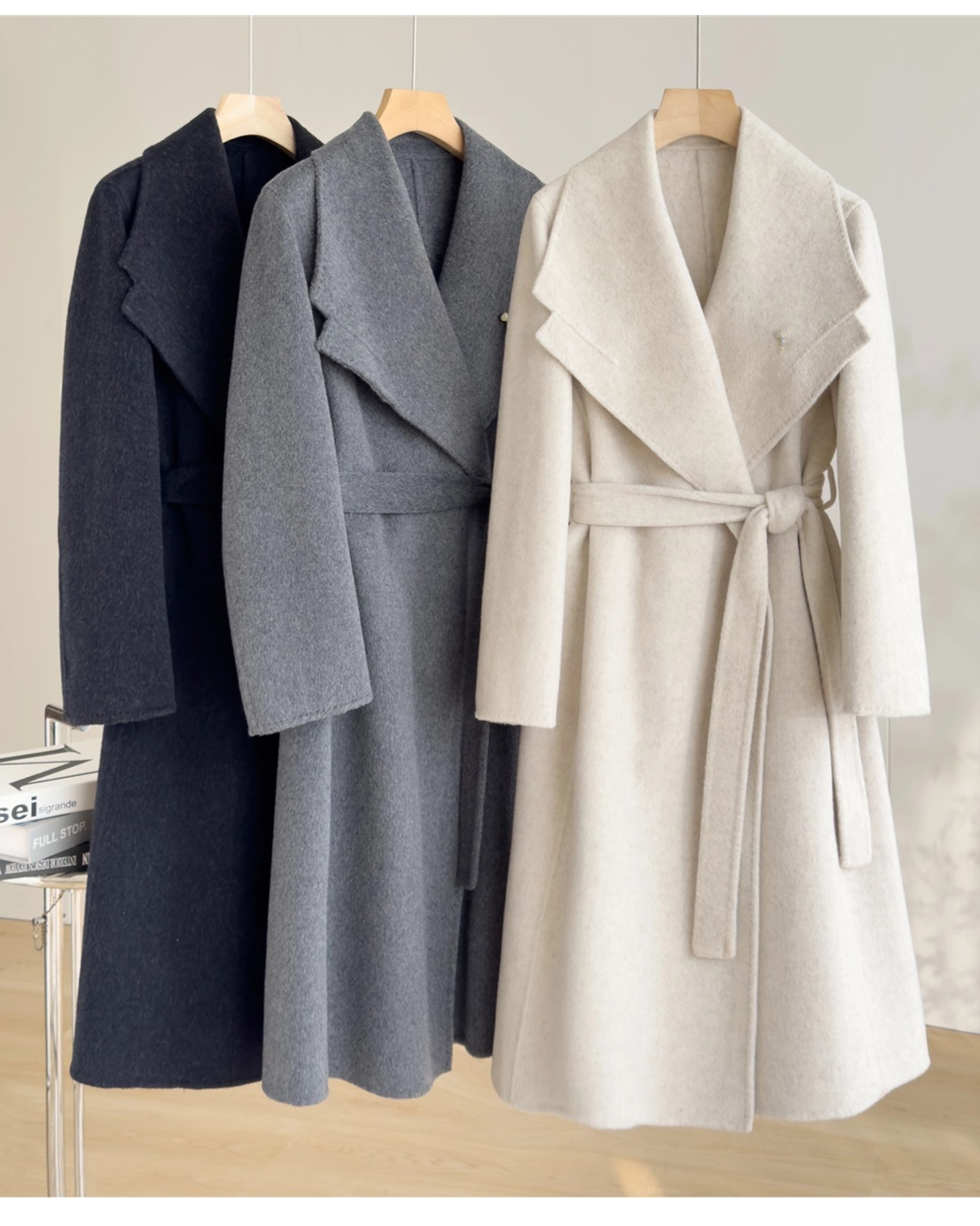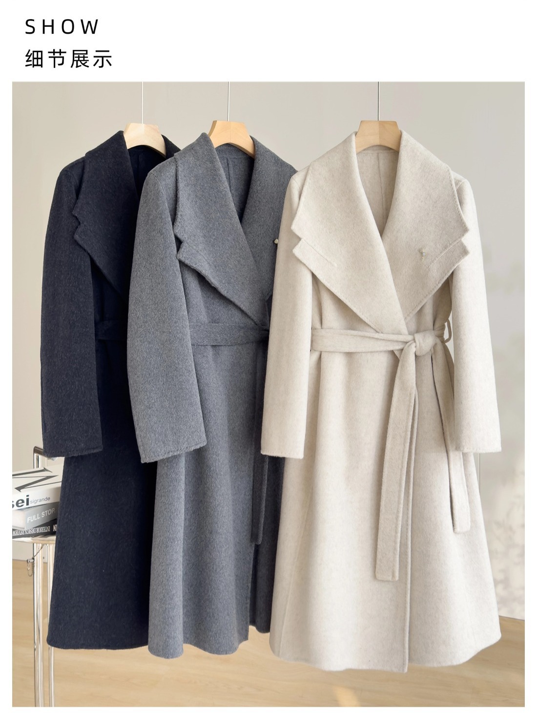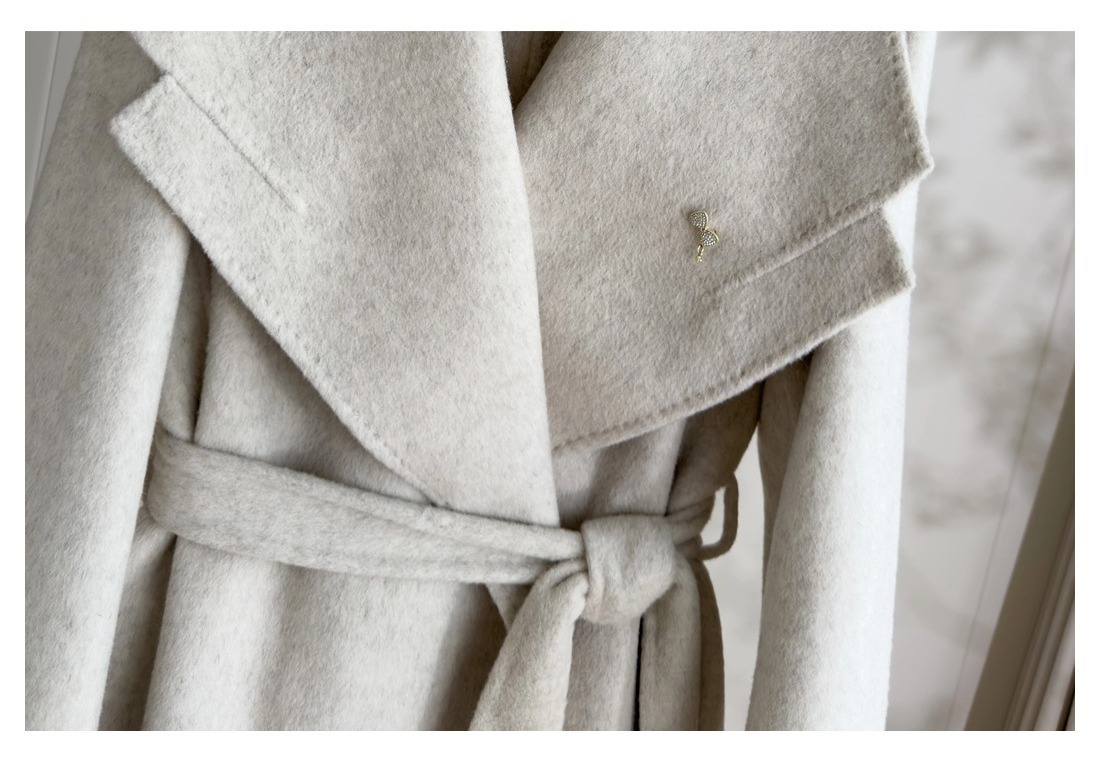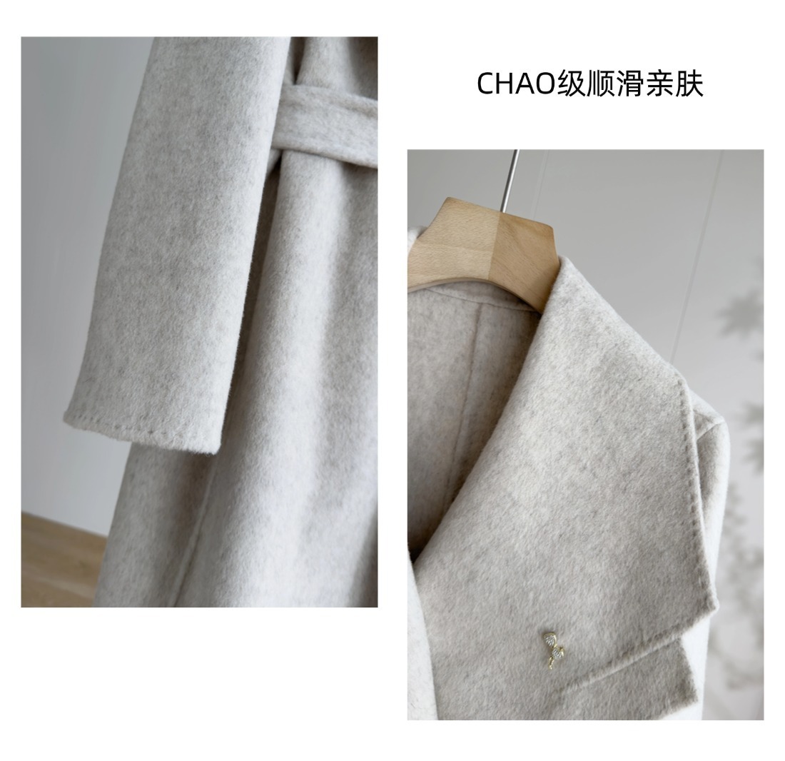 「自」全新升级【铂金会员661/天猫889/差价228】(02356)洛诗琳高级感大翻领系带羊驼毛大衣2025秋冬双面羊毛外套