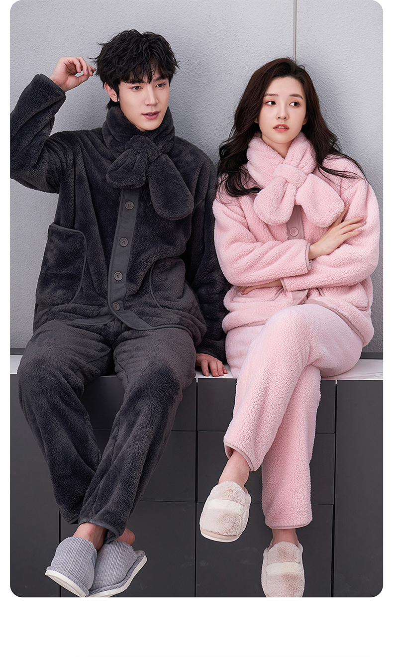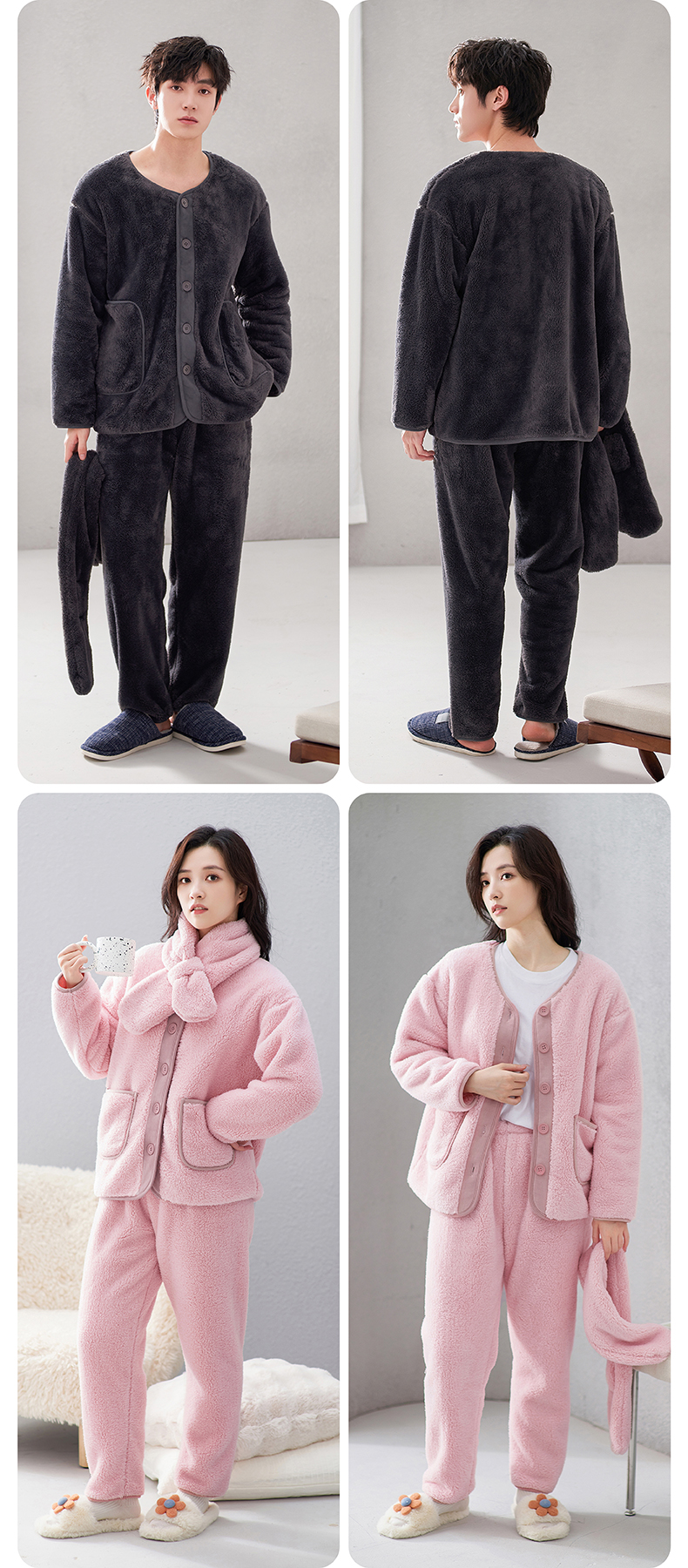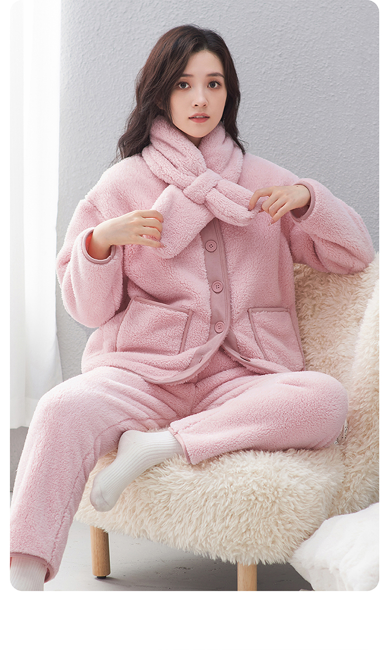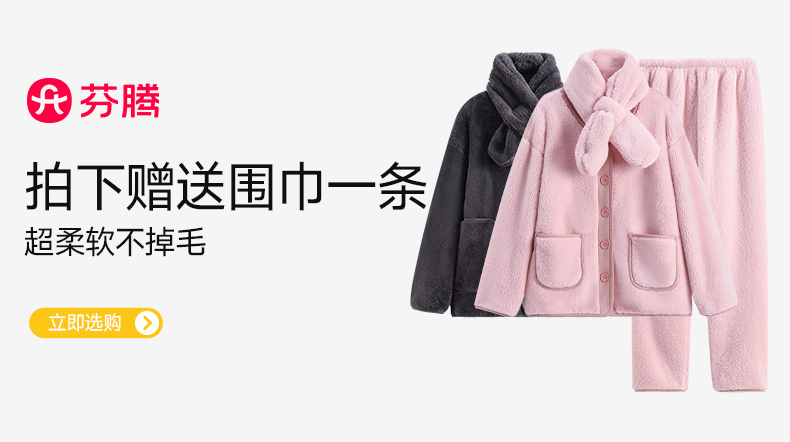 芬腾【送围巾】珊瑚绒睡衣女秋冬季加绒加厚保暖可外穿家居服套装