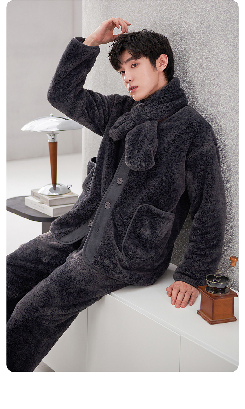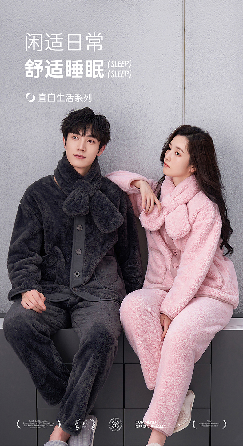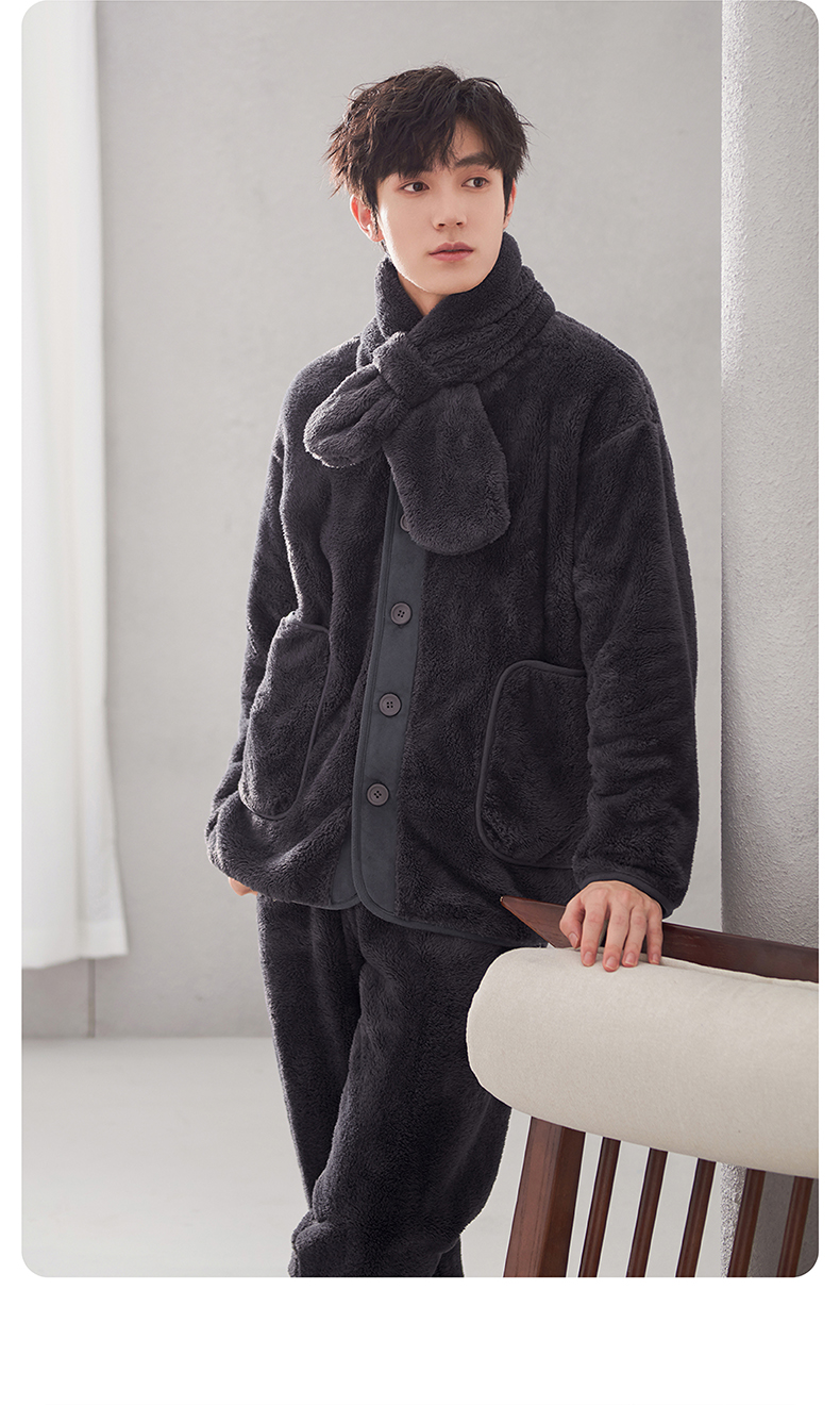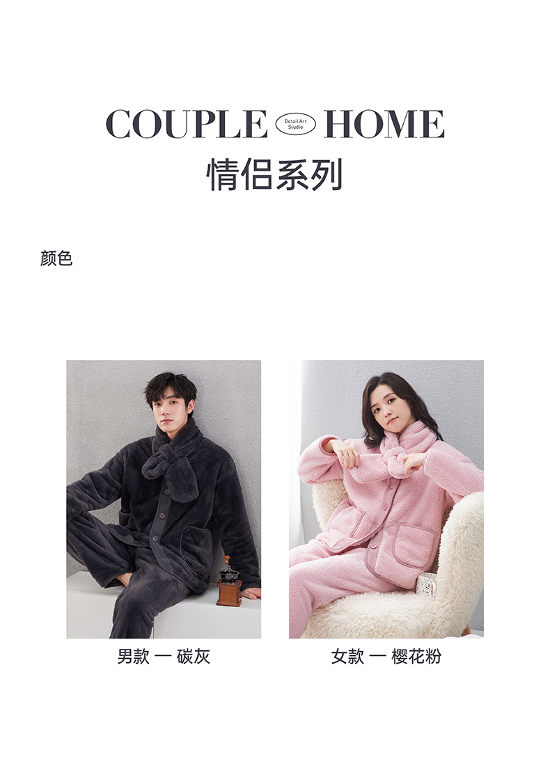 芬腾【送围巾】珊瑚绒睡衣女秋冬季加绒加厚保暖可外穿家居服套装