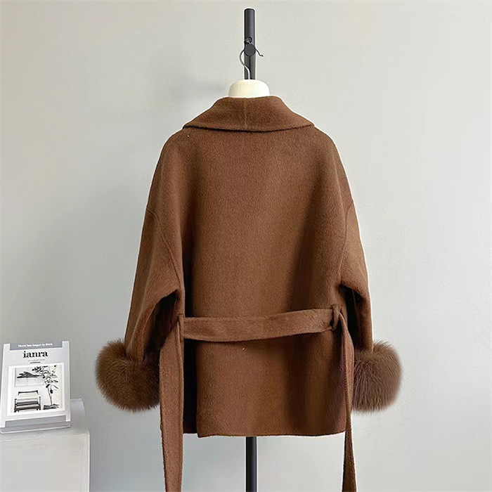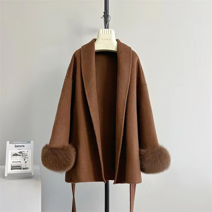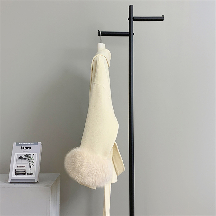 ASE秋冬季新款双面羊毛大衣女狐狸毛皮草高级感浴袍皮草外套女