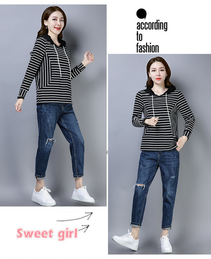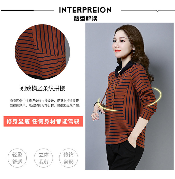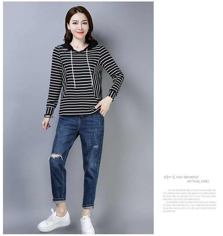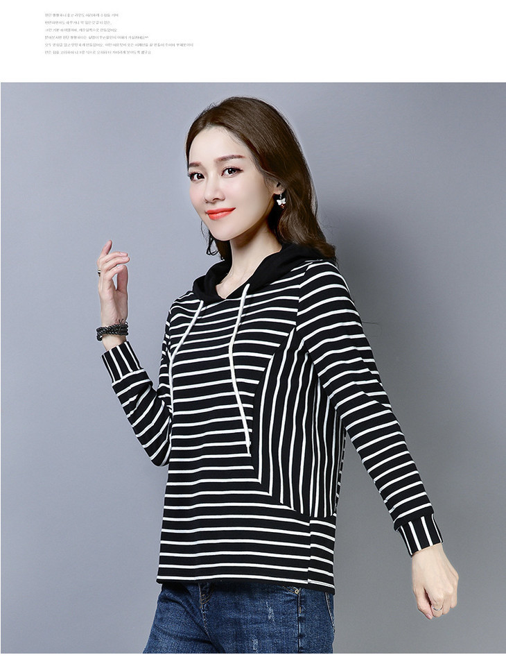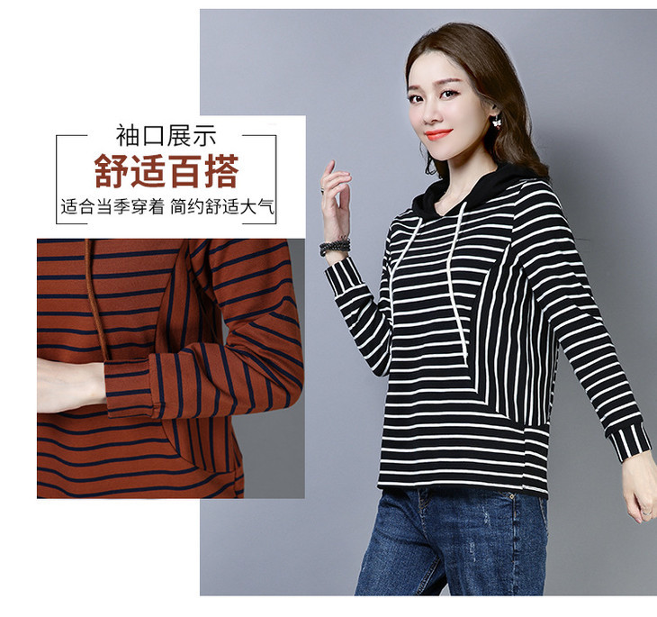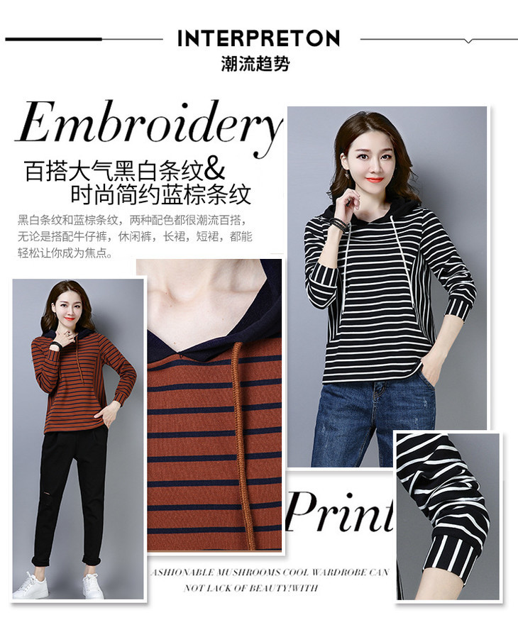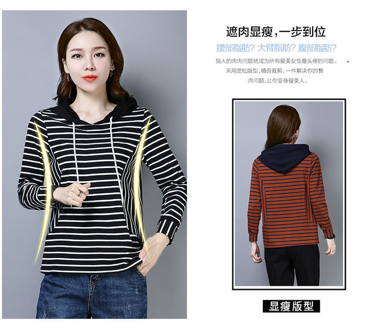 GYH 976宽松韩版春秋季大码薄款条纹连帽卫衣
