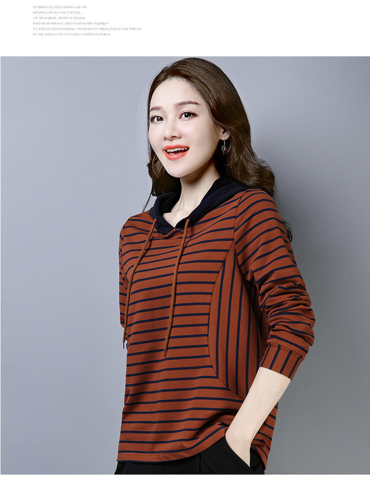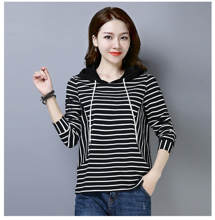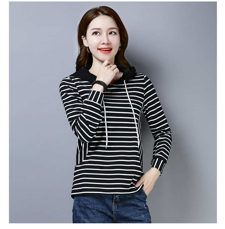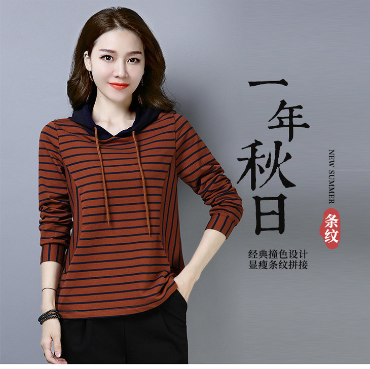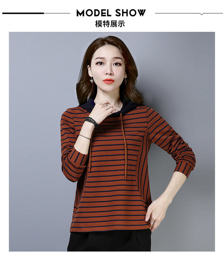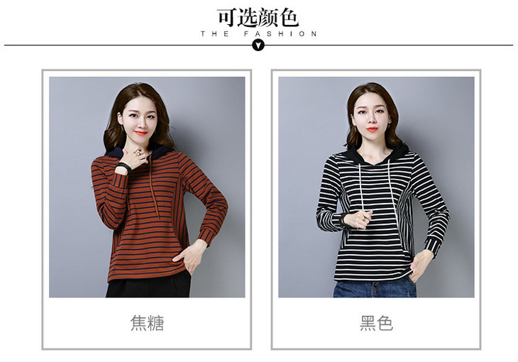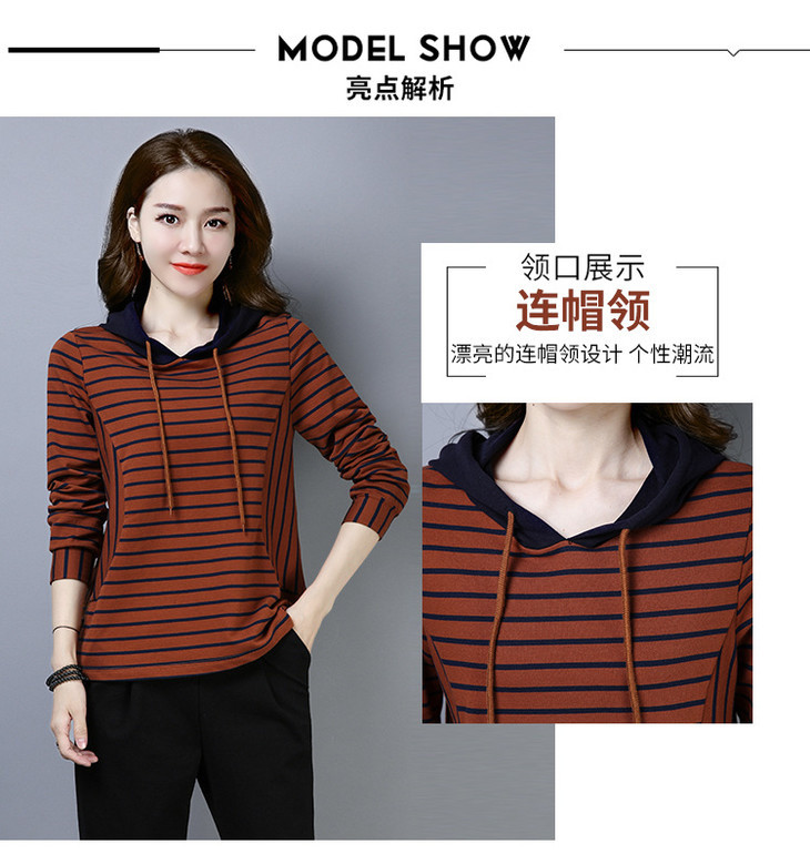 GYH 976宽松韩版春秋季大码薄款条纹连帽卫衣