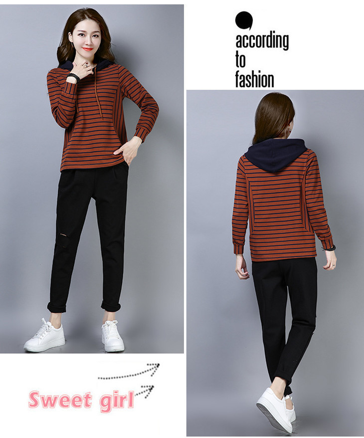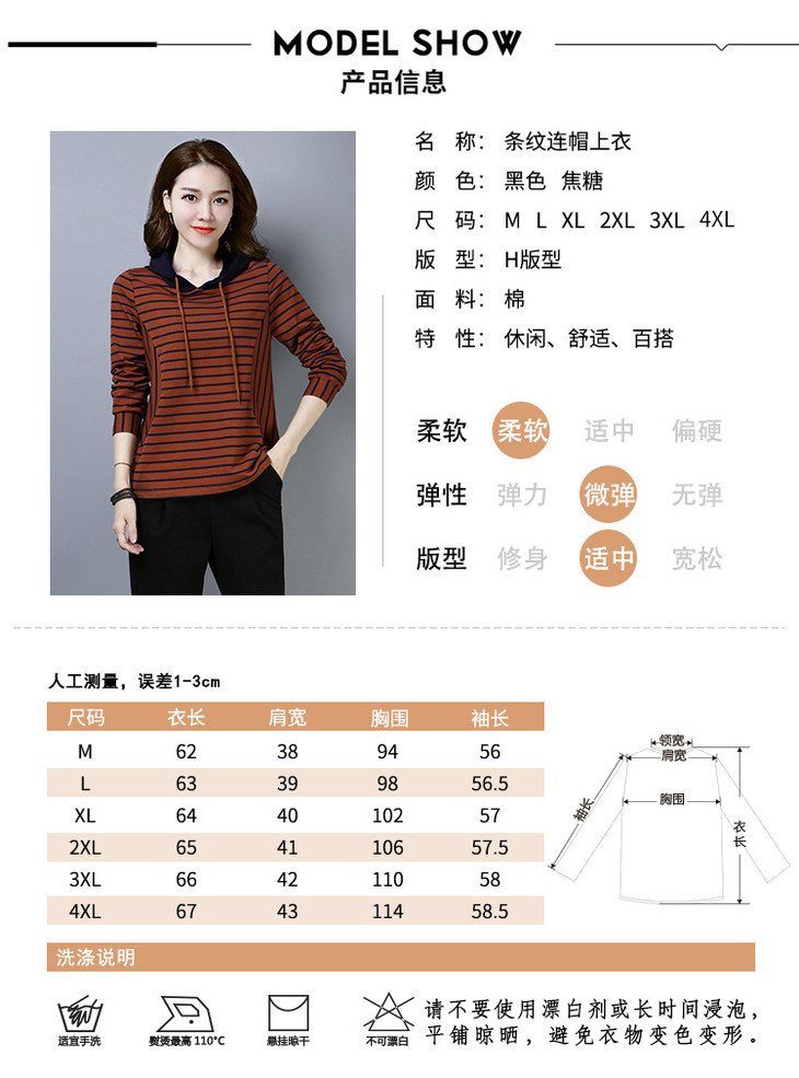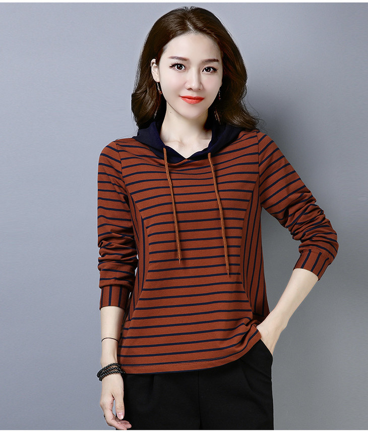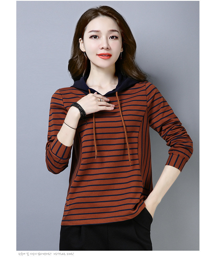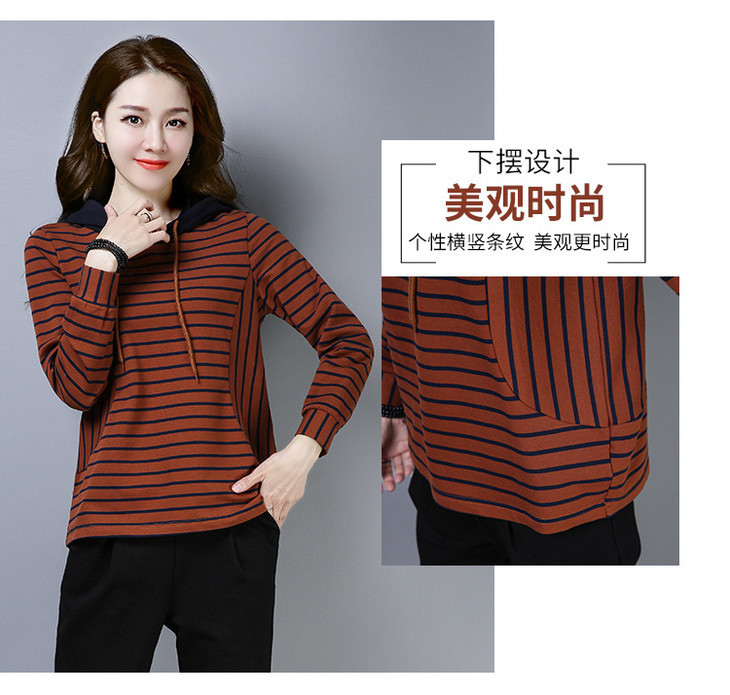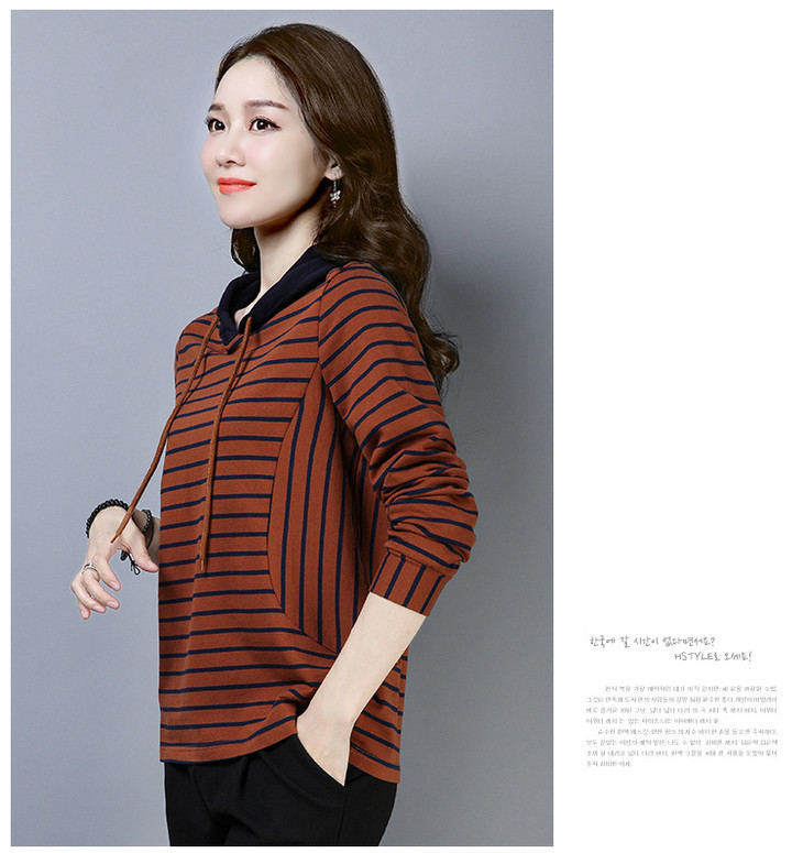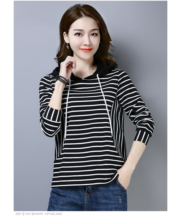 GYH 976宽松韩版春秋季大码薄款条纹连帽卫衣