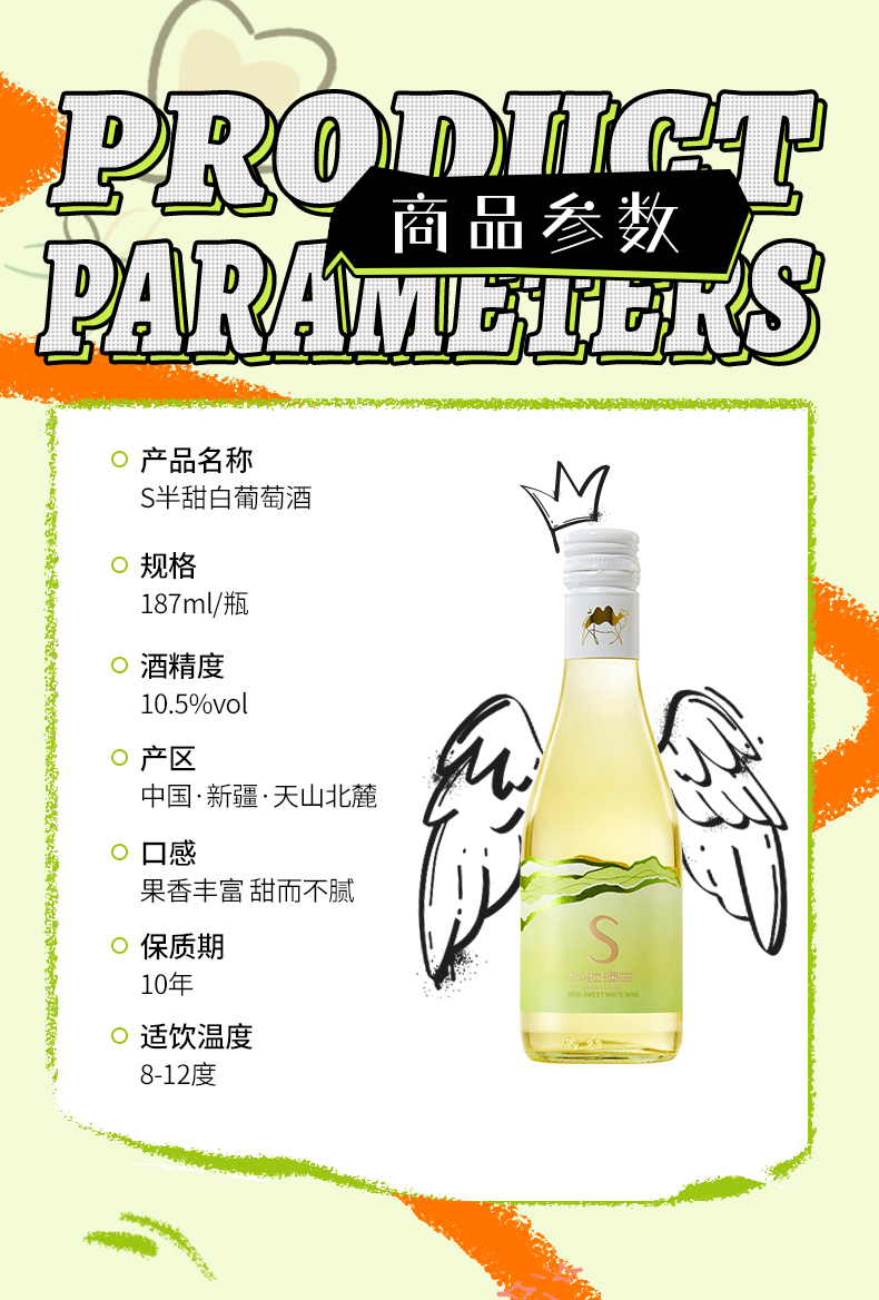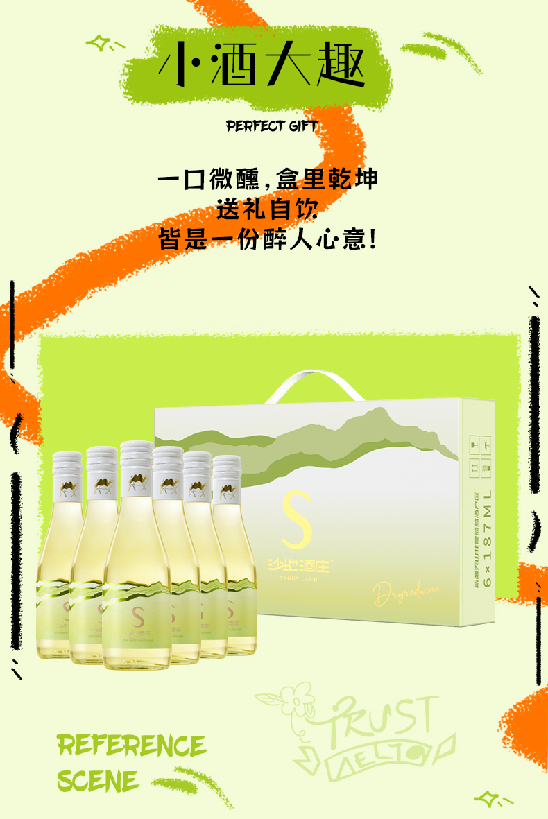 沙地酒庄·s半甜白葡萄酒 187ml*6 绿色小瓶身 荔枝蜜桃冰口感 清新爆棚