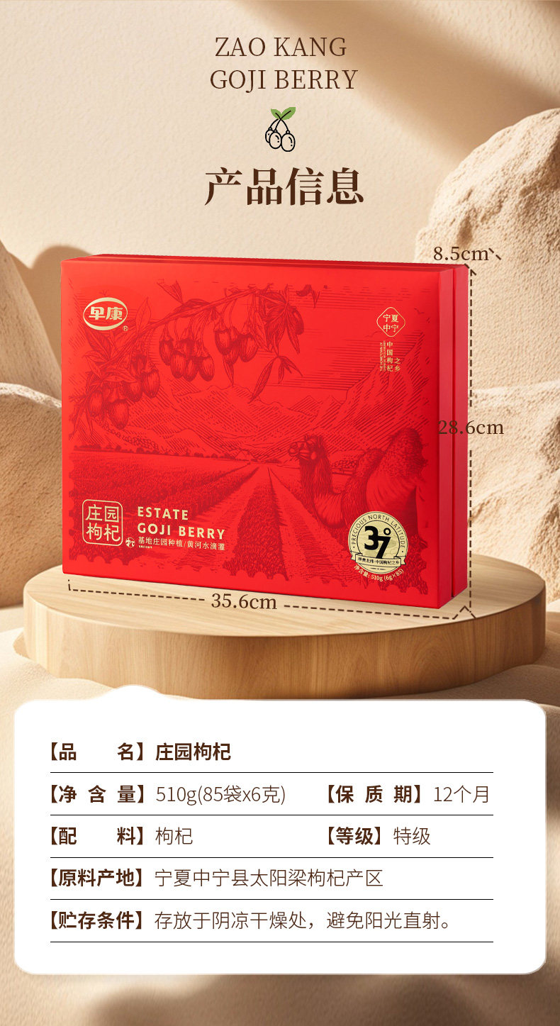 【益品良食】早康庄园甄选特级中宁枸杞宁夏特产红枸杞礼盒装510g