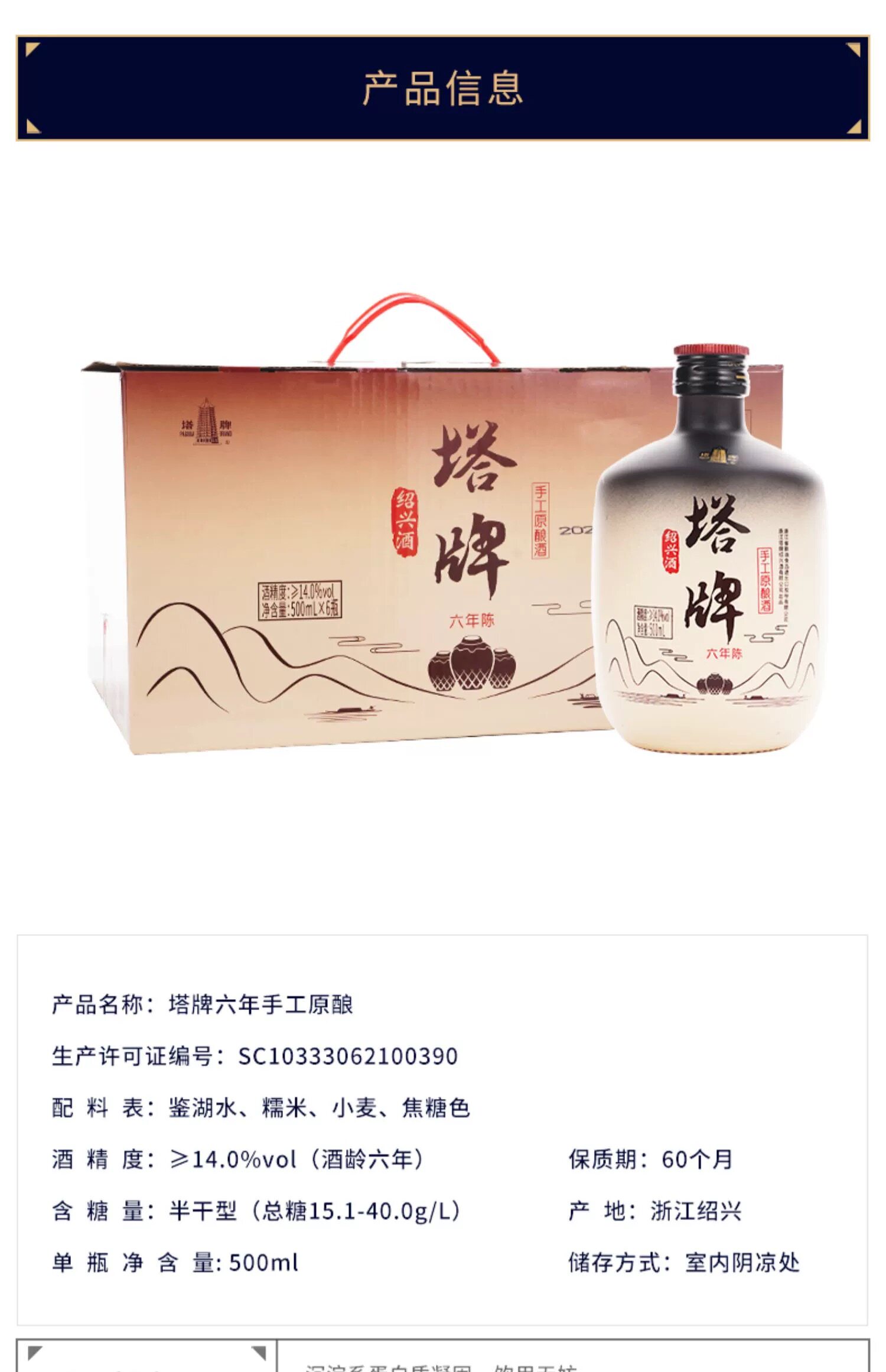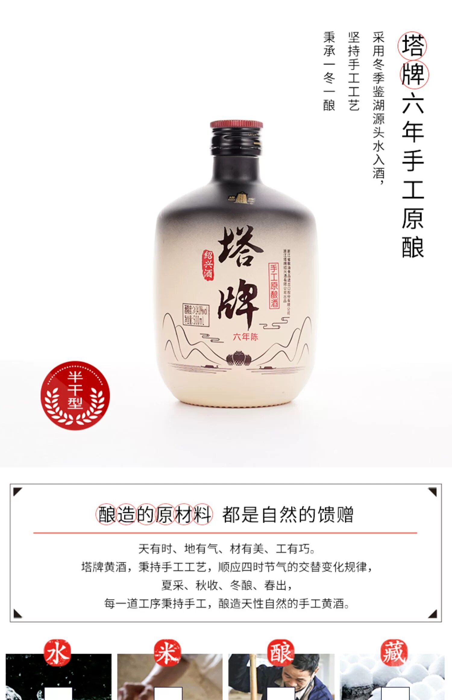 [黄酒]塔牌黄酒六年陈手工原酿酒500ml