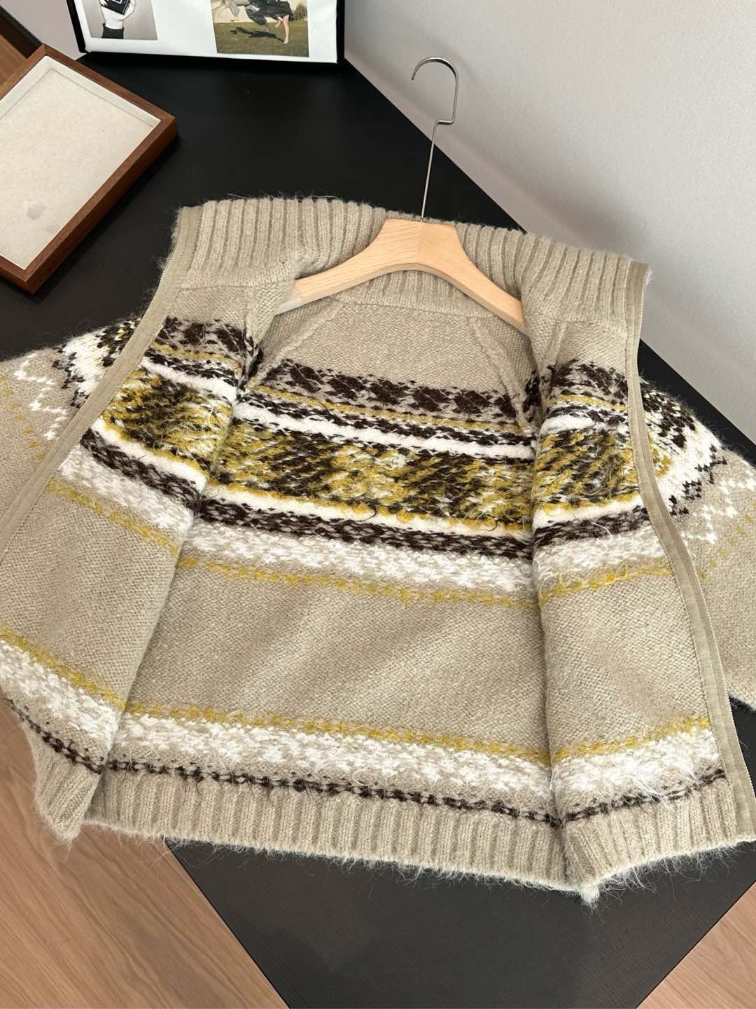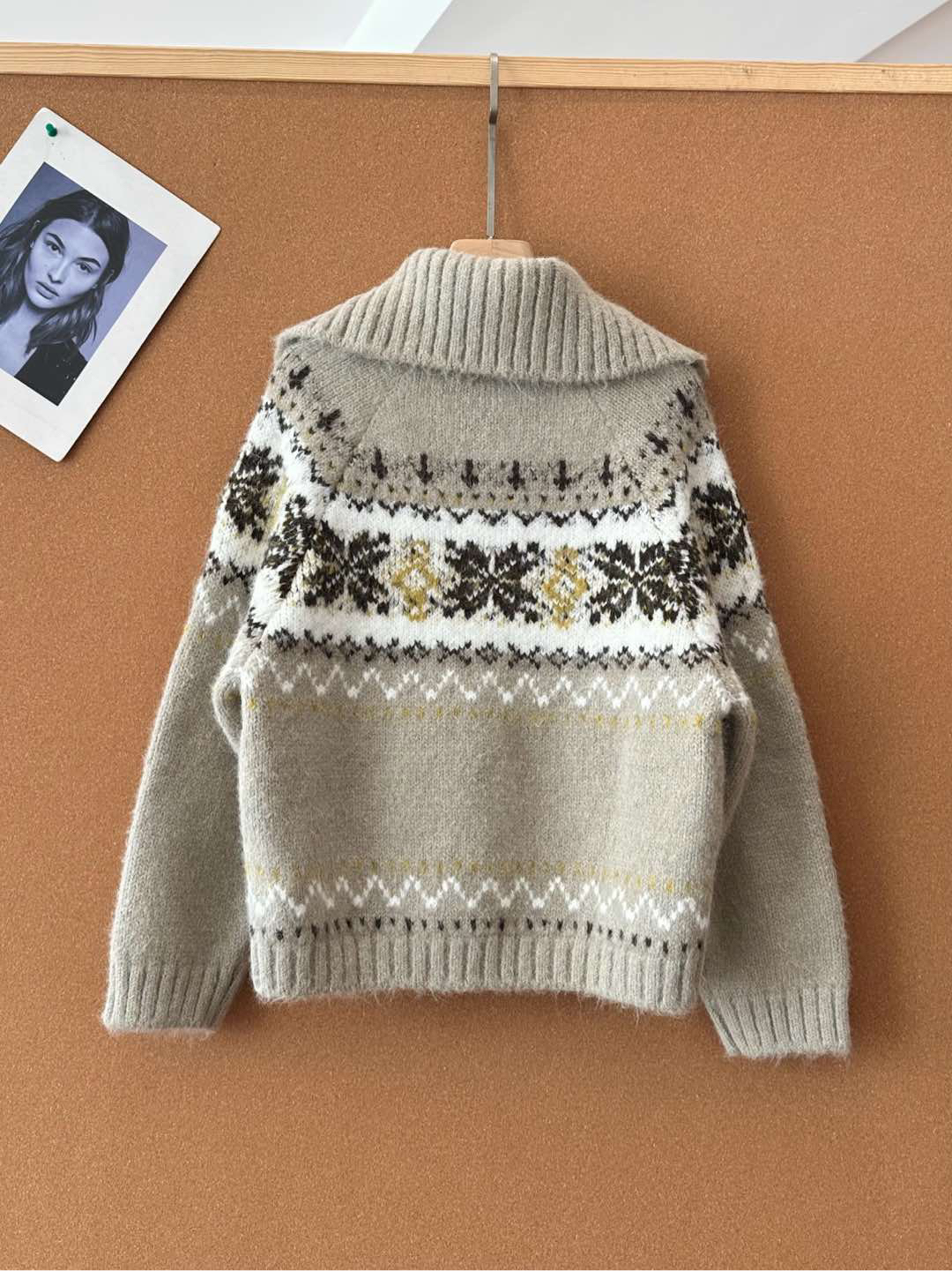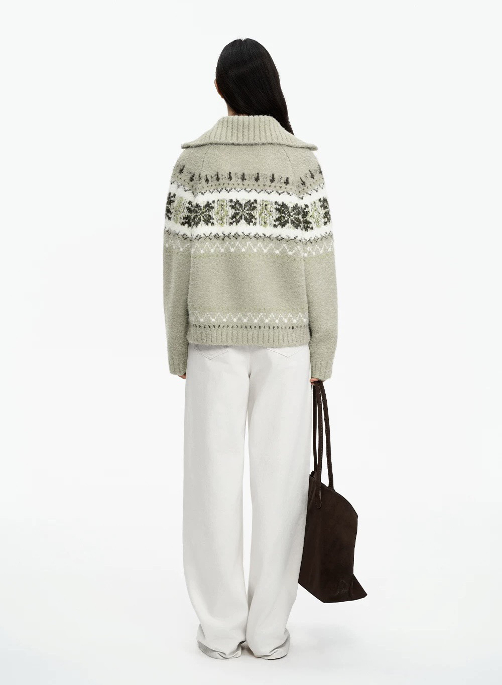 🔺原版Selfwho费尔岛绵羊毛混纺翻领针织毛衣开衫