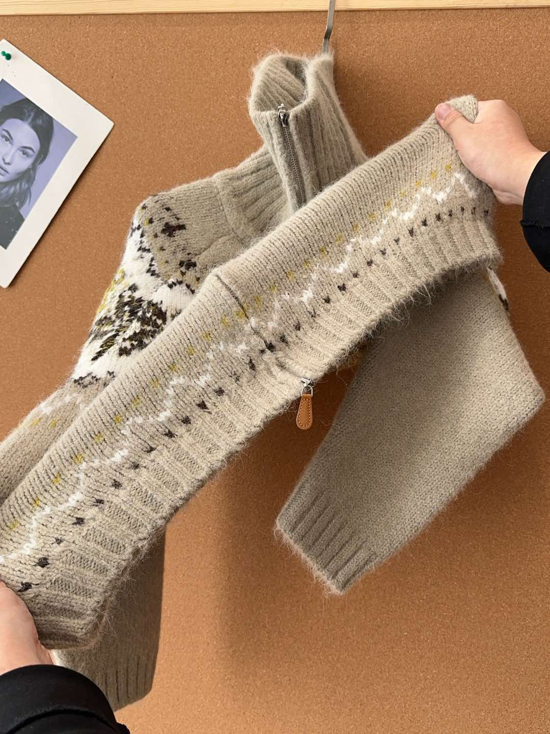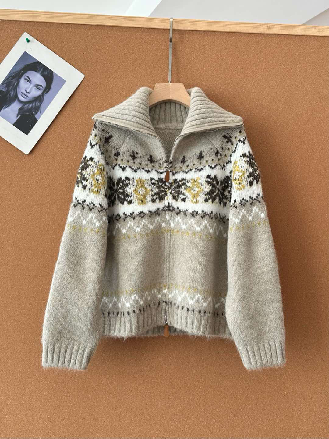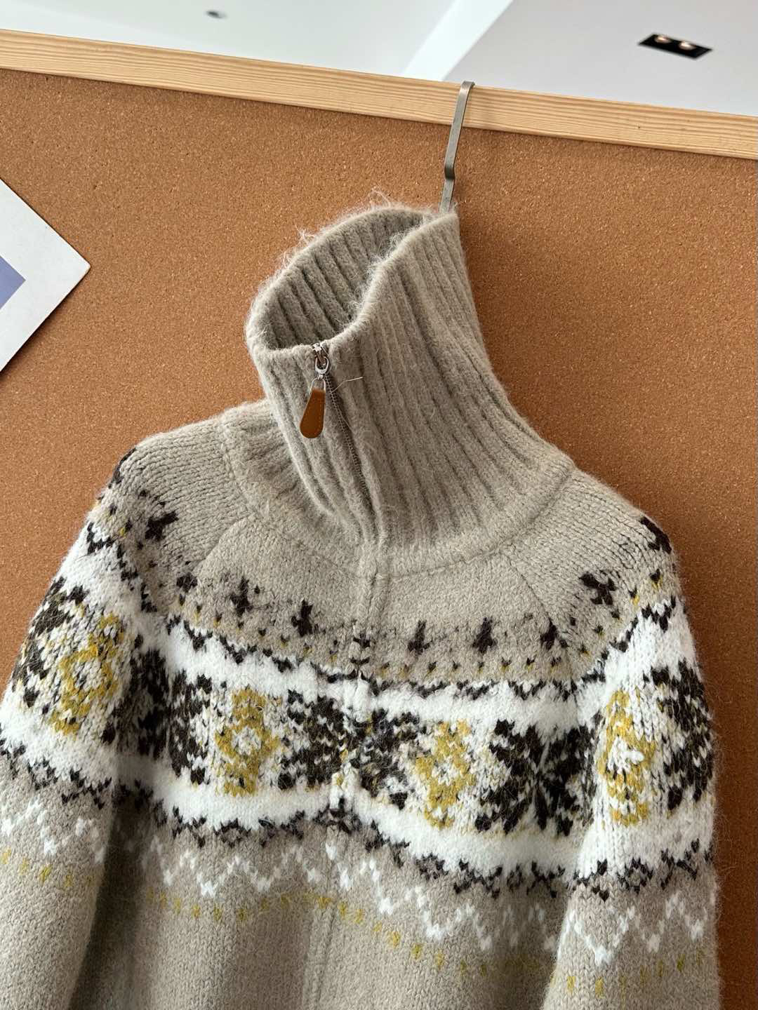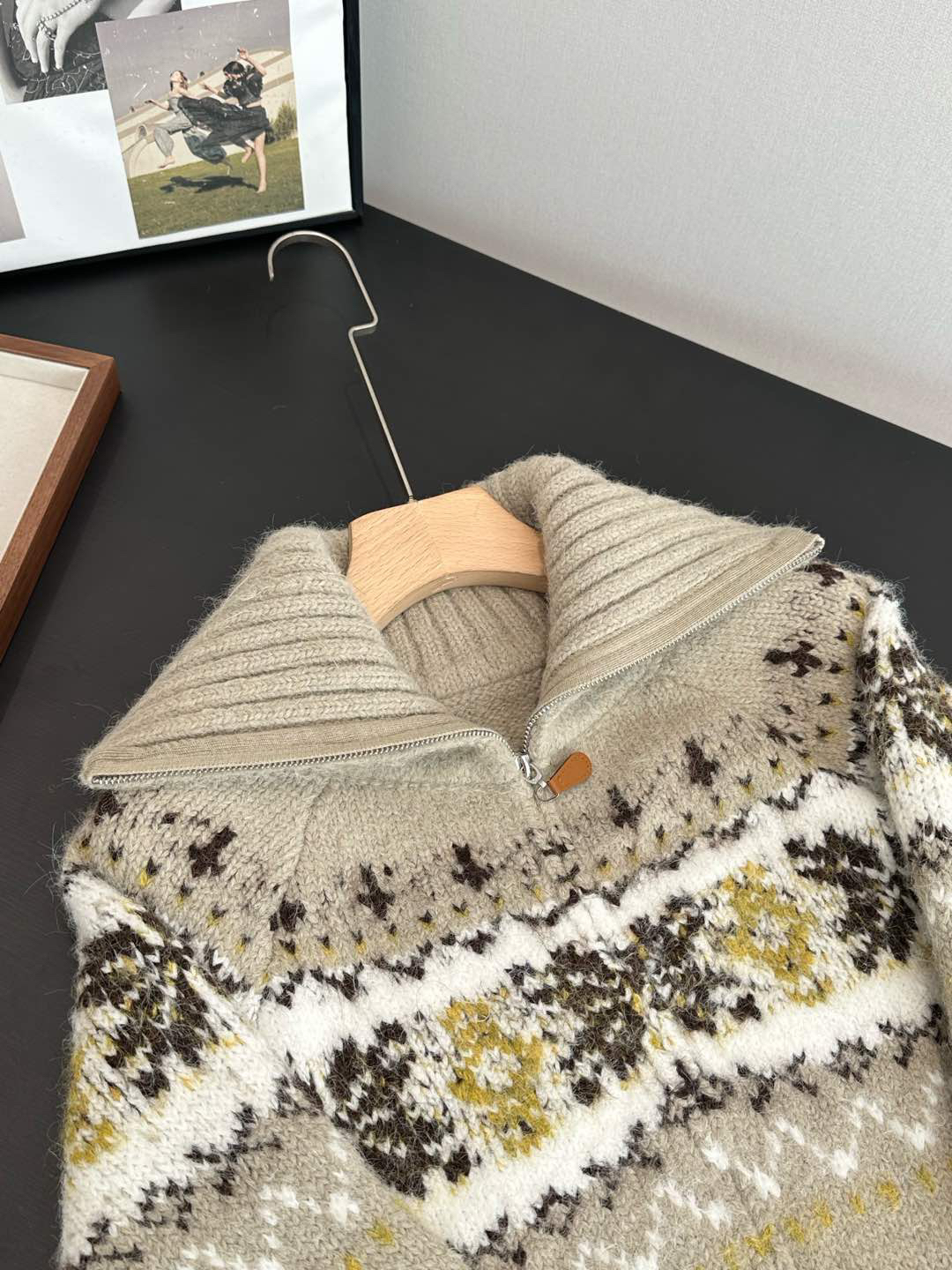 🔺原版Selfwho费尔岛绵羊毛混纺翻领针织毛衣开衫