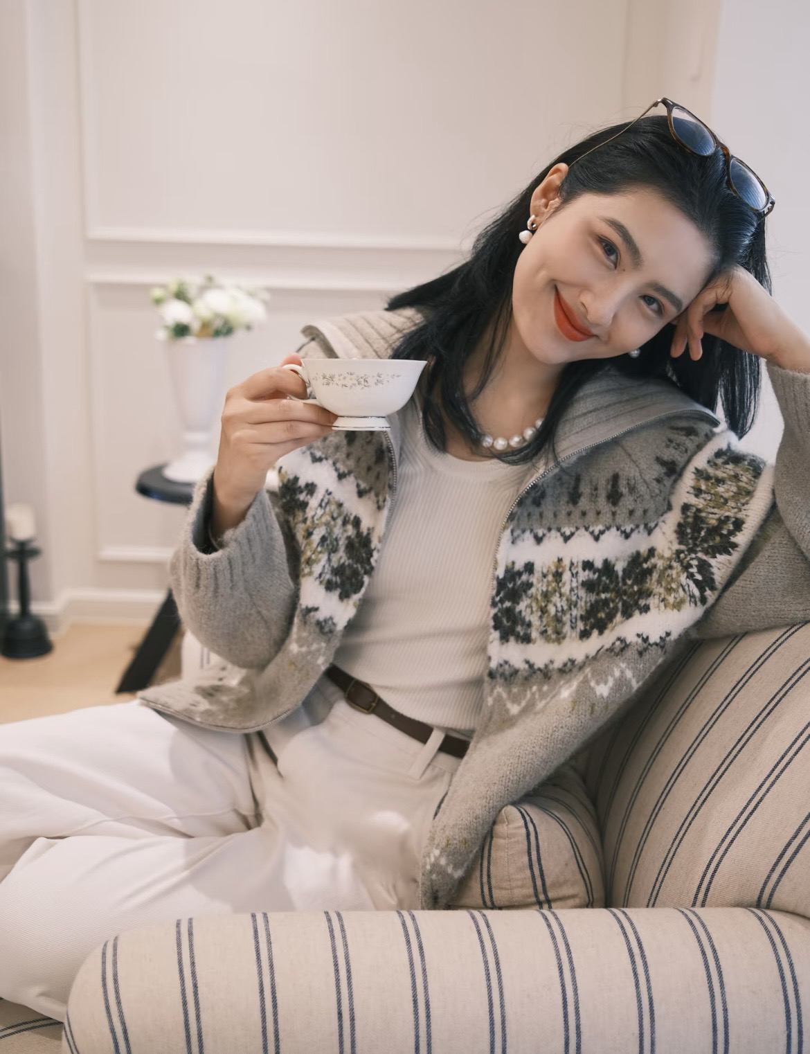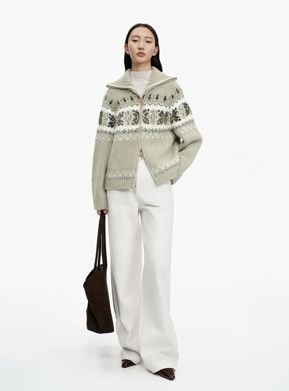 官旗售价998软币💰全网热销🔥别致温柔的豆绿色是今年冬日很不一样的存在,仿佛给凋零的冬日注入了生机,让人一眼好心情!这件亮点在于其精致的费尔岛提花图案,品牌从苏格兰传统针织技艺中汲取灵感,运用多元撞色纱线,将经典图案编织得色彩过渡自然,饱满且富有层次感。复古的韵味中,不失现代的时髦感,是人群中一眼就能被锁定的吸睛单品。姜妍同款‼️而且这也是她经常穿的品牌哦
