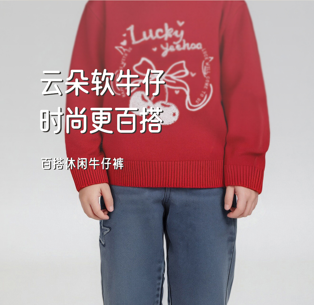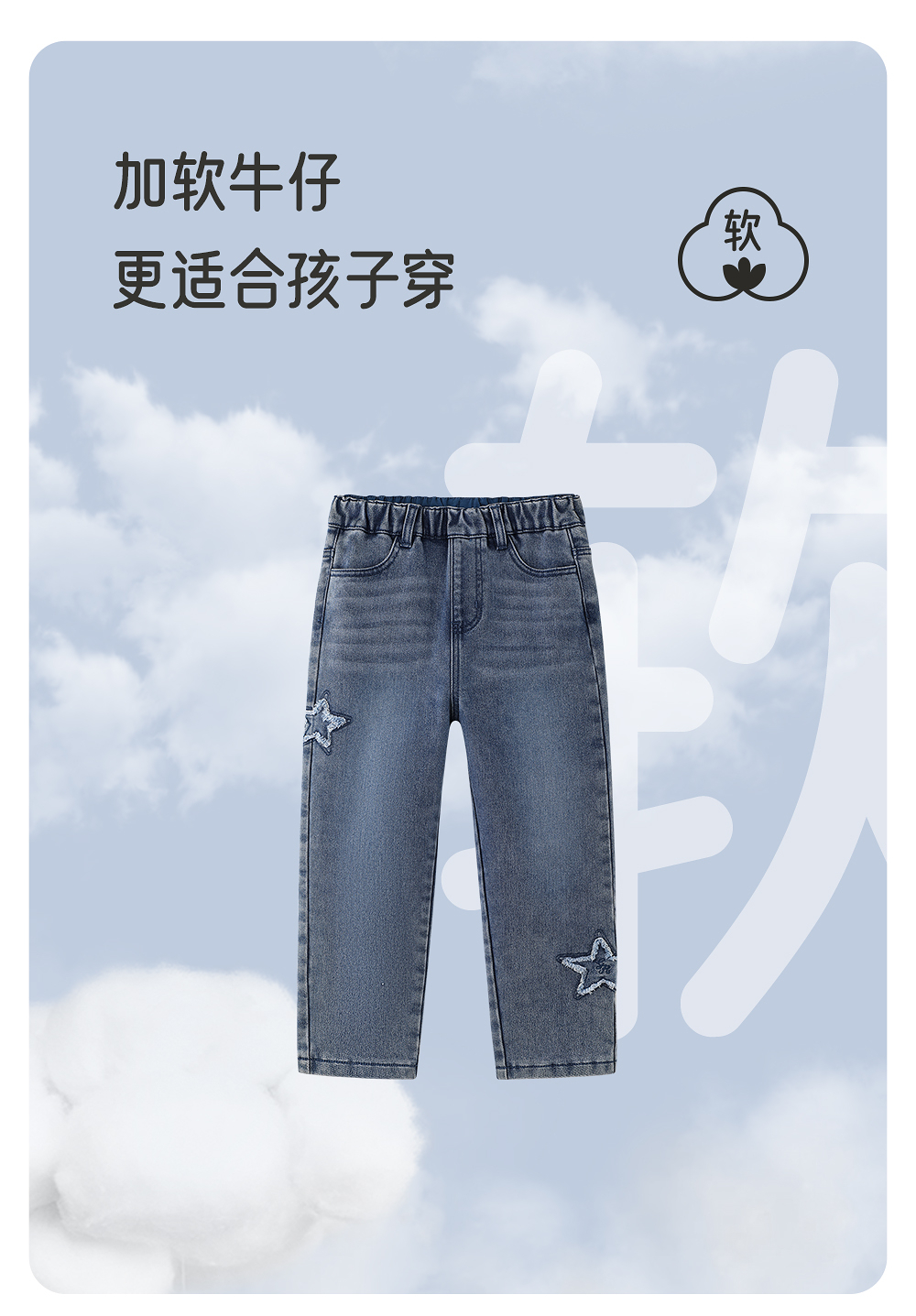 【商场同款】英氏儿童裤子女孩牛仔秋冬新款星星时尚长裤新款