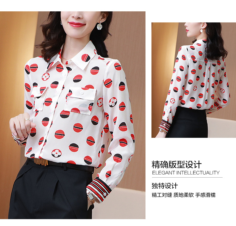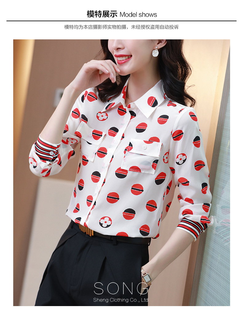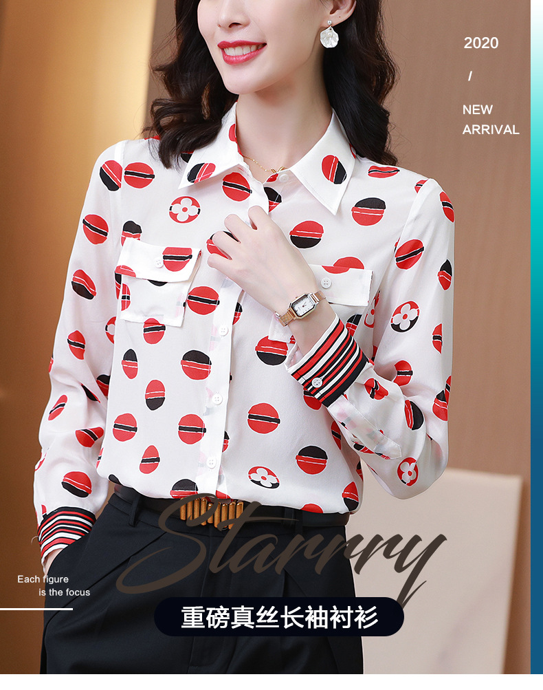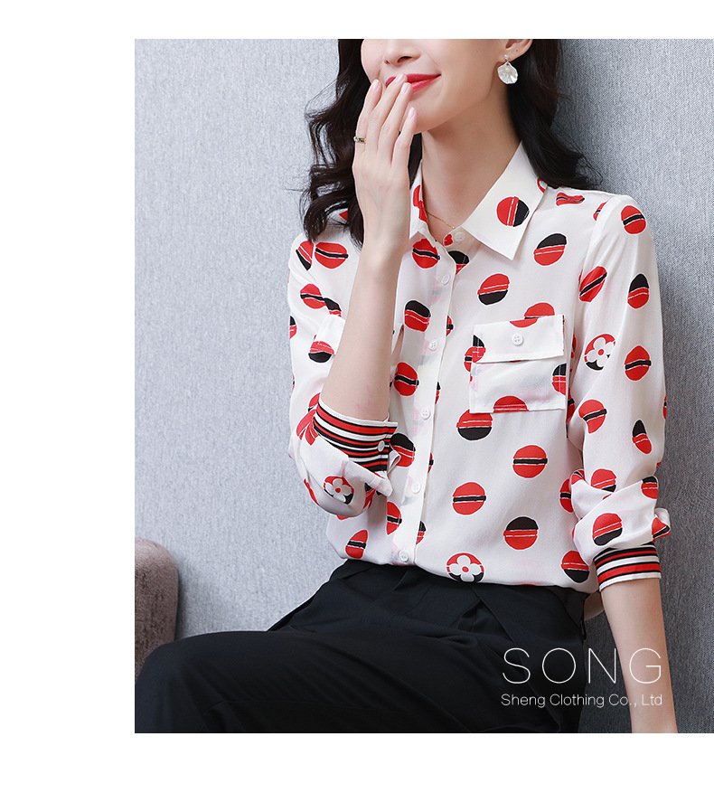 SS-09-20683卡通印花双口袋撞色时尚桑蚕丝上衣真丝衬衫