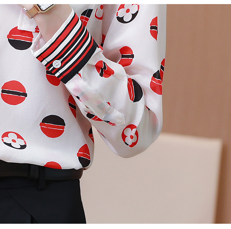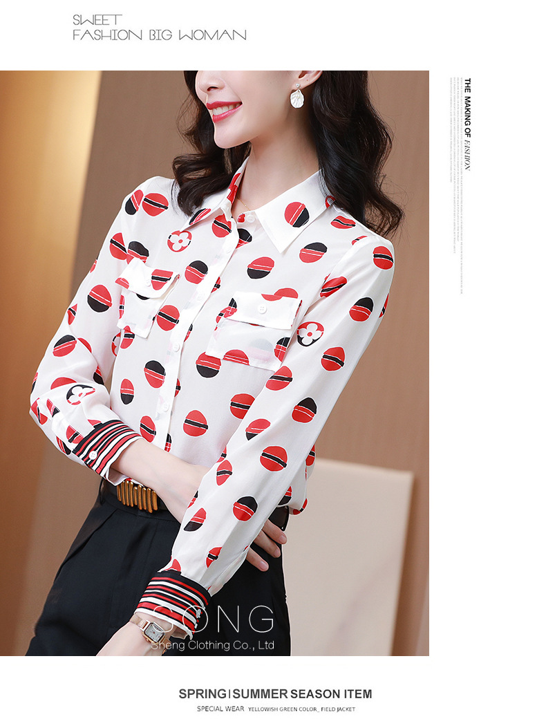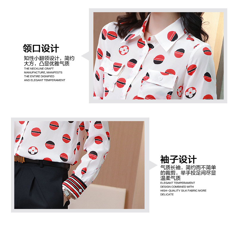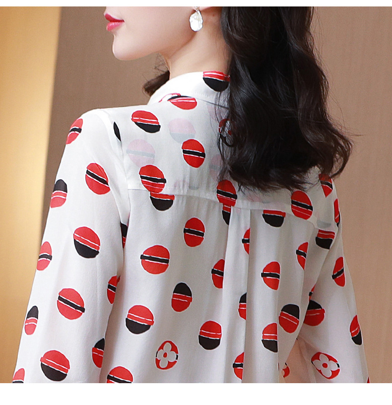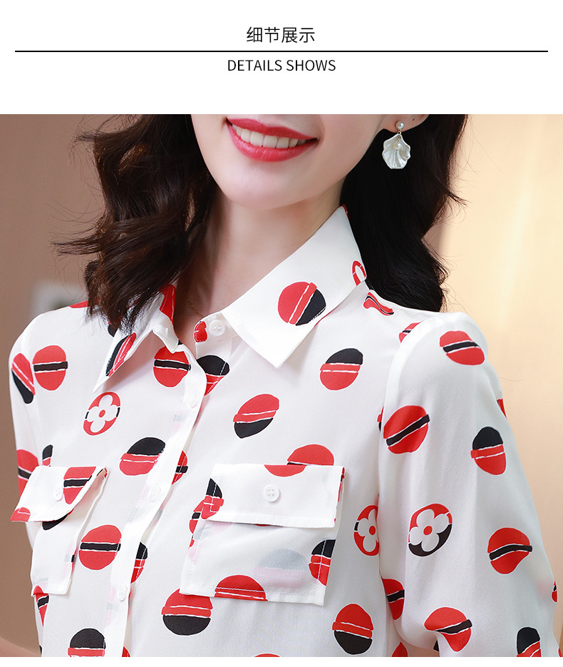 SS-09-20683卡通印花双口袋撞色时尚桑蚕丝上衣真丝衬衫