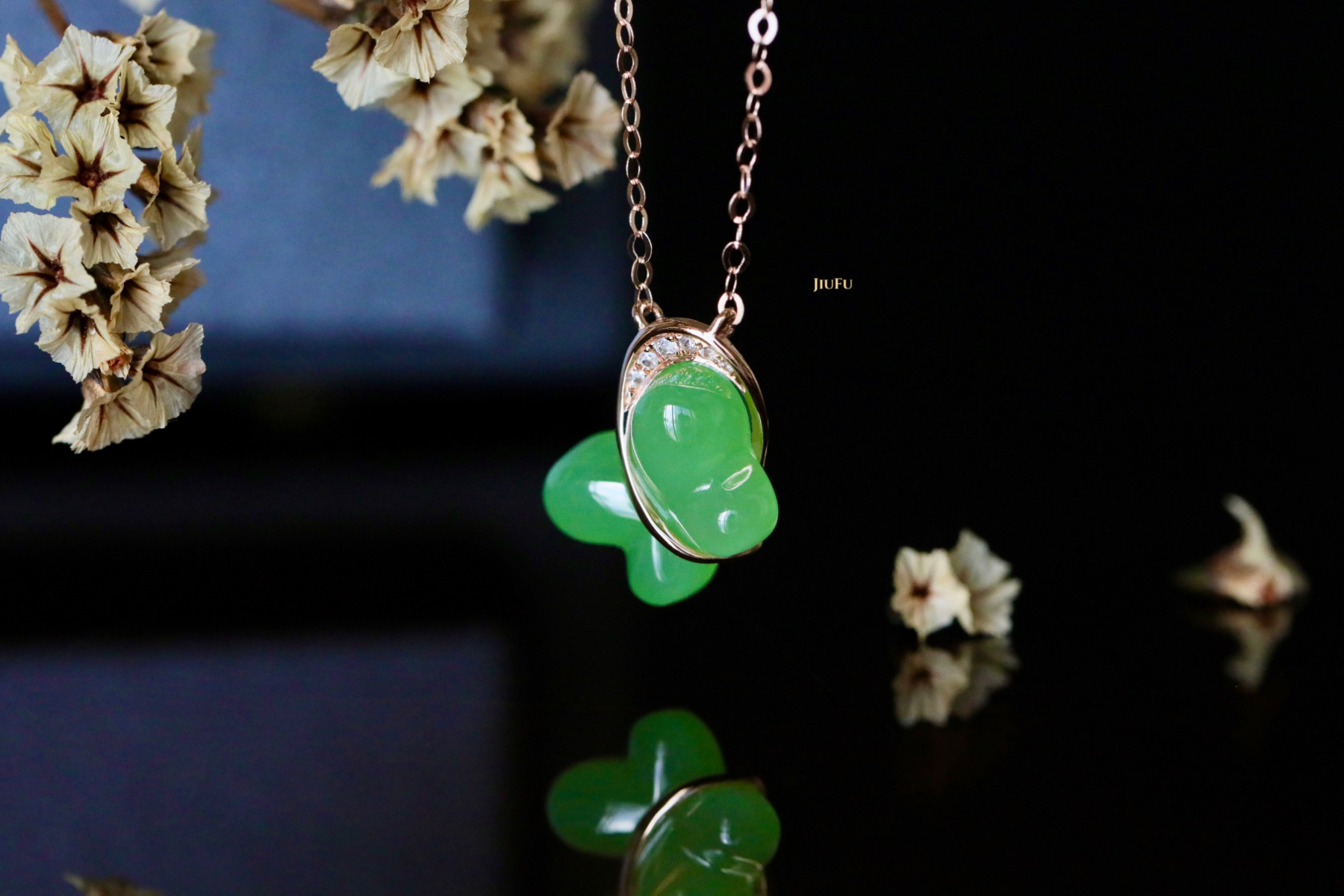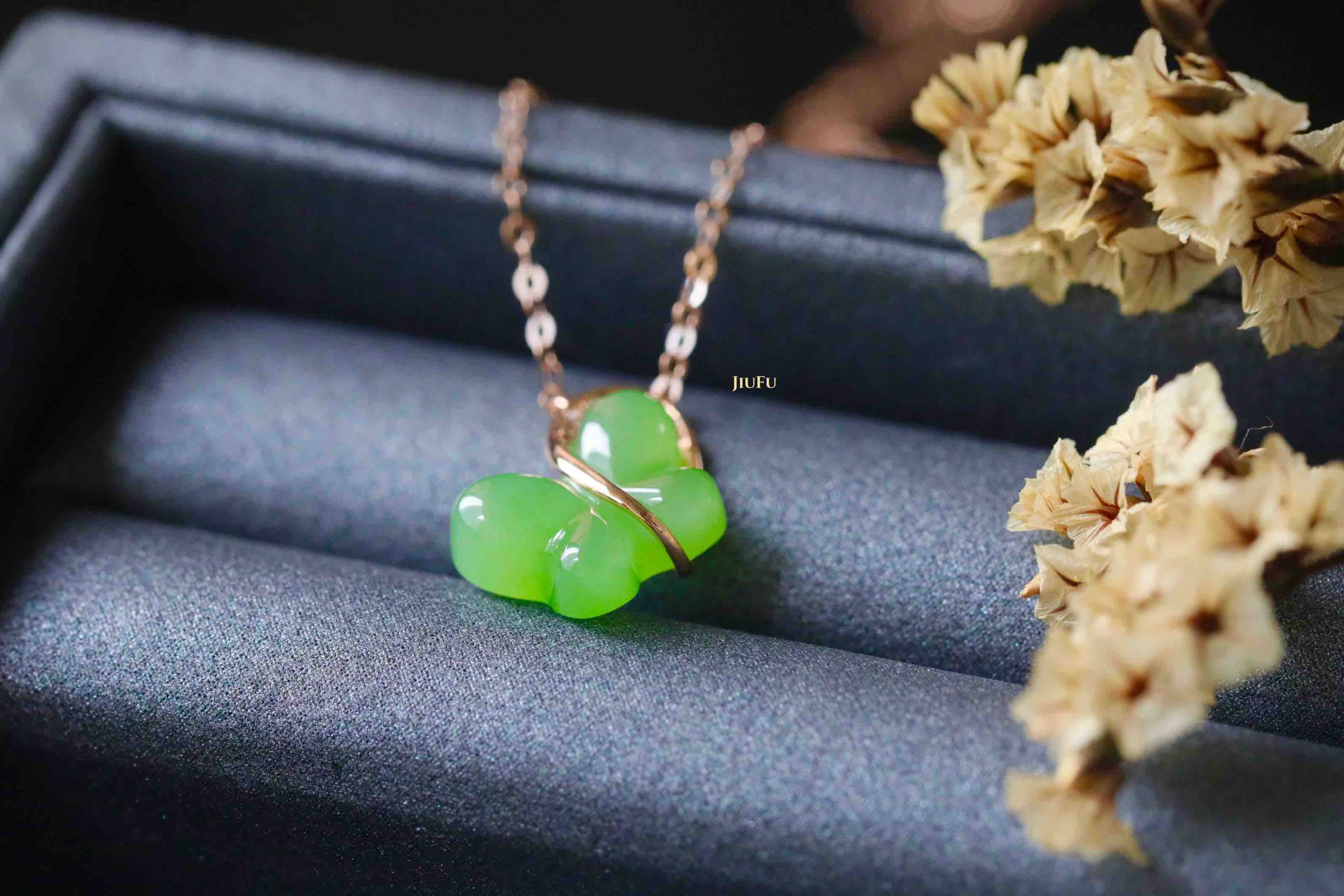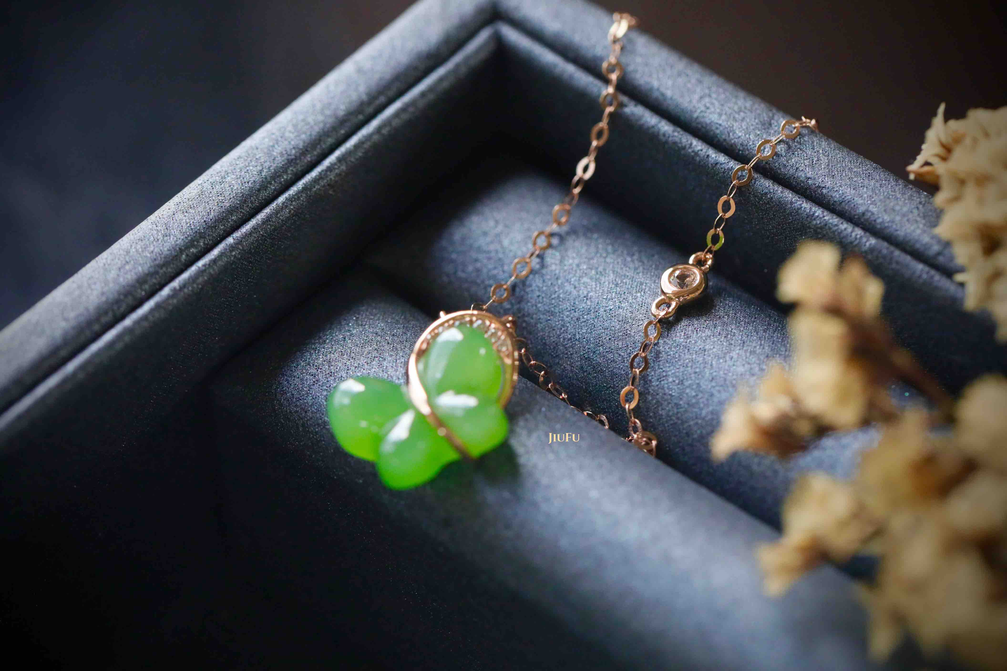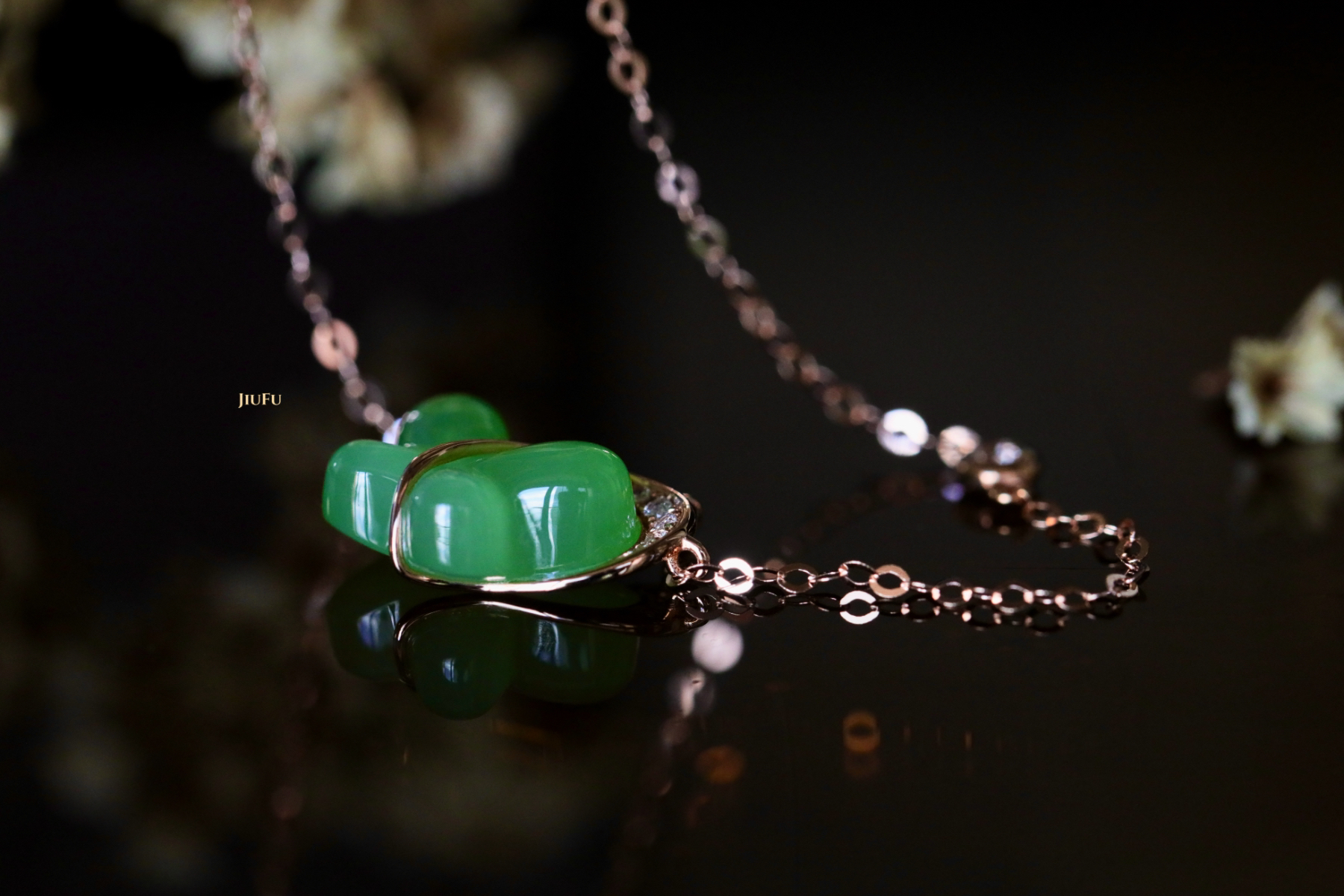 18K玫瑰金和田玉(碧玉)项链