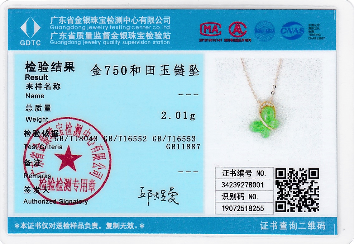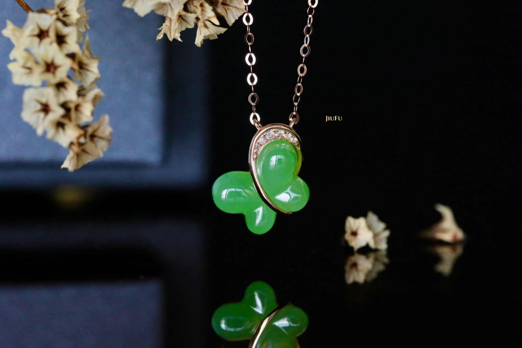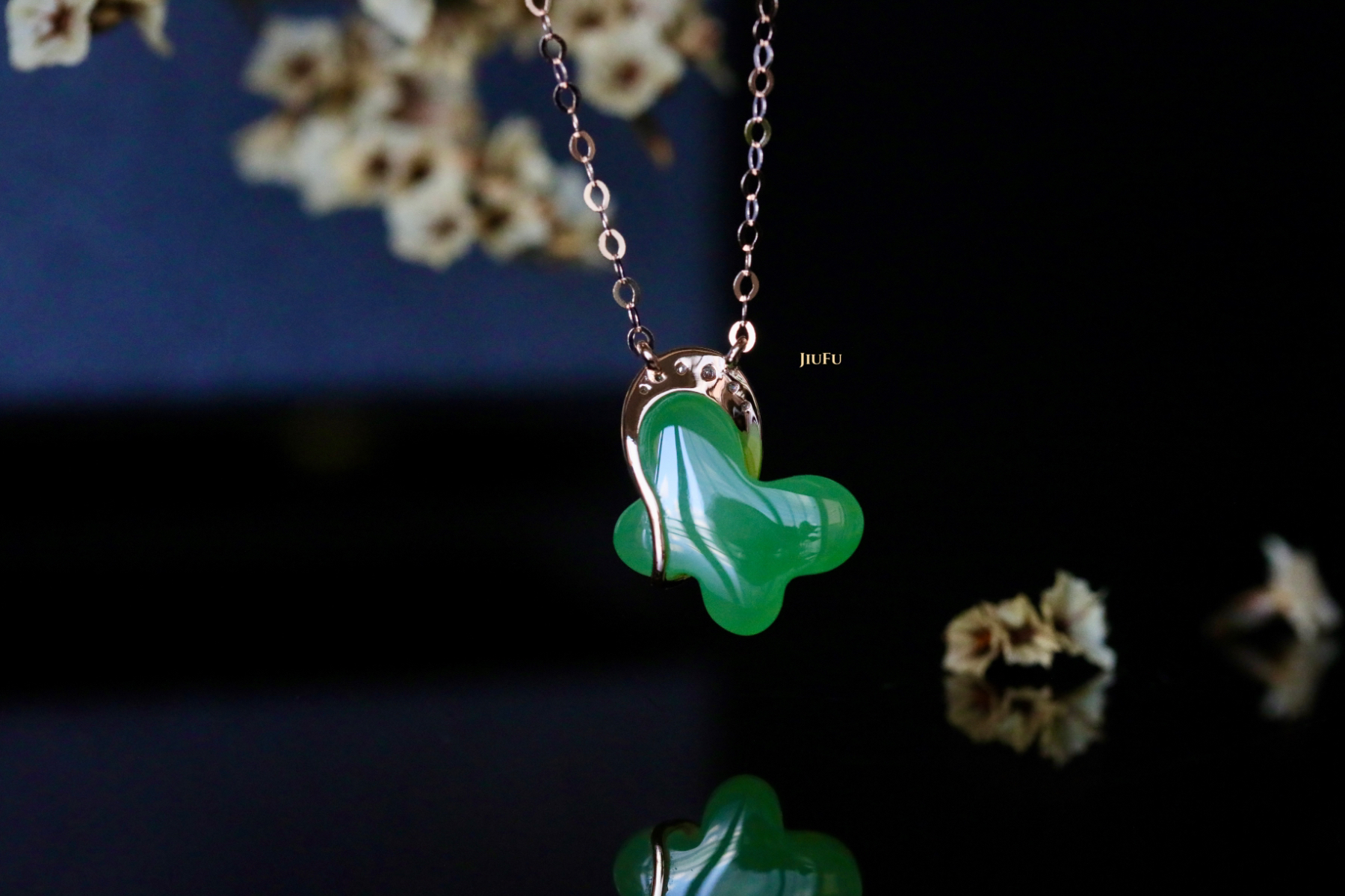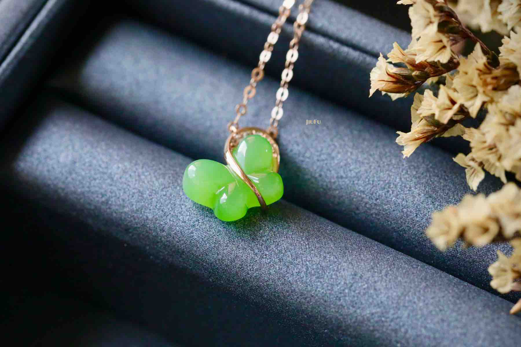 18K玫瑰金和田玉(碧玉)项链