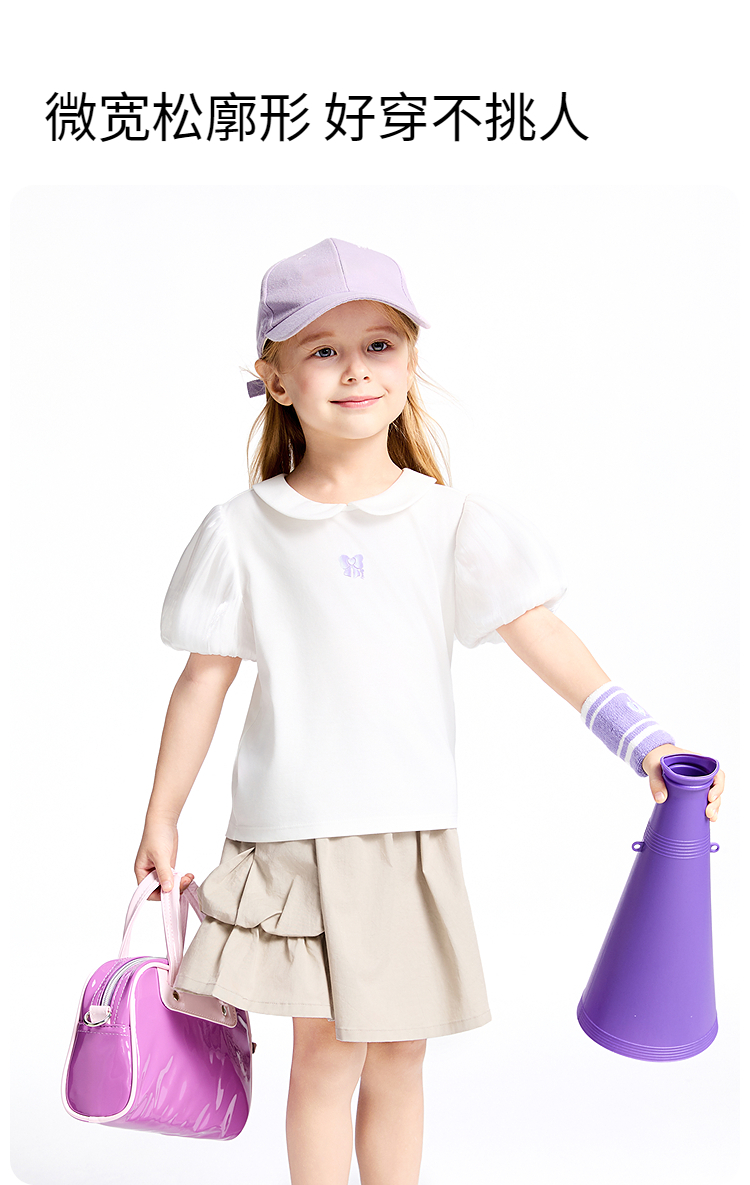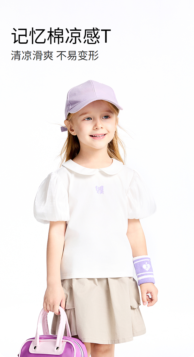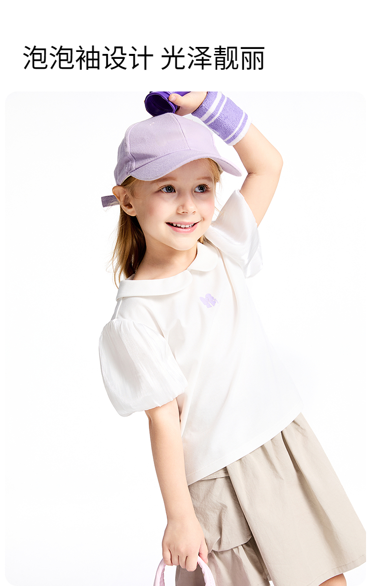 女童翻领SORONA凉感短袖上衣夏季新款安奈儿童装实体店同款XG521689