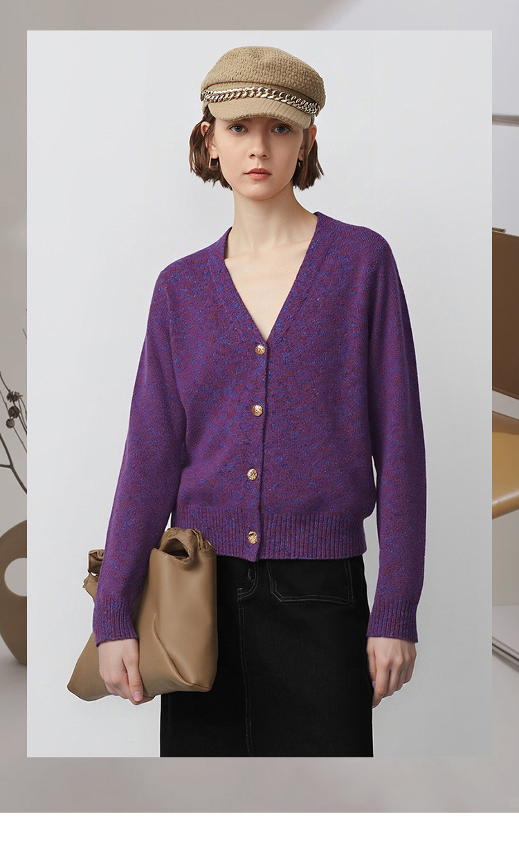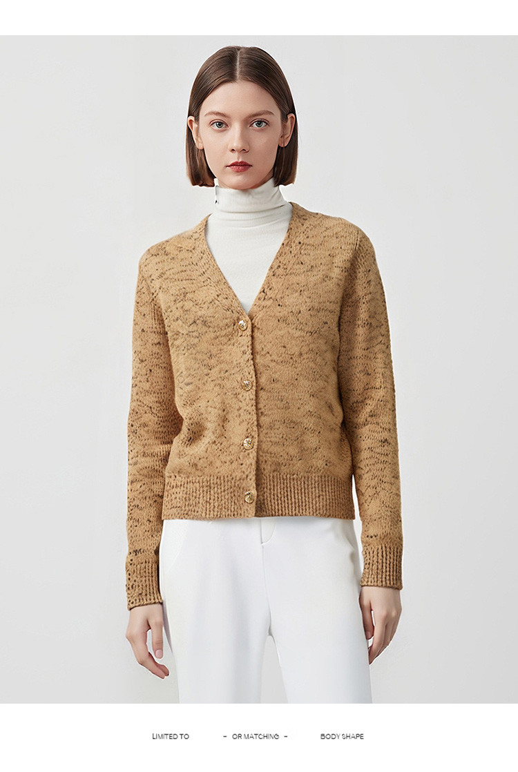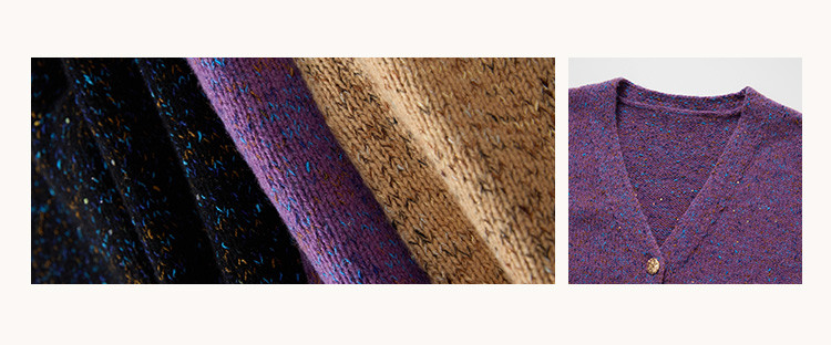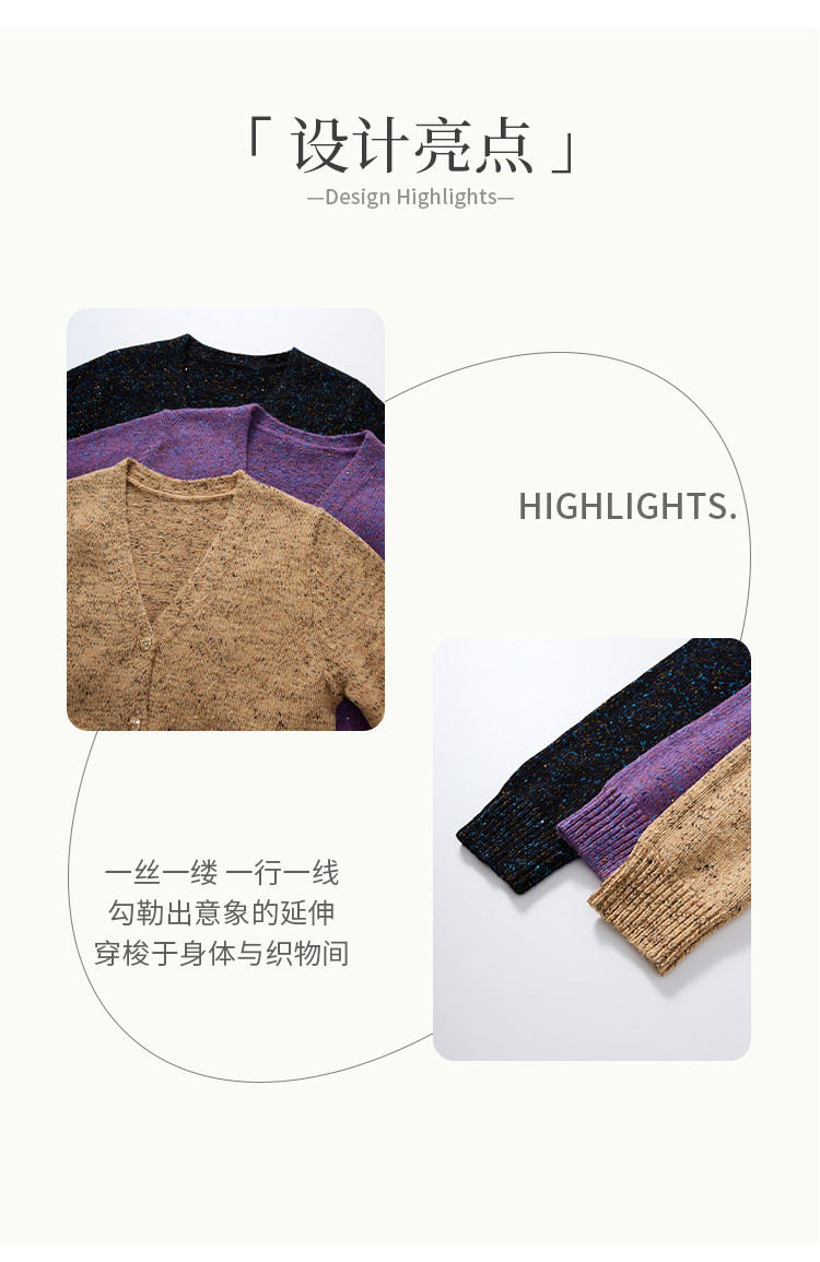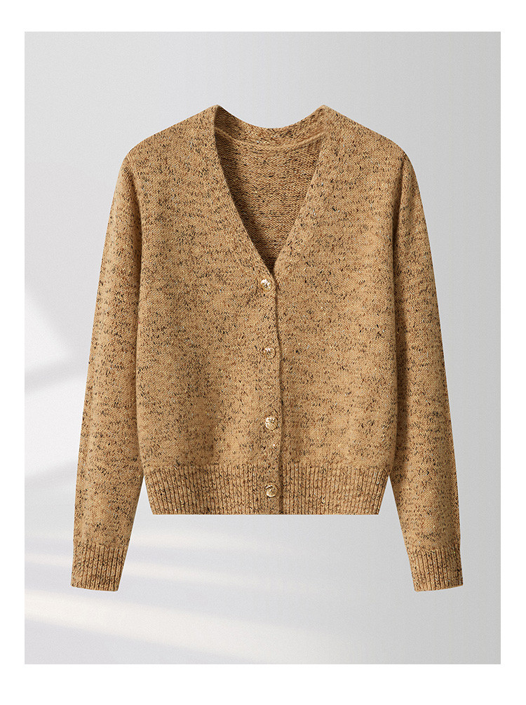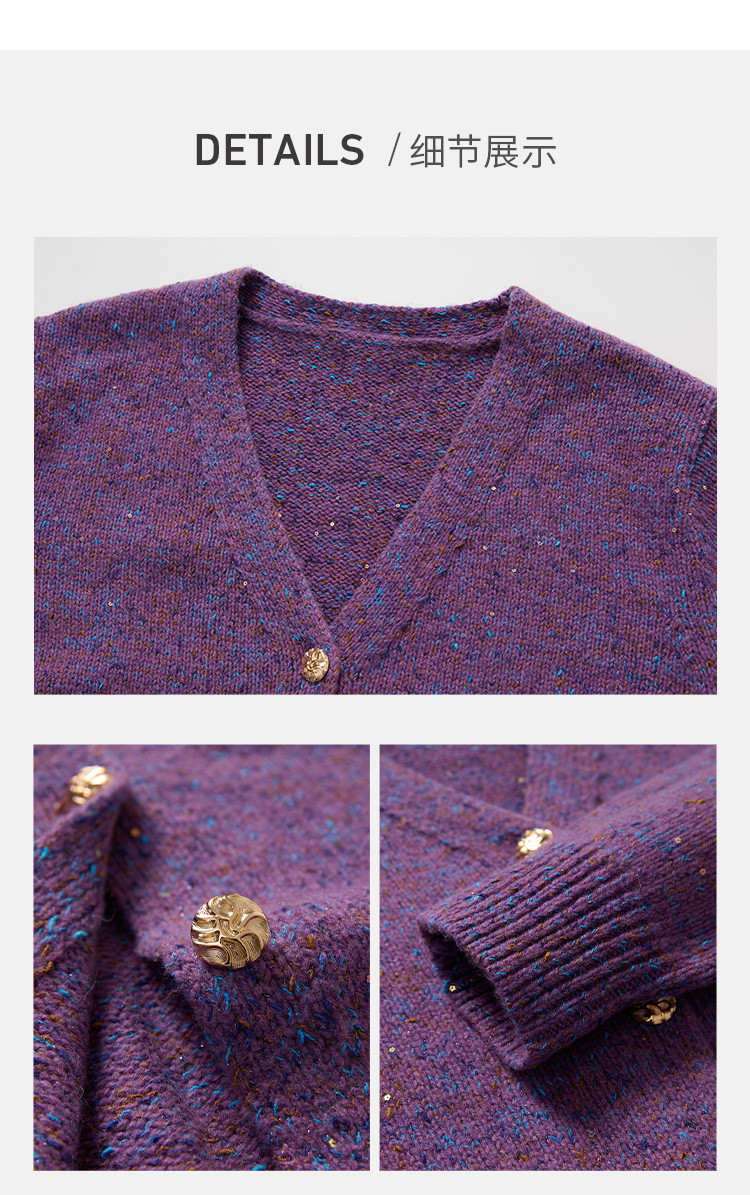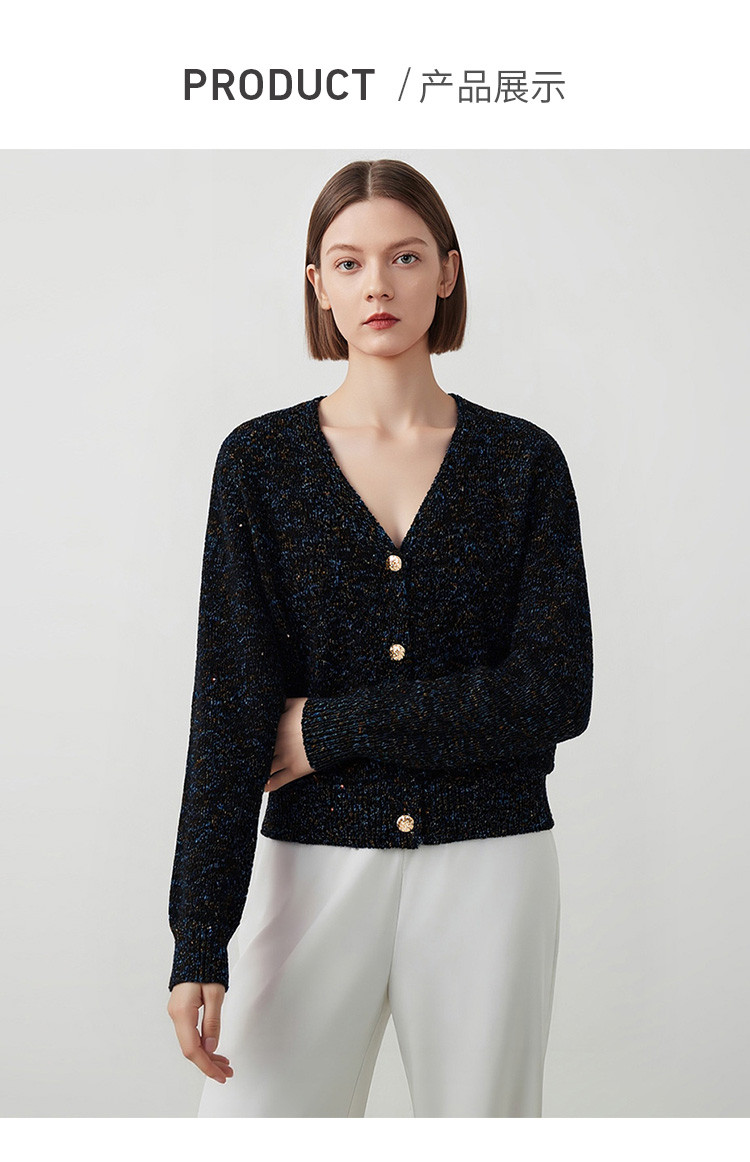 罗蒙秋冬女士金丝珠片羊毛衫外套V领开衫百搭设计感针织衫毛衣上衣女
