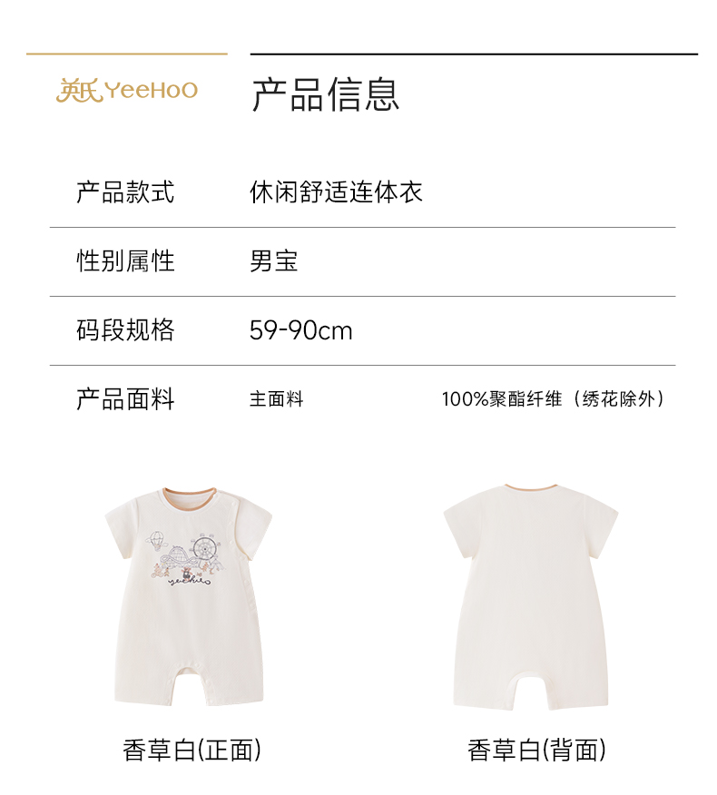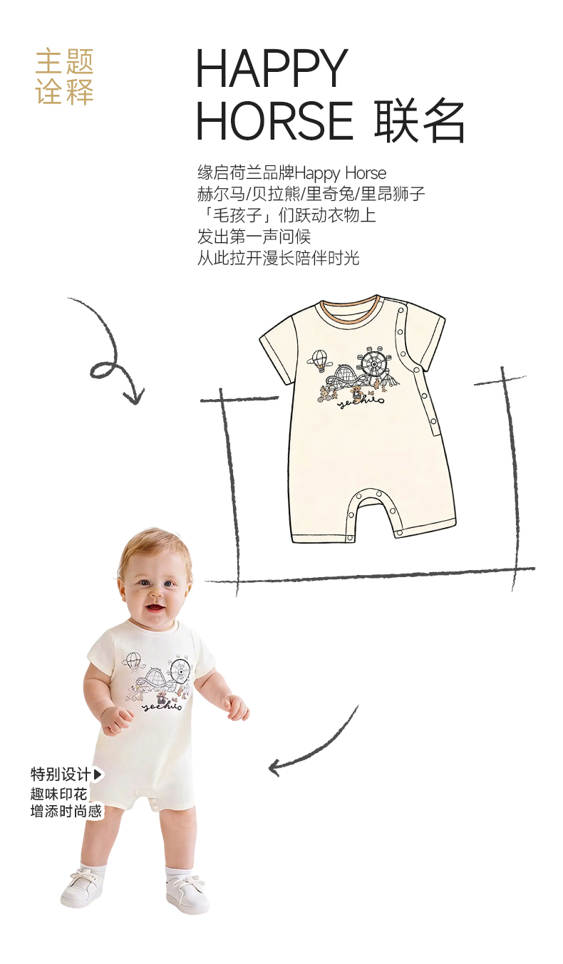【联名款】英氏&HappyHorse宝宝夏季连体衣男宝短哈衣新生儿爬服