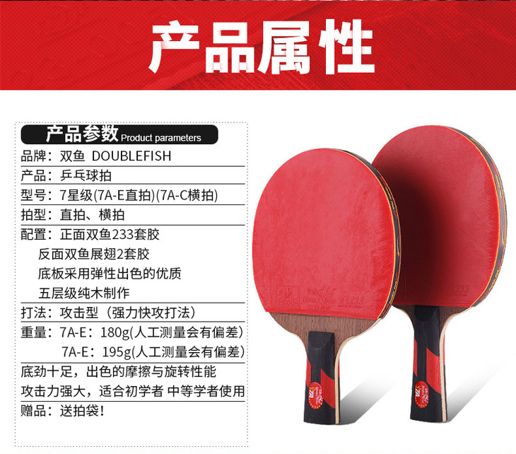 柄型分类: 7A-E直拍短柄 7A-C横拍长柄