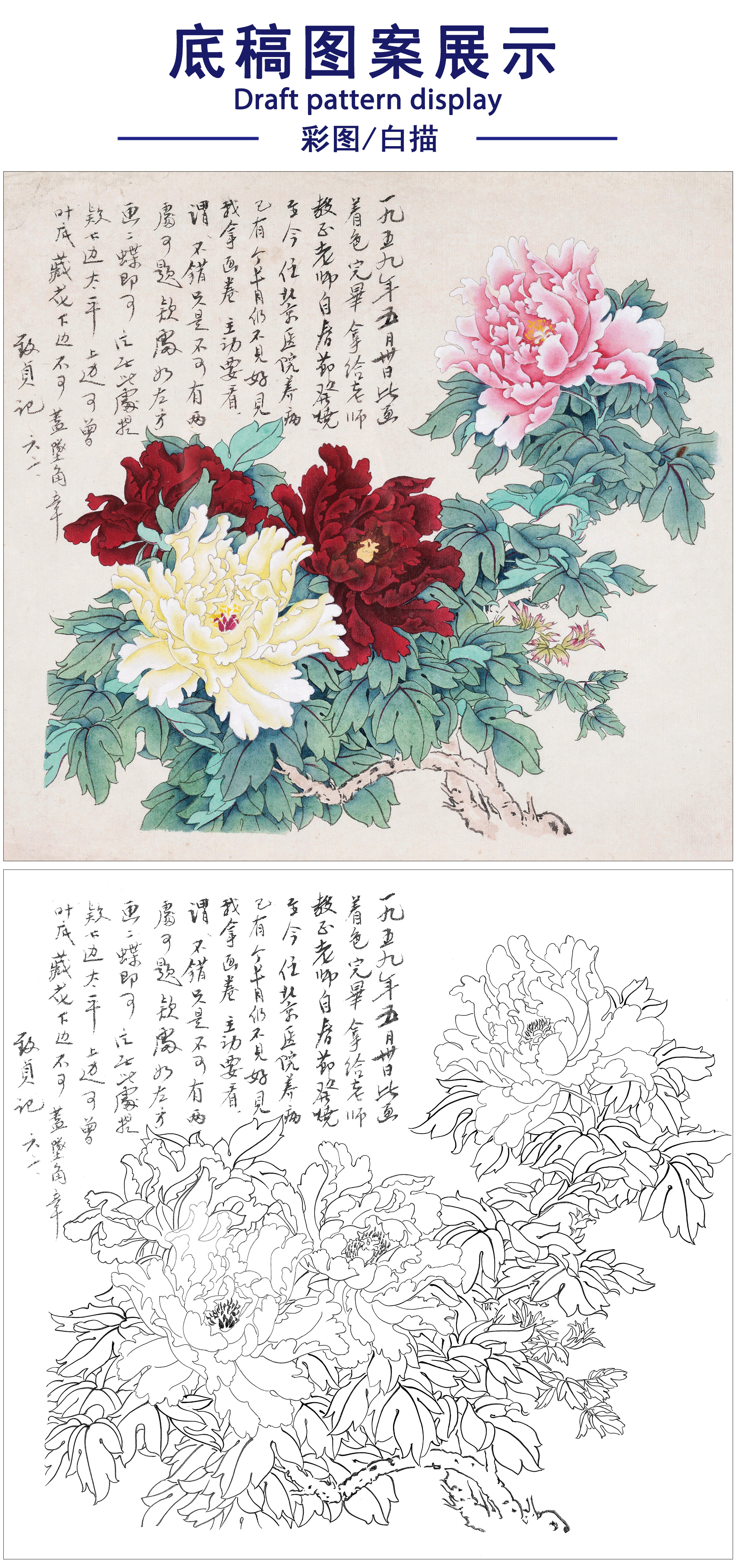俞致贞花鸟工笔画白描底稿《工笔牡丹》临摹勾线高清打印稿ZZ68