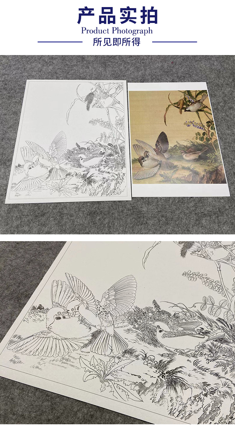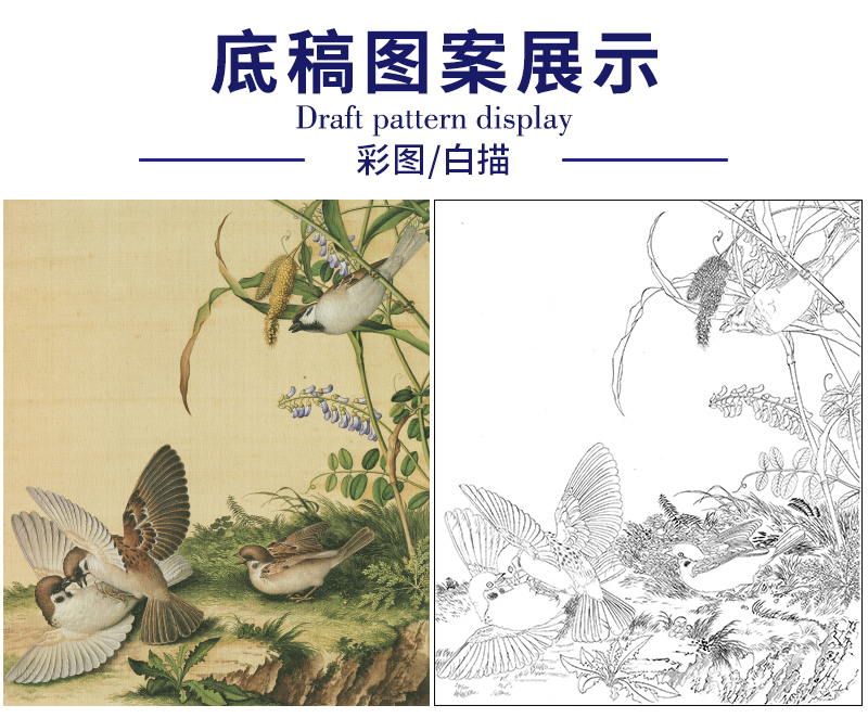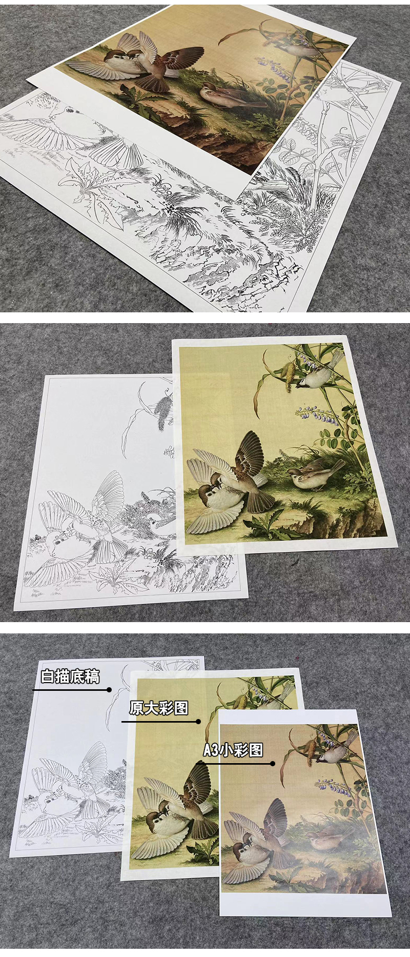 【大彩图】郎世宁工笔画白描底稿小品《仙萼长春册》豆花临摹勾线高清打印稿LT14