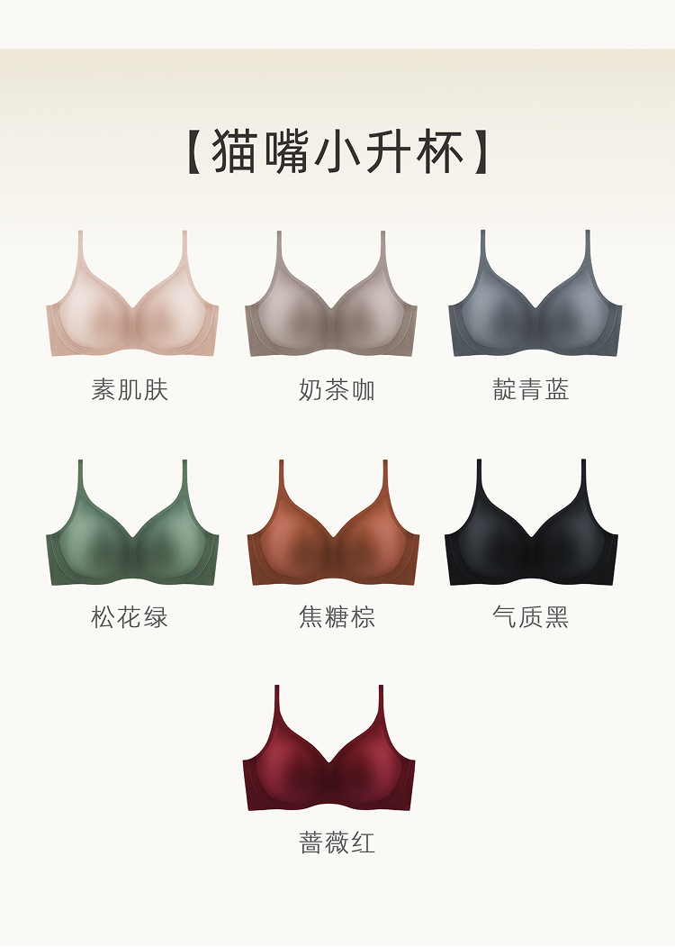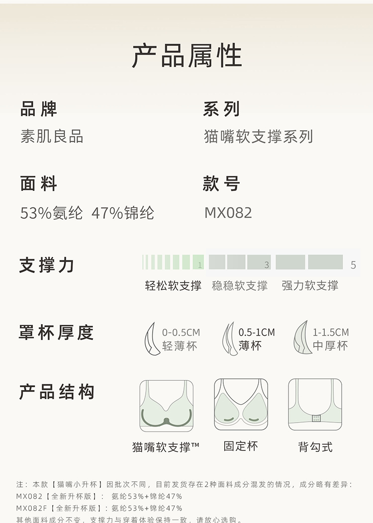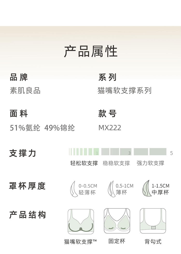 素肌良品【猫嘴杯】小胸显大视觉丰盈文胸 -升级固定杯-MX082F-FX