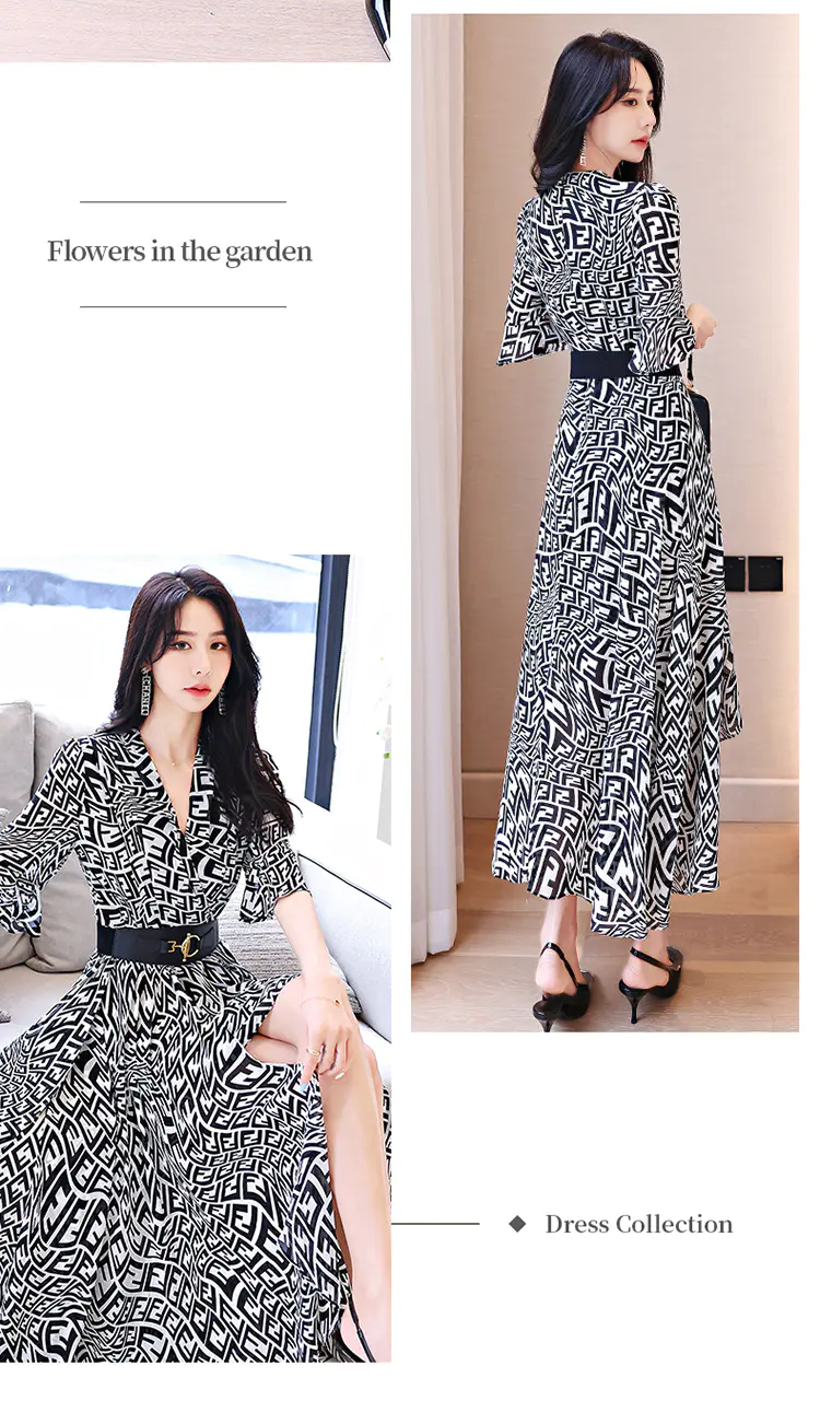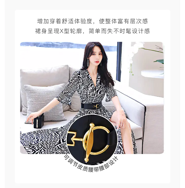 CQ620新品OL气质V领显瘦职业长袖长款裙