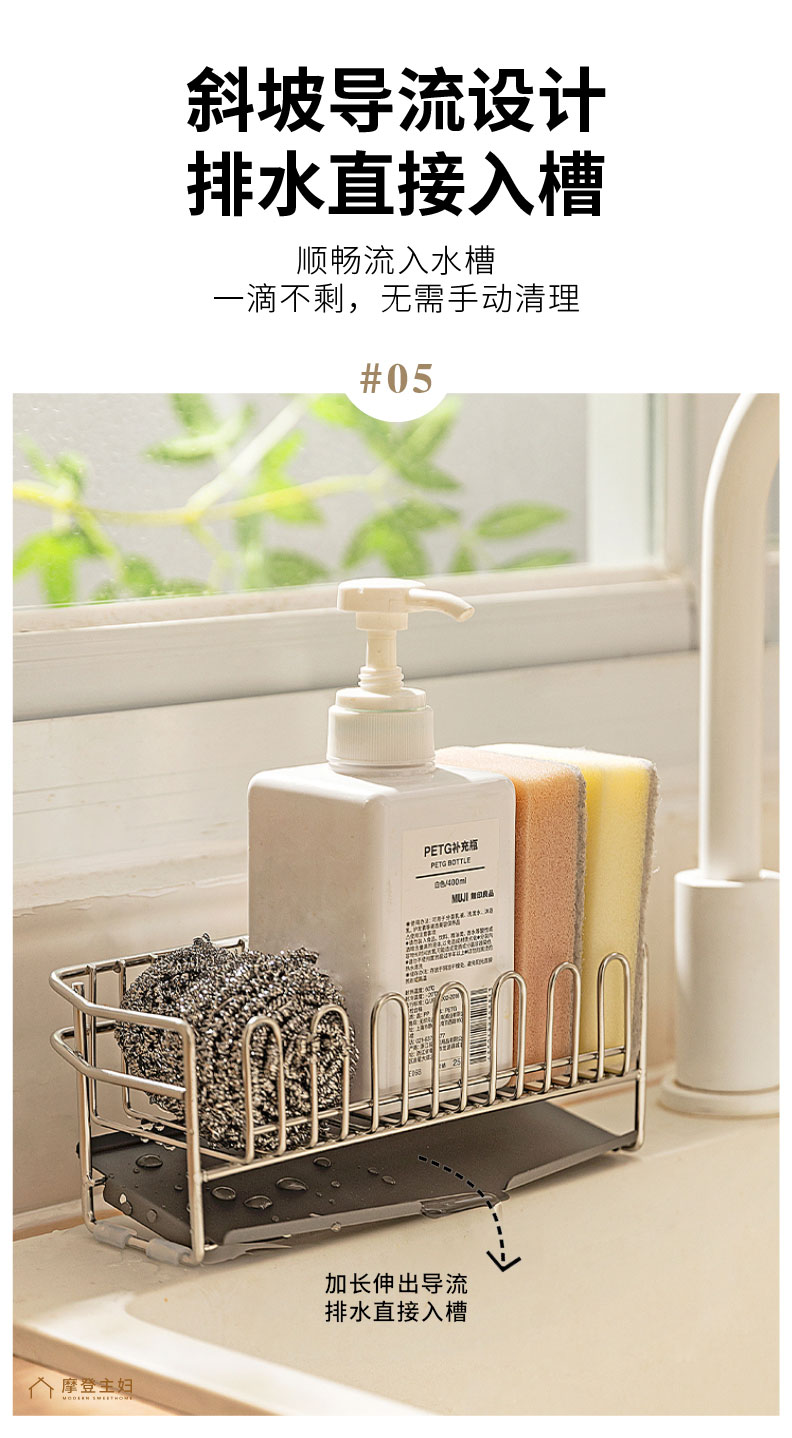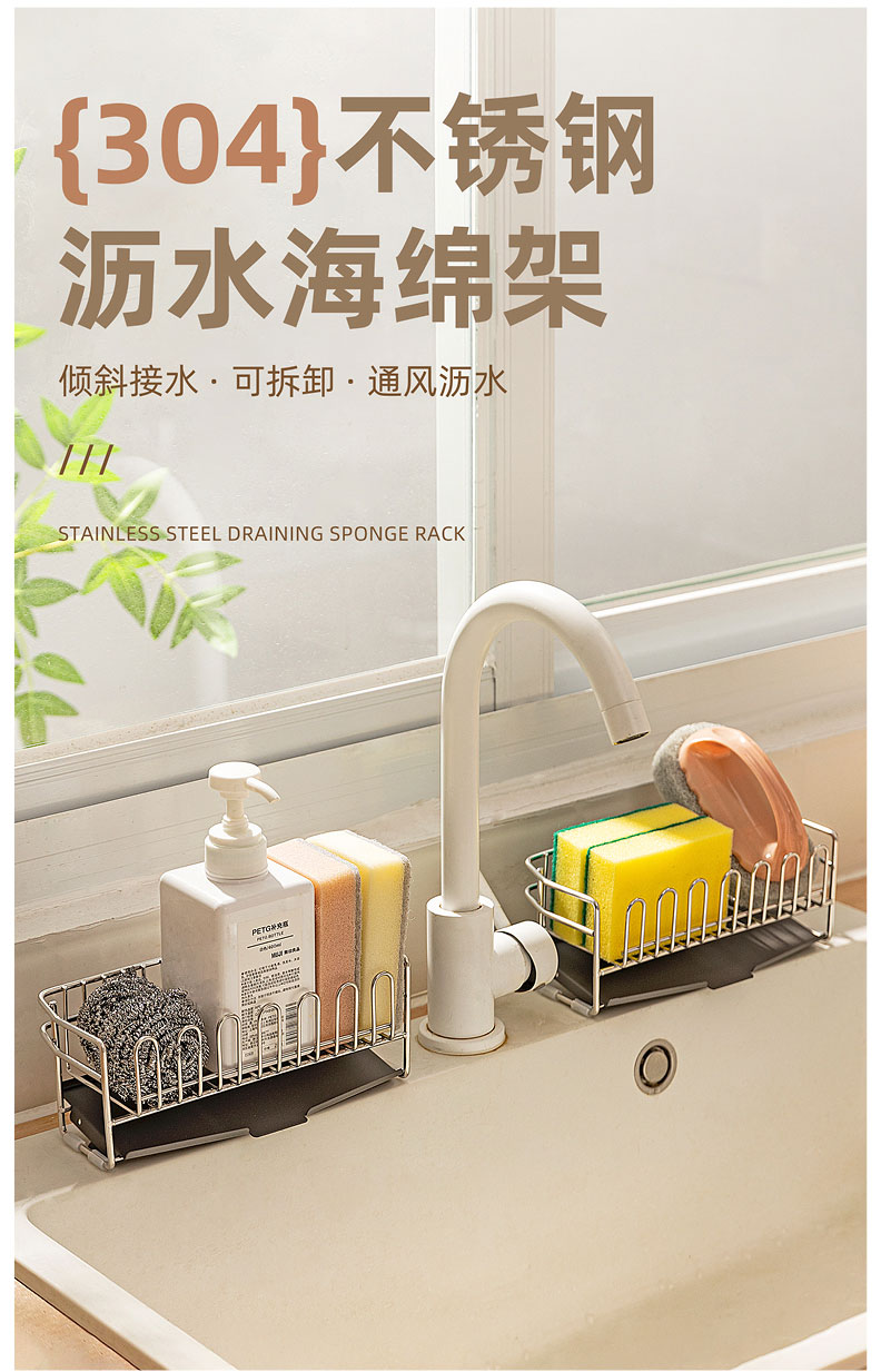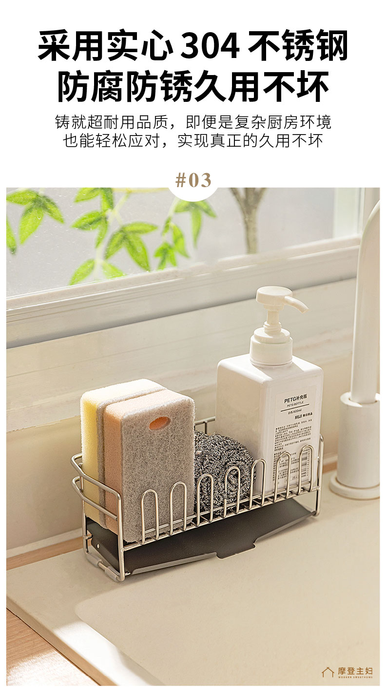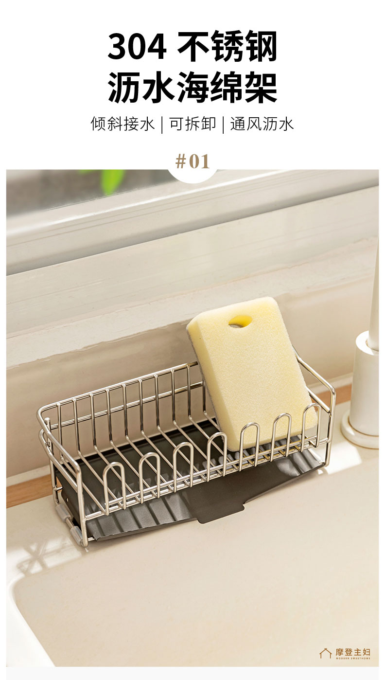 摩登主妇304不锈钢抹布沥水架海绵厨房台面水槽水龙头窄边置物架