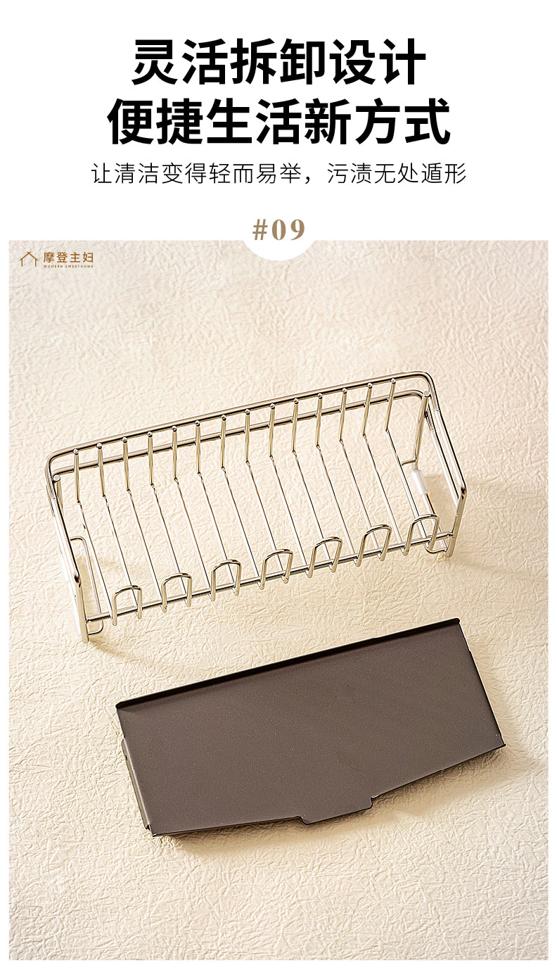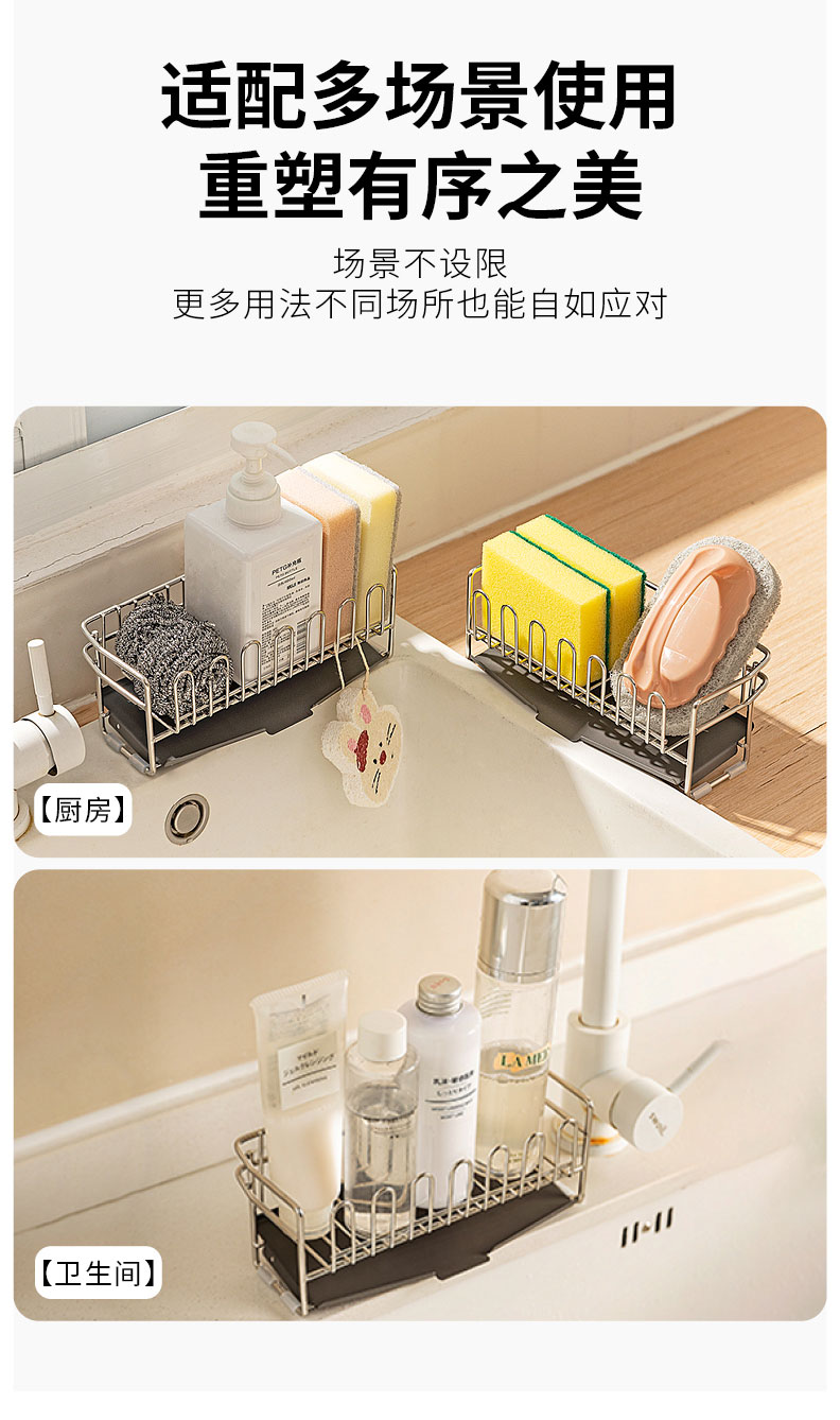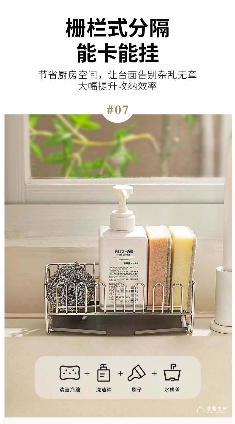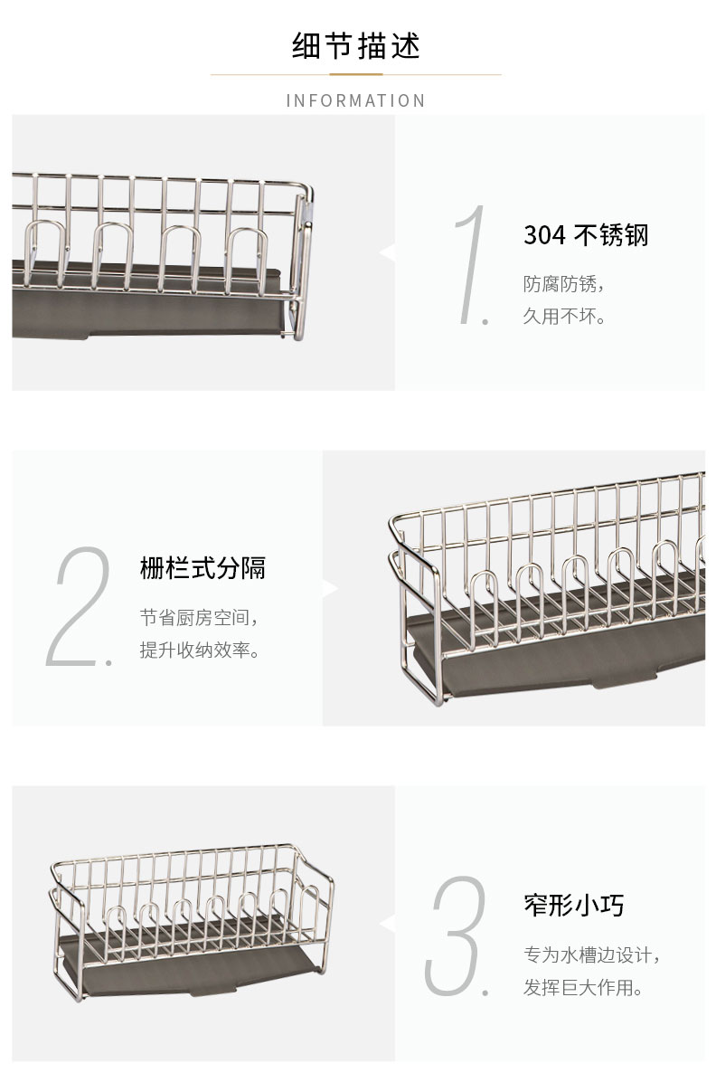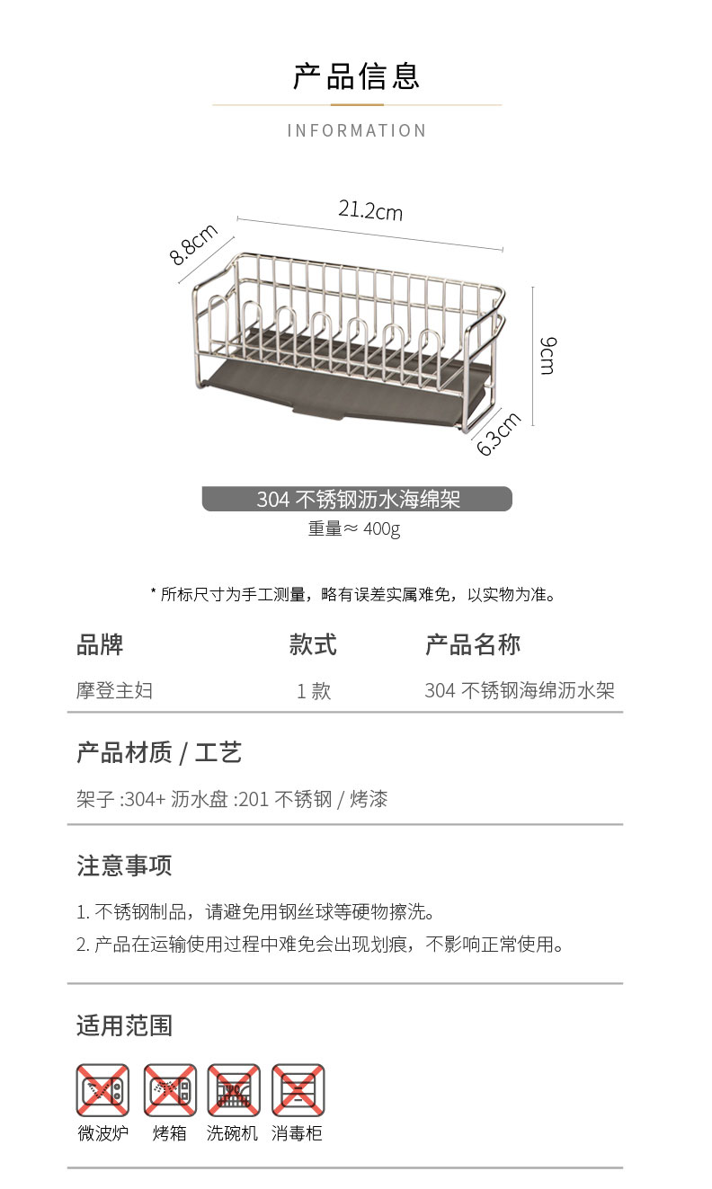摩登主妇304不锈钢抹布沥水架海绵厨房台面水槽水龙头窄边置物架