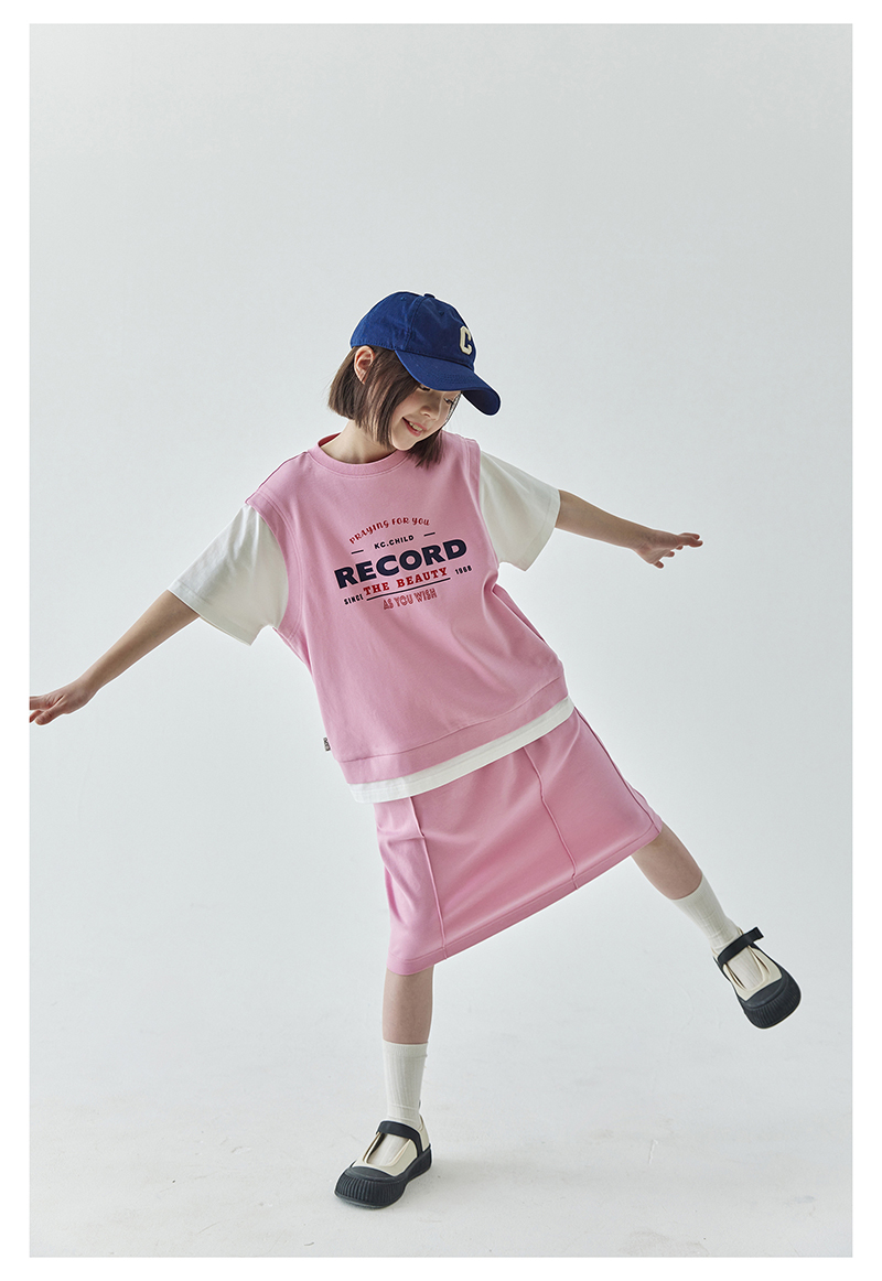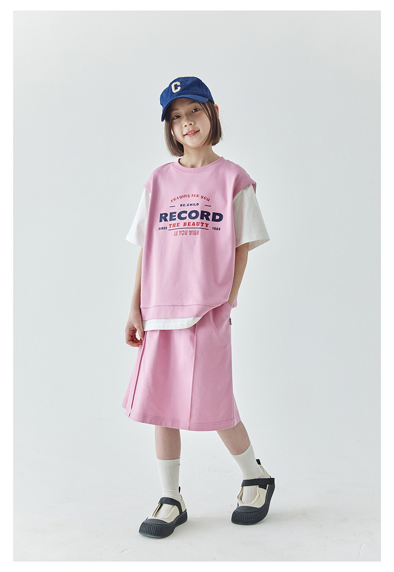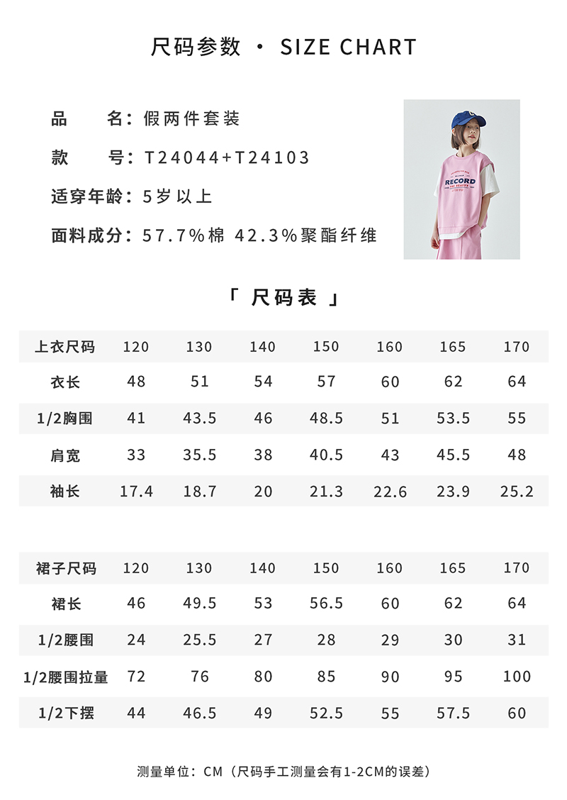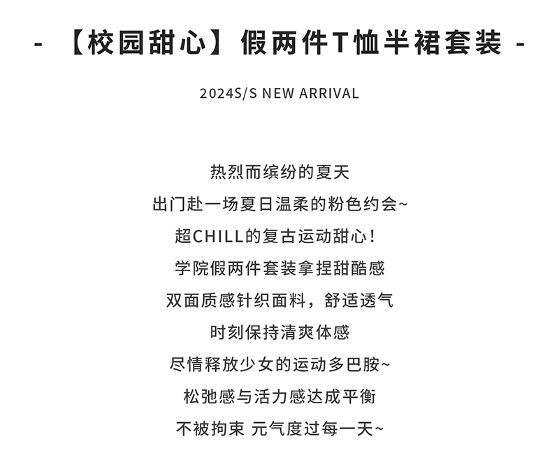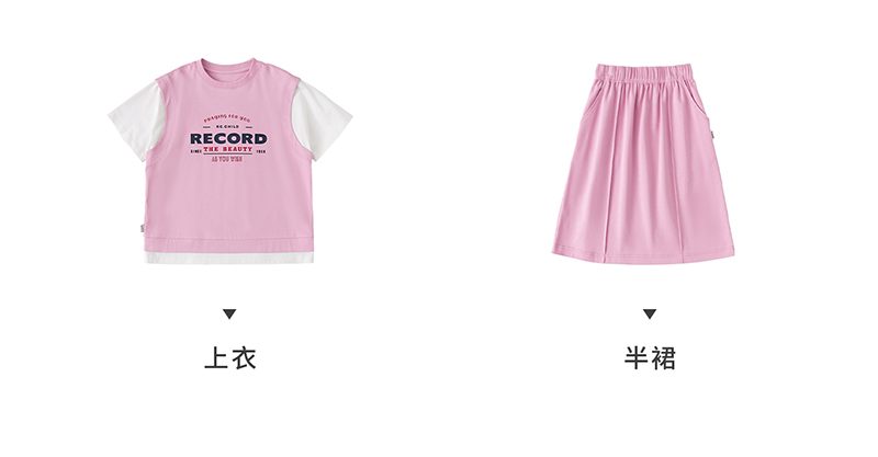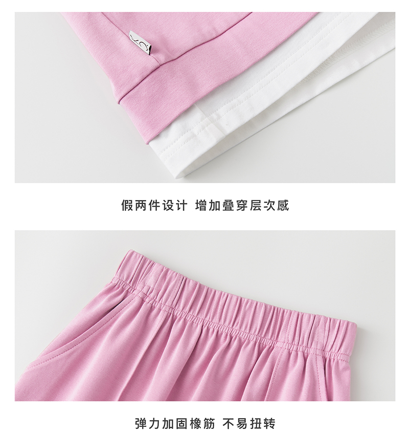 棵初夏季新品女童假两件T恤半裙套装亲子款休闲学院风两件套