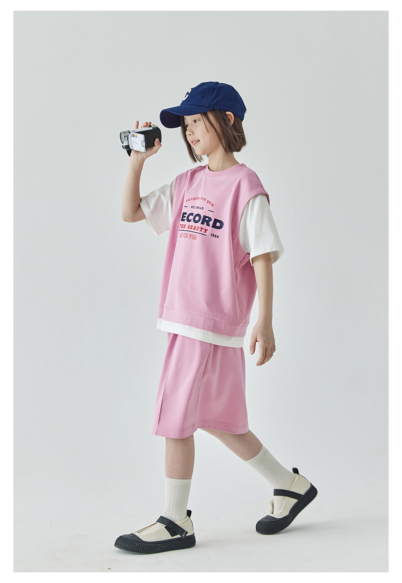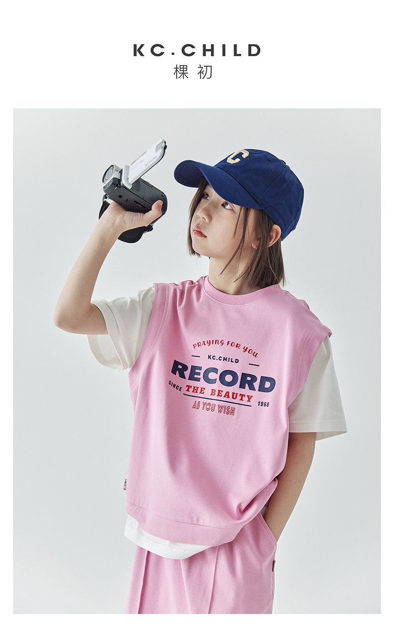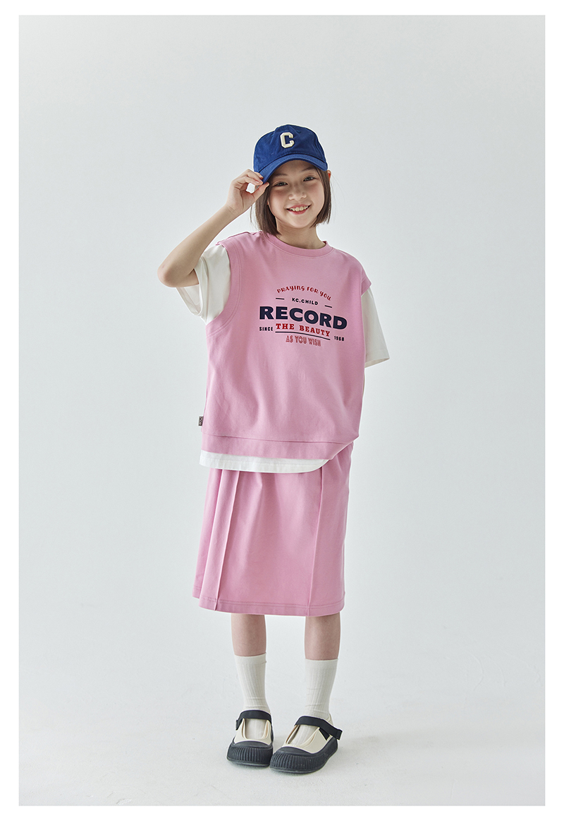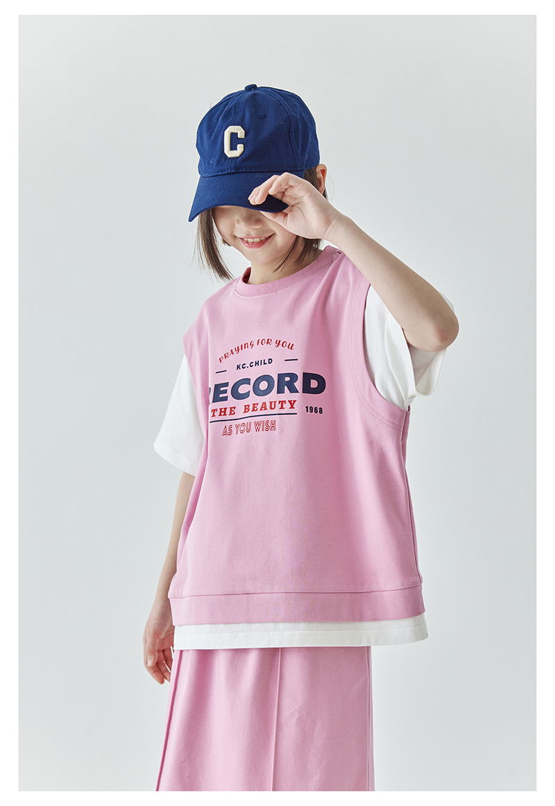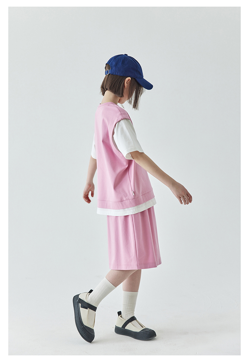 棵初夏季新品女童假两件T恤半裙套装亲子款休闲学院风两件套