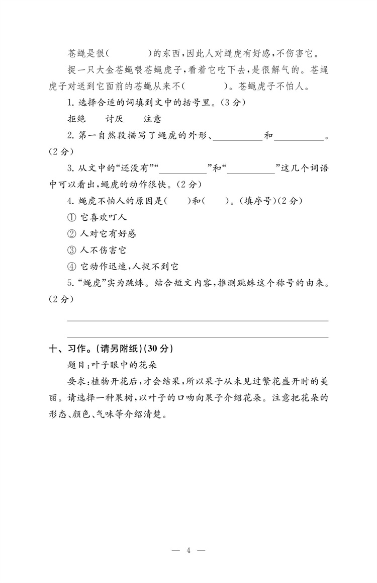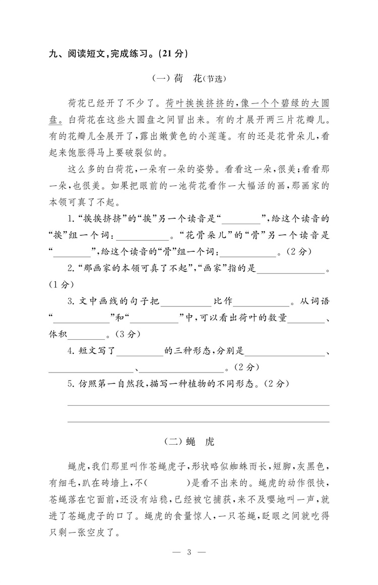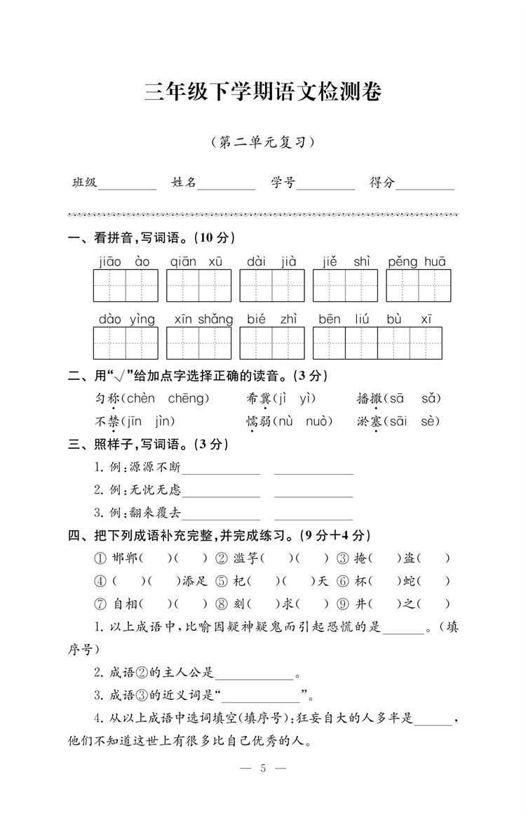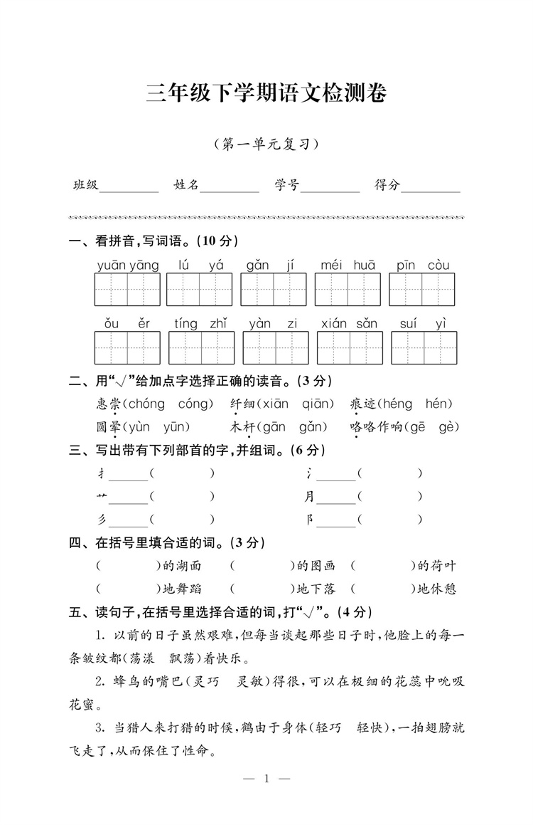 2025春 语文练习与测试检测卷 3下 部编人教版 含电子答案 教材同步试卷测试卷习题训练 三年级下册 江苏凤凰教育出版社JC