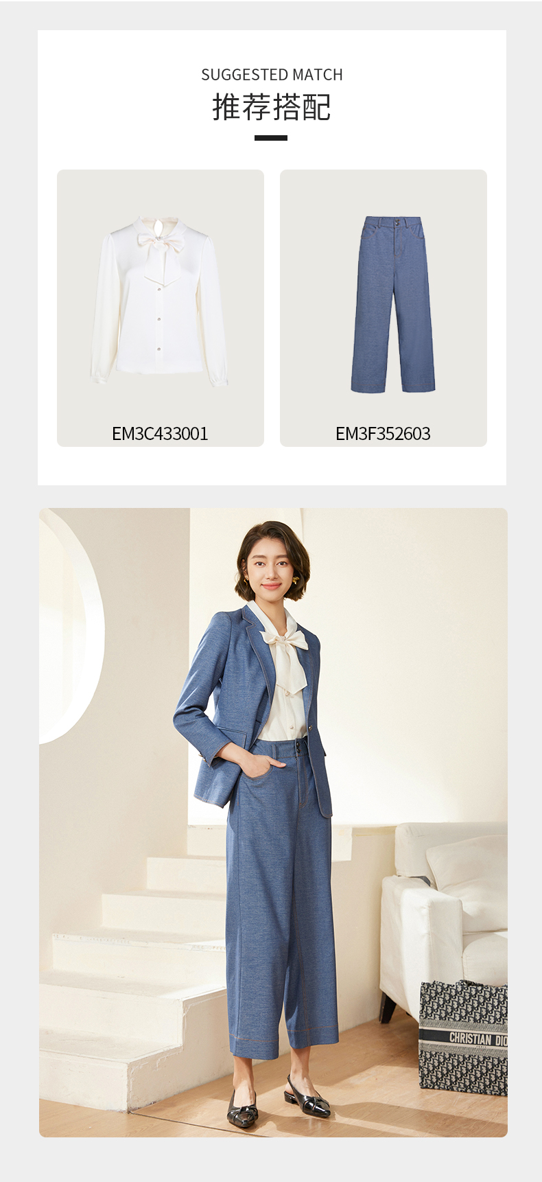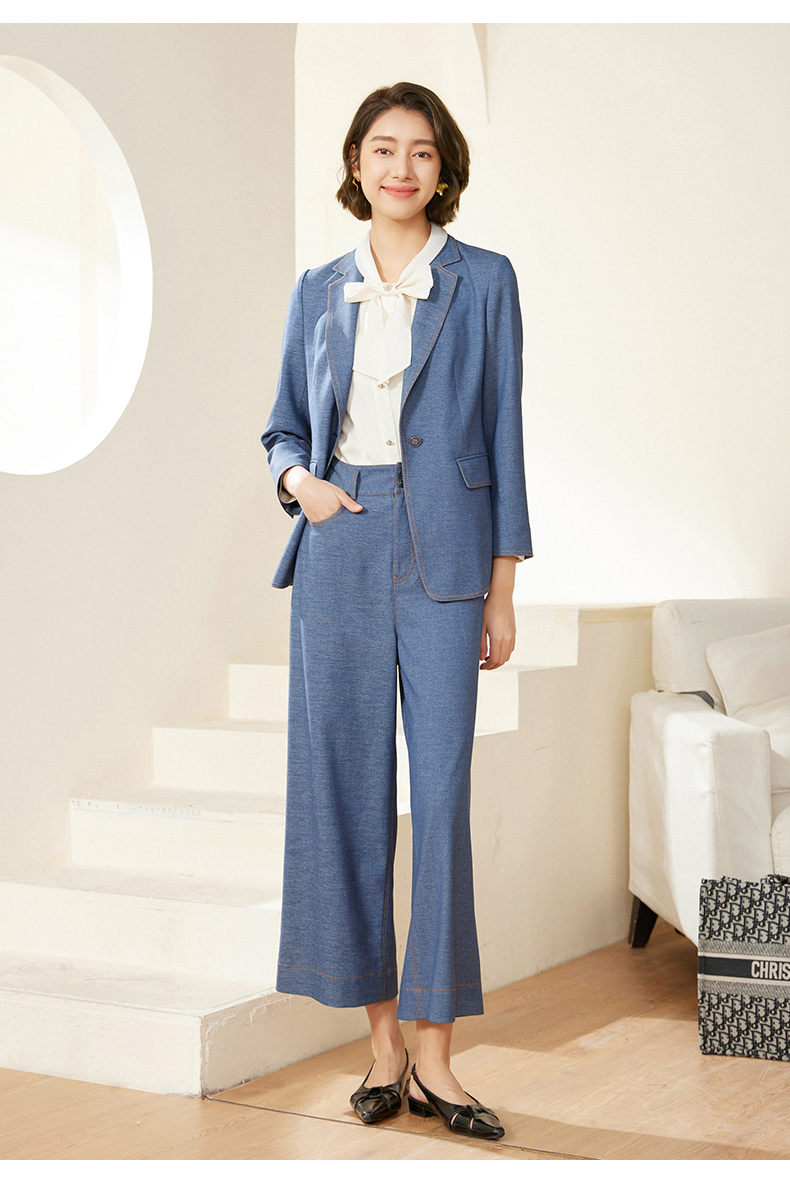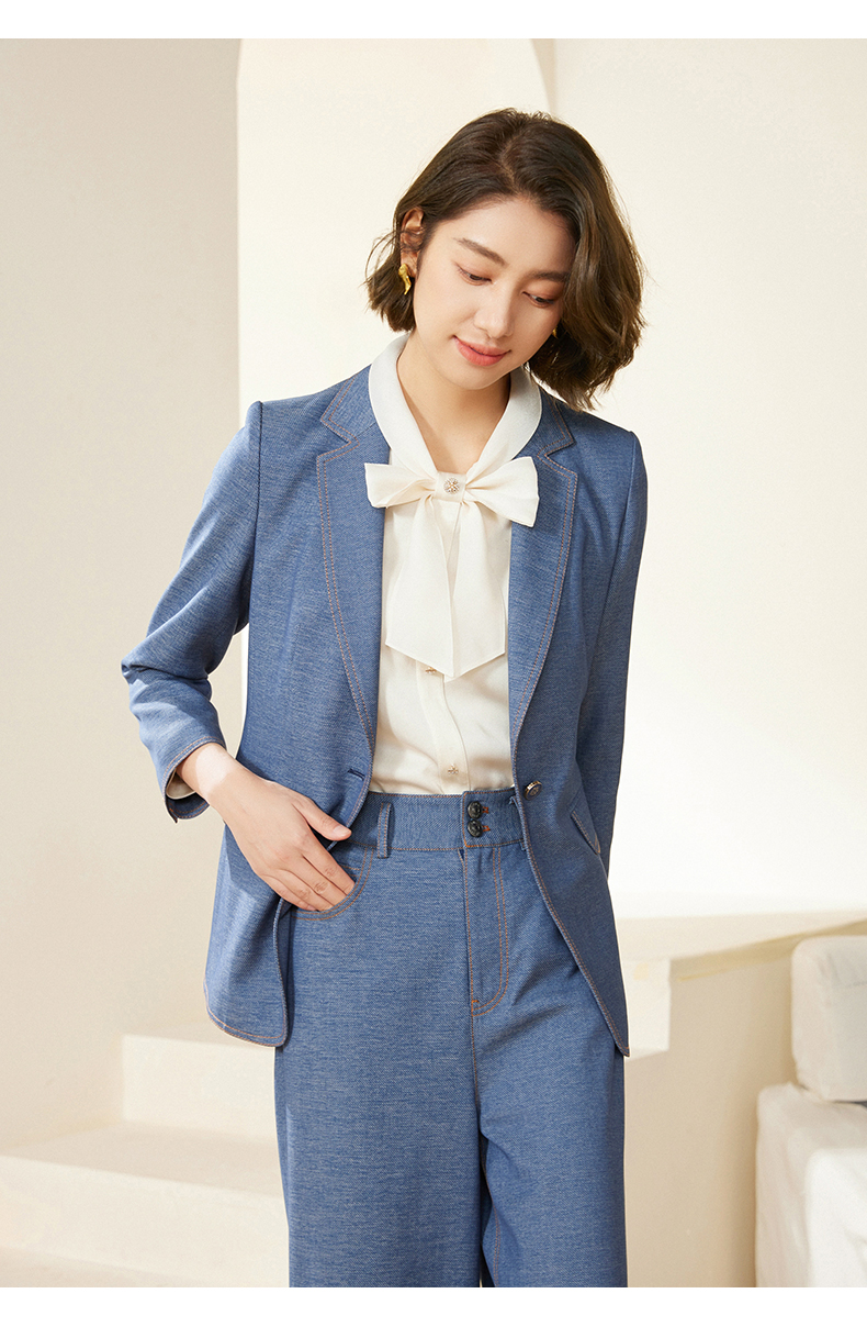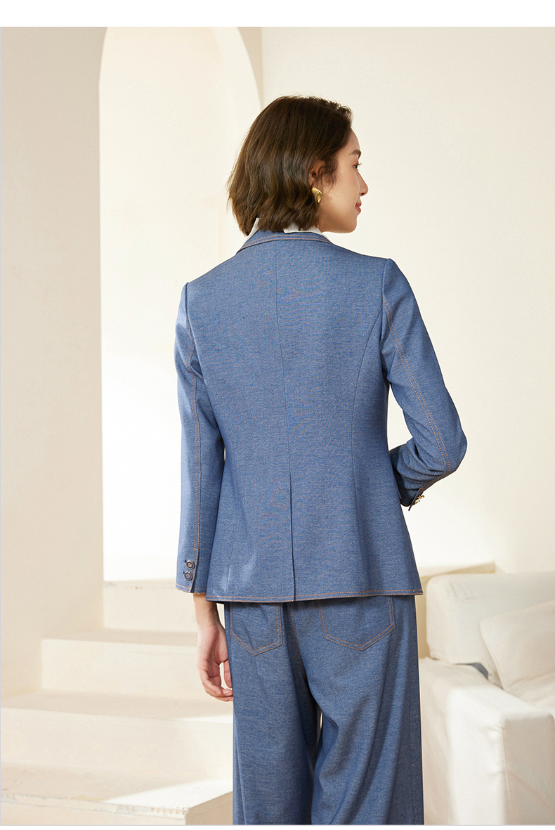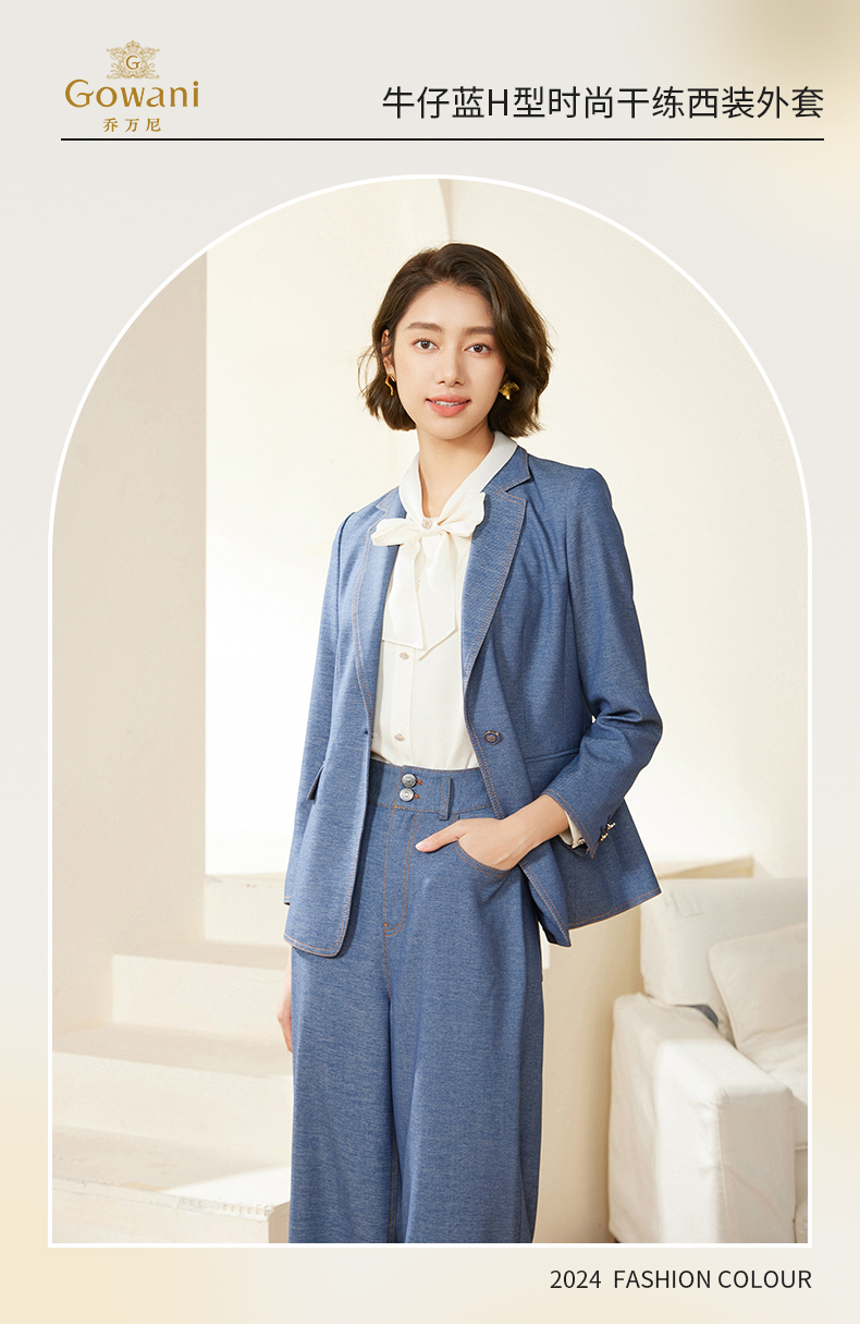 乔万尼早秋西装外套女牛仔蓝气质高级EM3B349