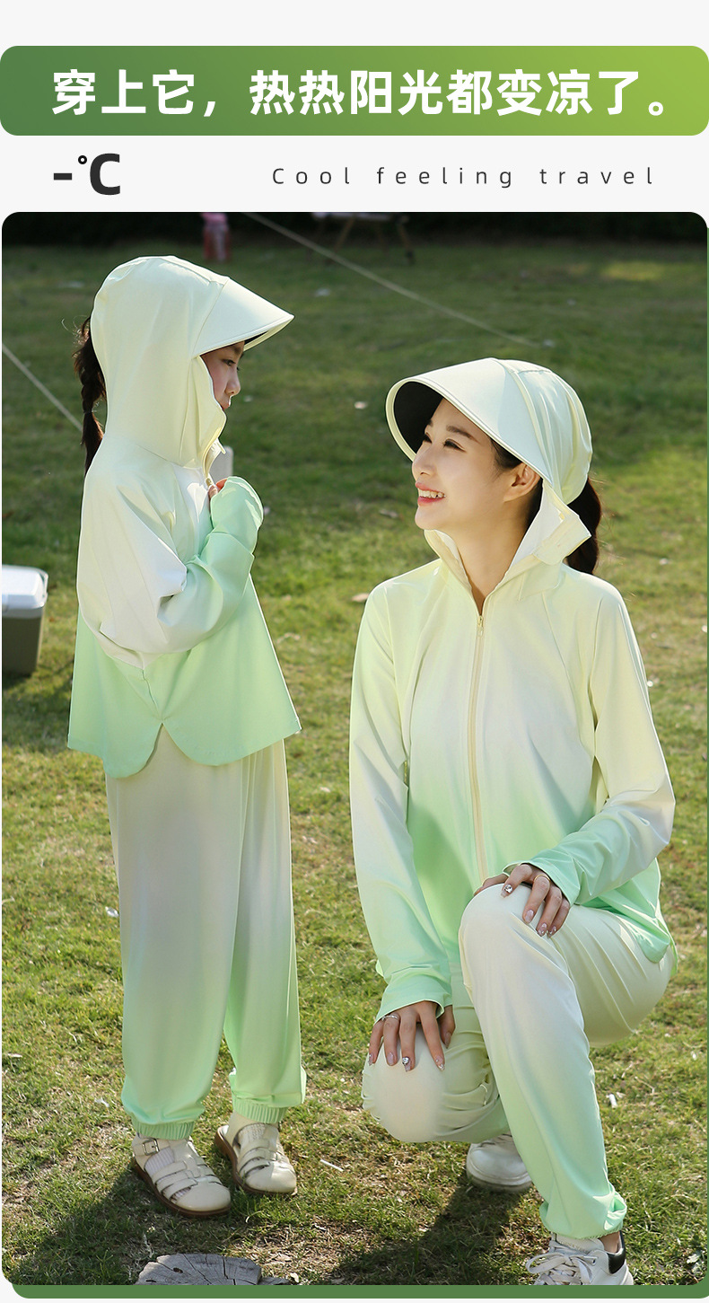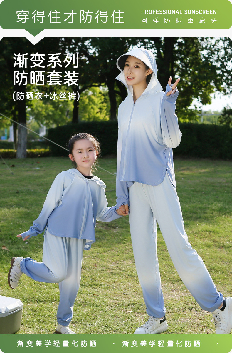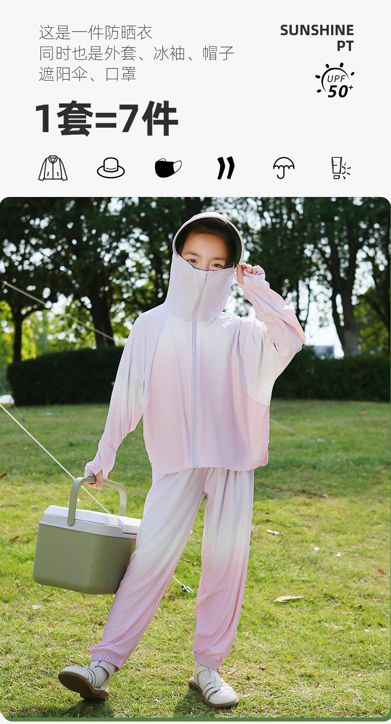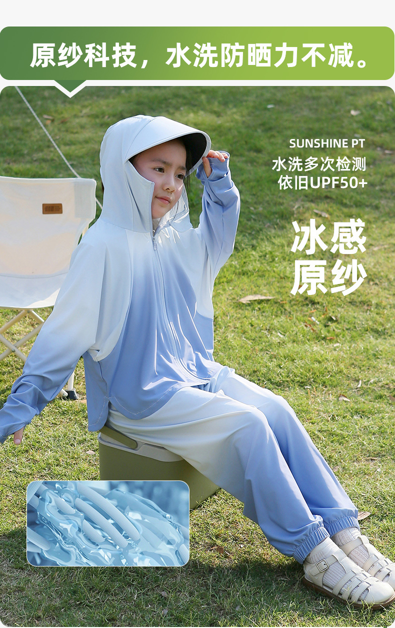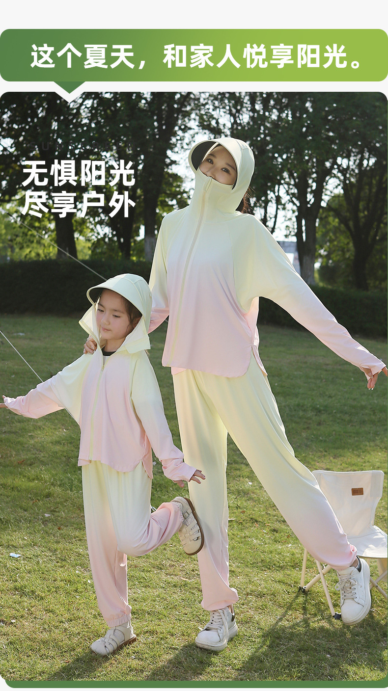 雀说渐变款儿童防晒衣男童女童黑胶帽檐防紫外线户外冰丝薄亲子防晒服AL