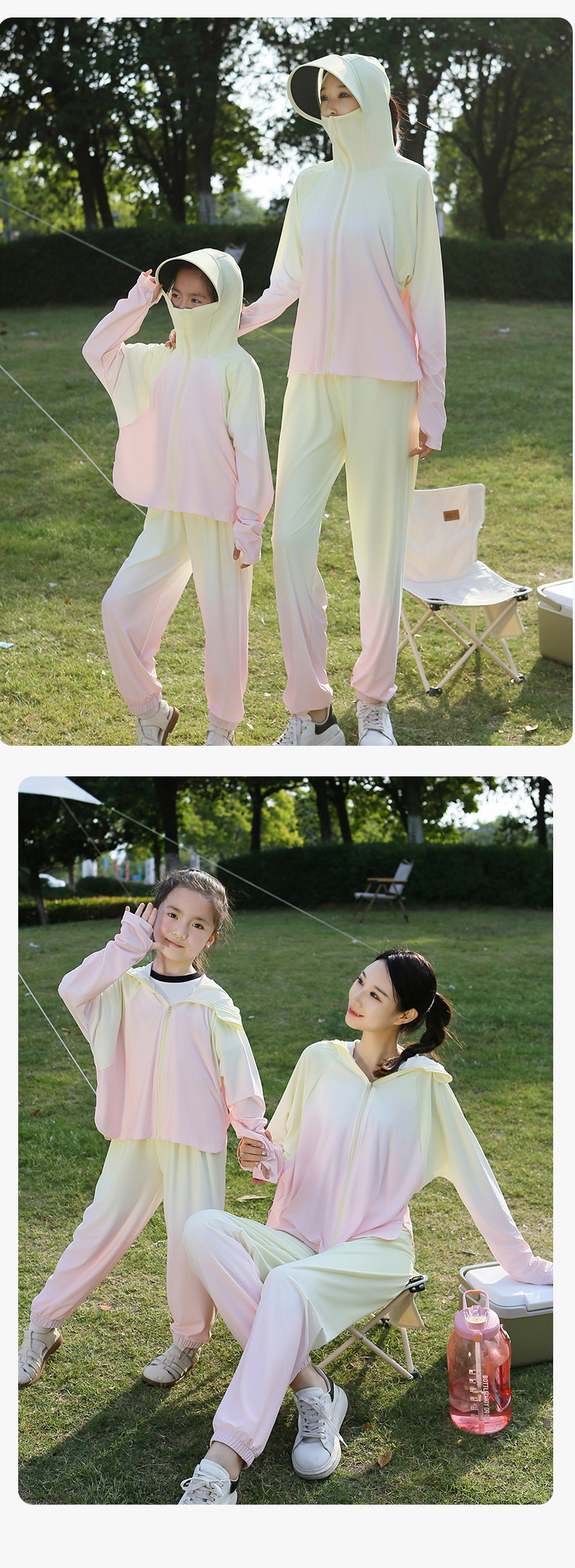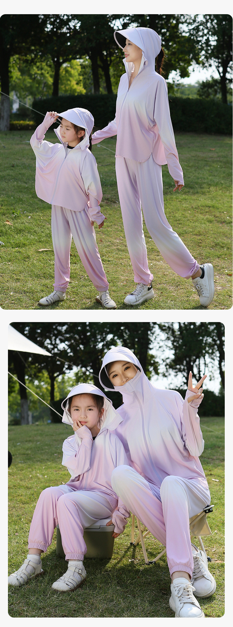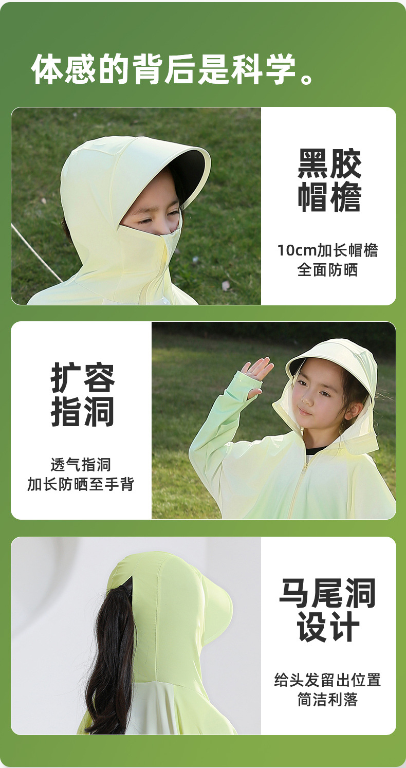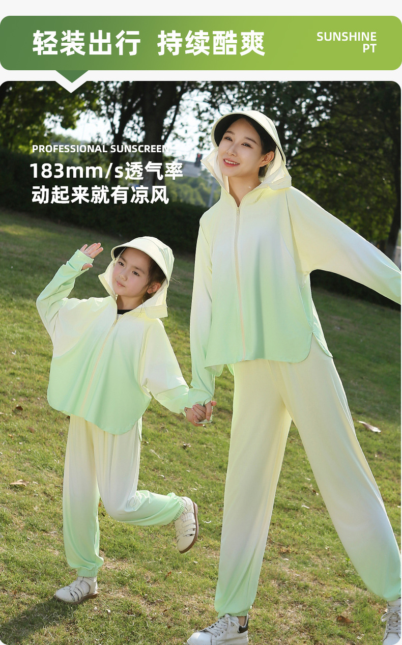雀说渐变款儿童防晒衣男童女童黑胶帽檐防紫外线户外冰丝薄亲子防晒服AL