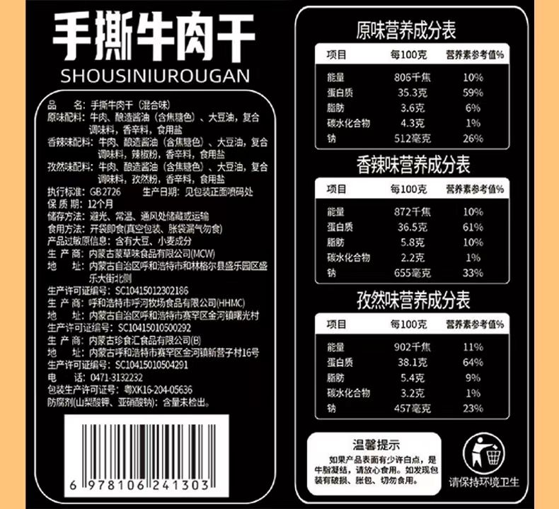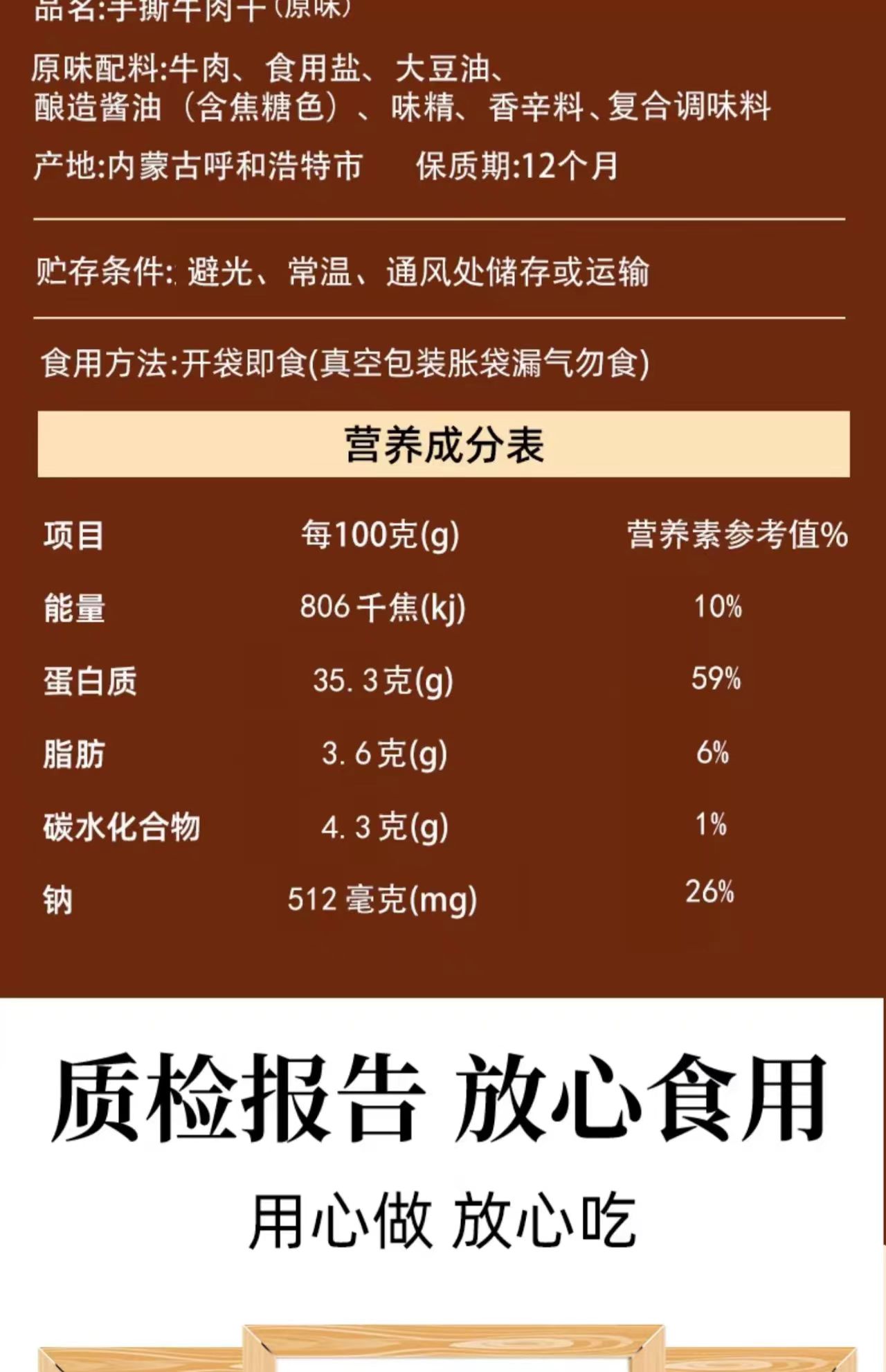 【2袋装】草原良友0无添加剂约6成干内蒙牛肉干草原肉类零食香辣原味手撕风干牛肉干250g*2袋
