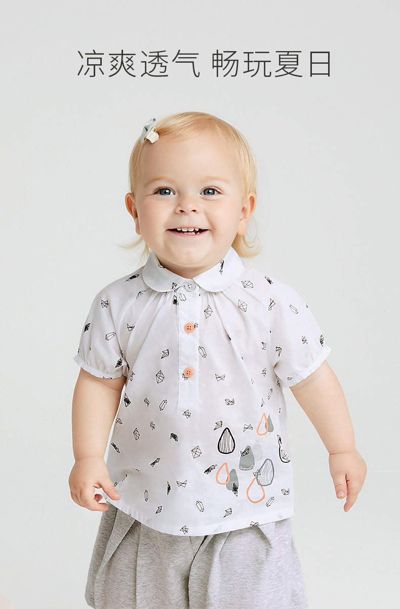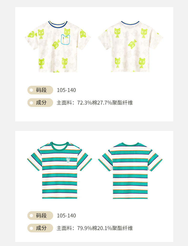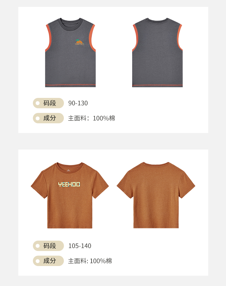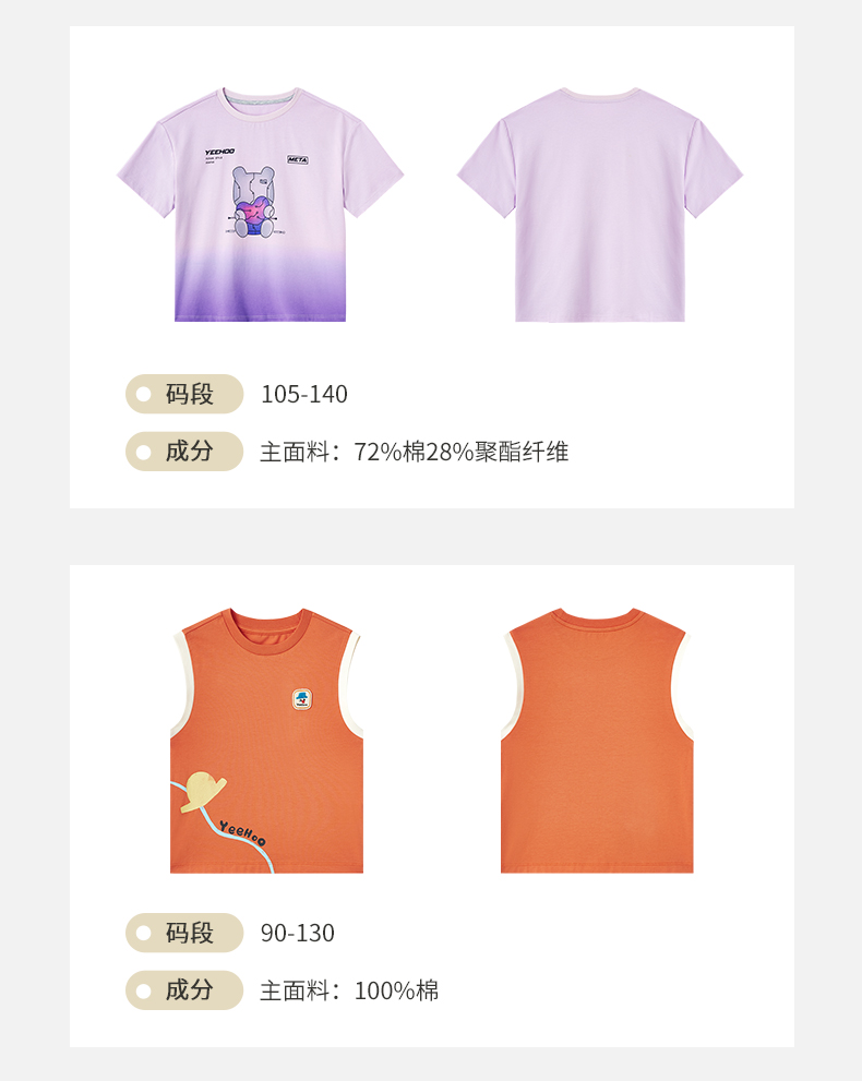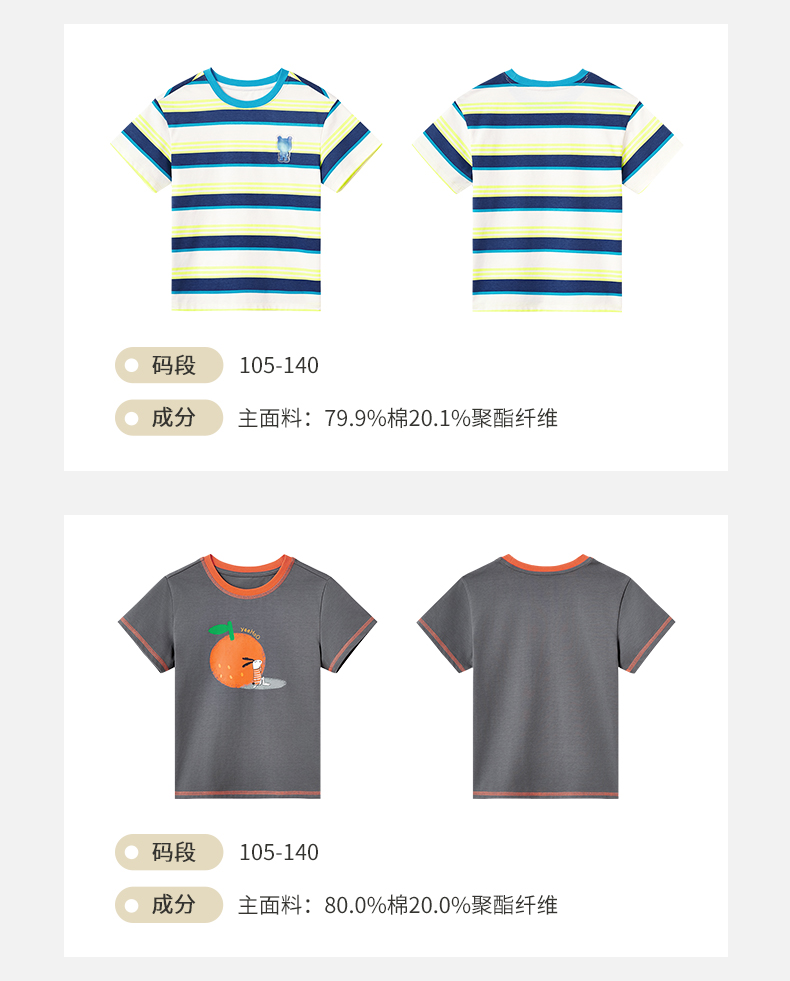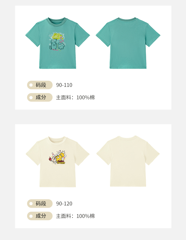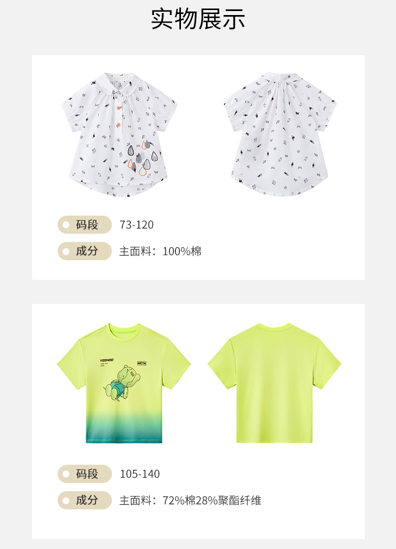 英氏【夏季短袖】童装T恤透气男童女童上衣套头衫外出百搭新款