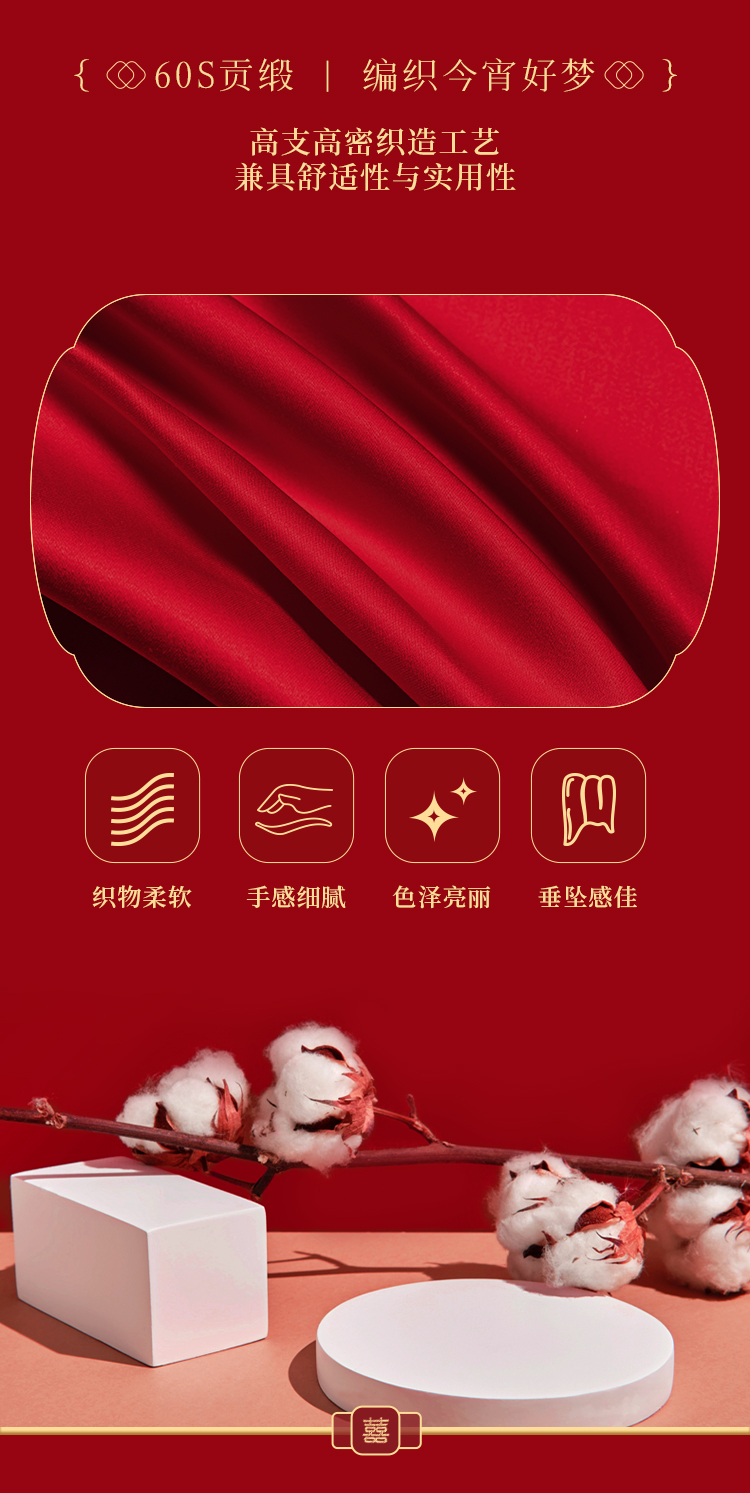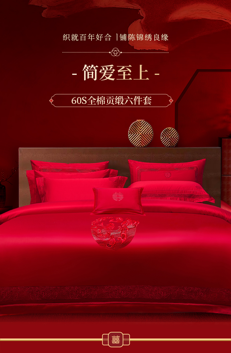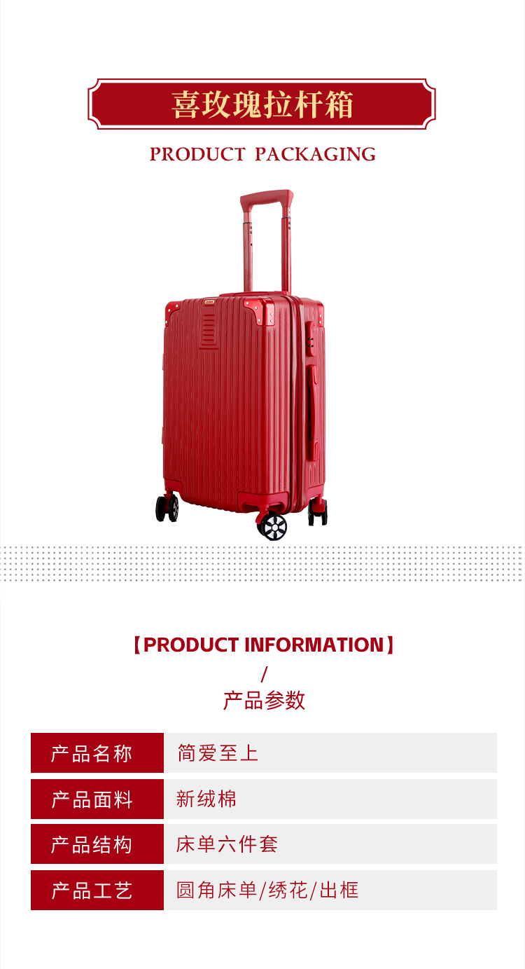 多喜爱 喜玫瑰 60S全棉贡缎六件套 简爱至上【精美刺绣】【拉杆礼箱】【重工刺绣】【宽边工艺】高密贡缎 色泽亮丽 垂坠感佳