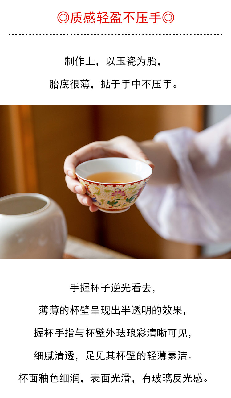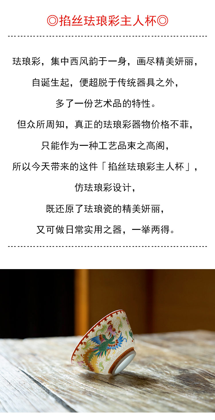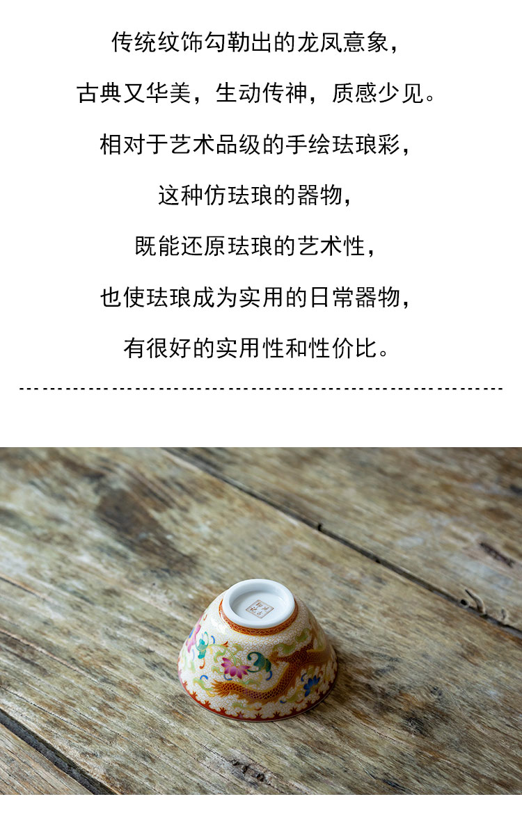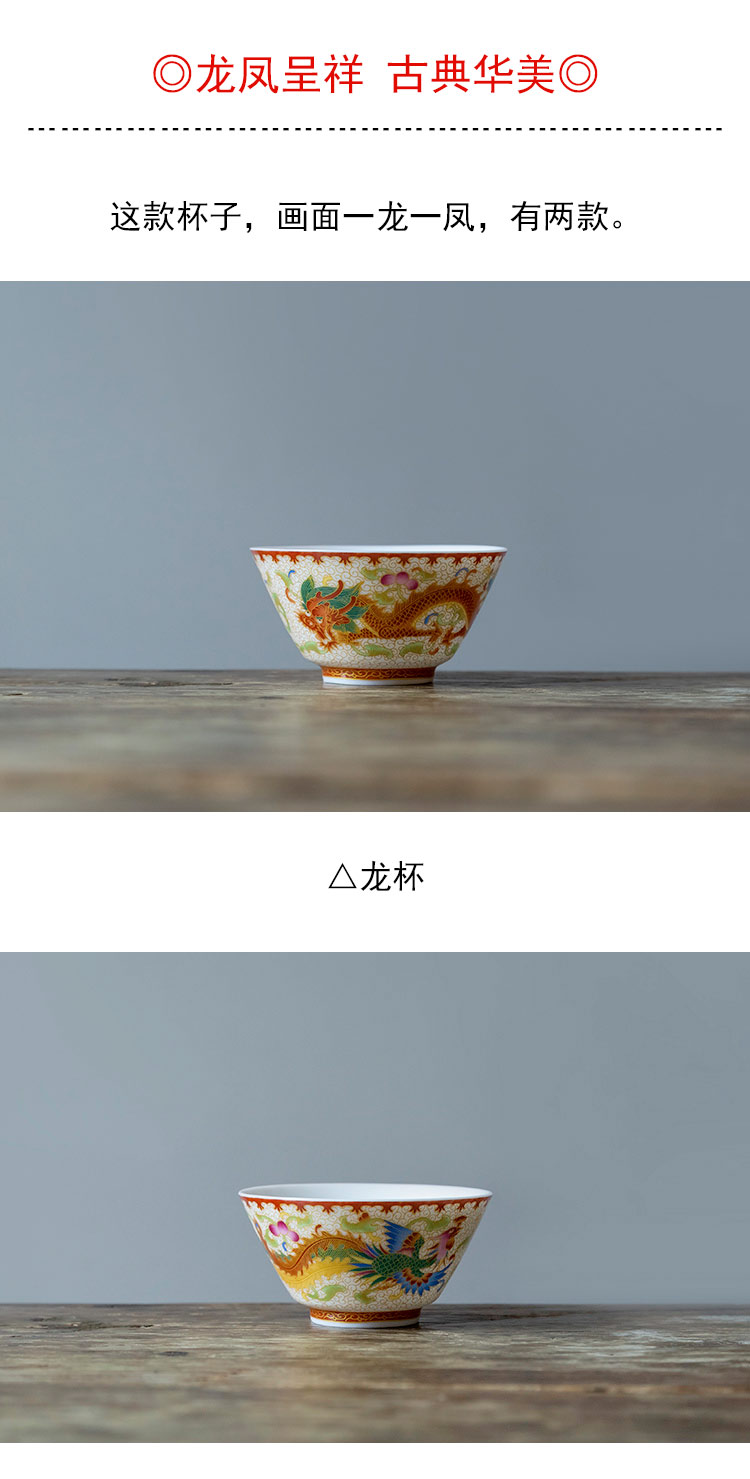 茶香记 掐丝珐琅彩主人杯龙款凤款120ml德化茶杯贴花工艺古典华美