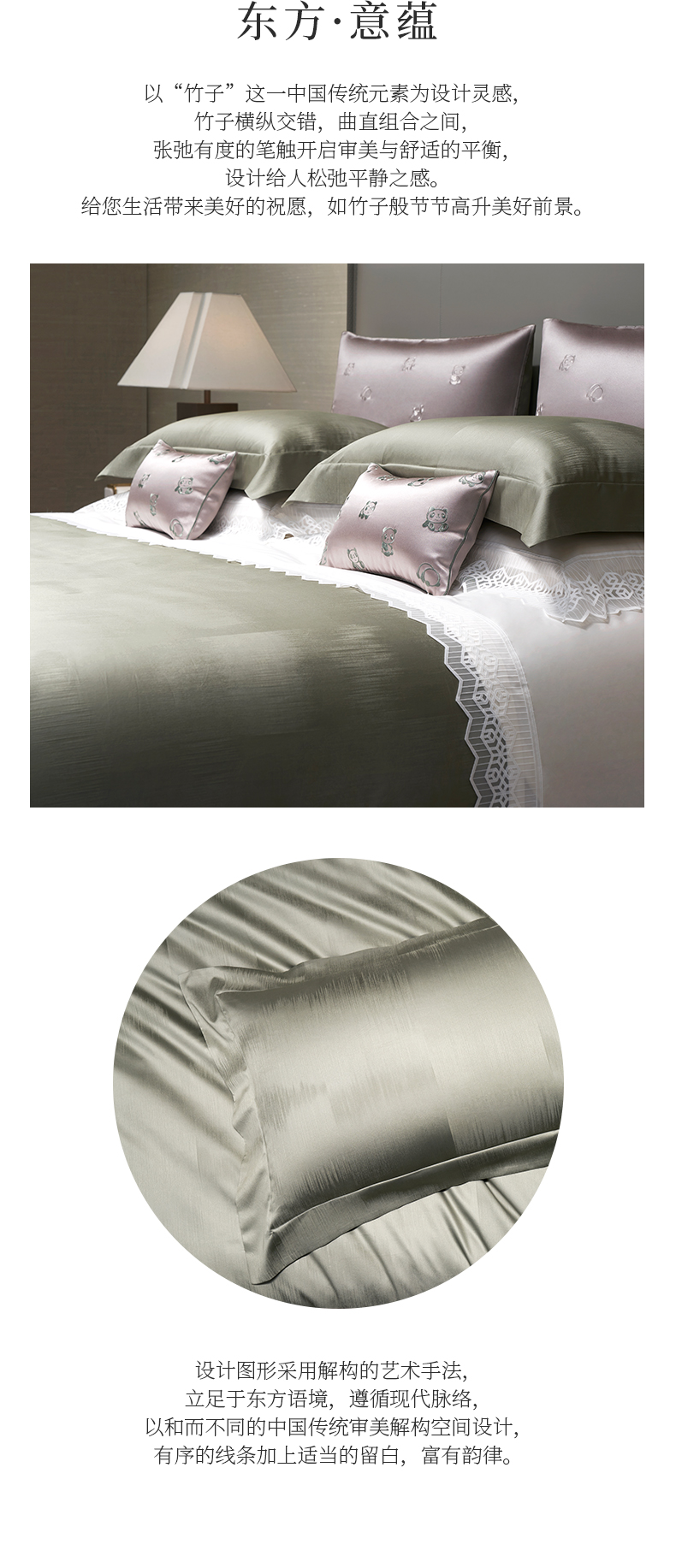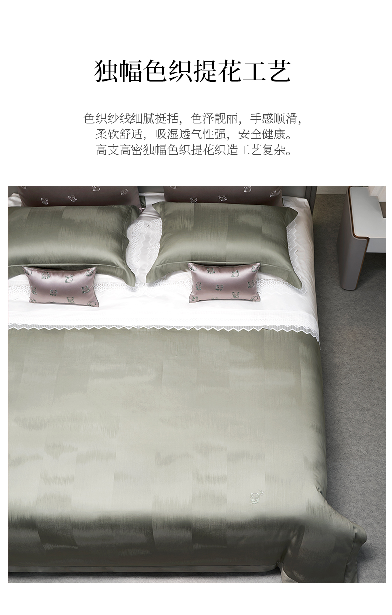 whinny/惠谊 新中式80支全棉新疆长绒棉独幅提花四件套 新竹墩墩