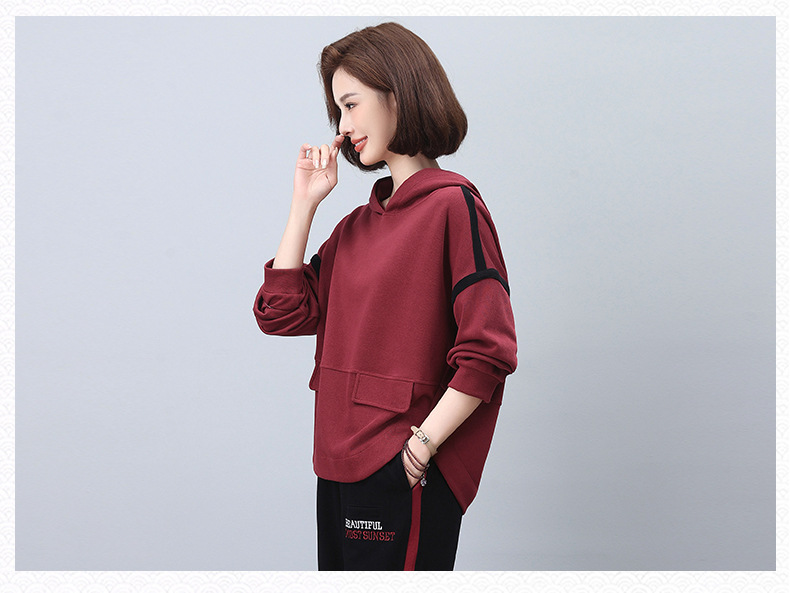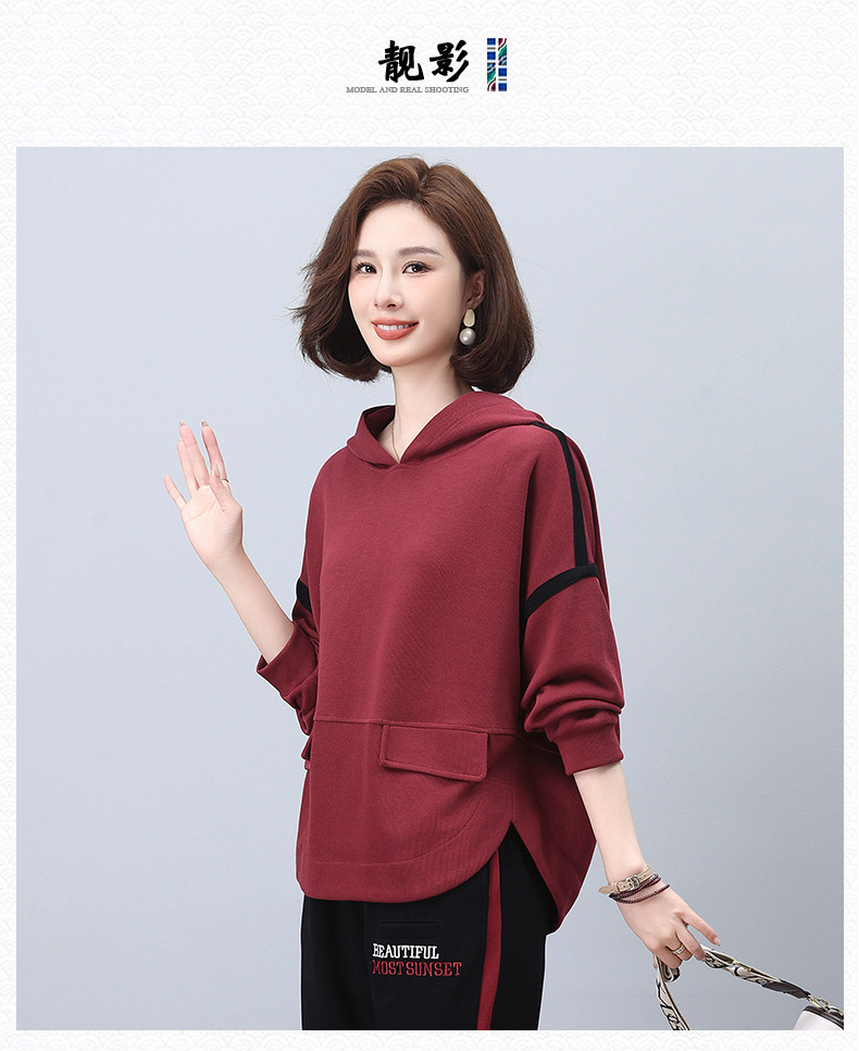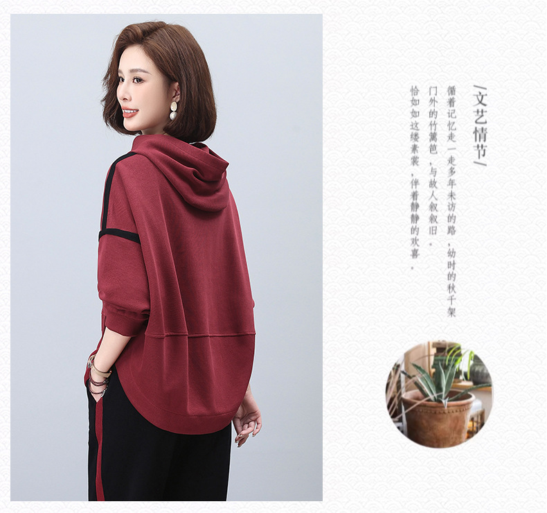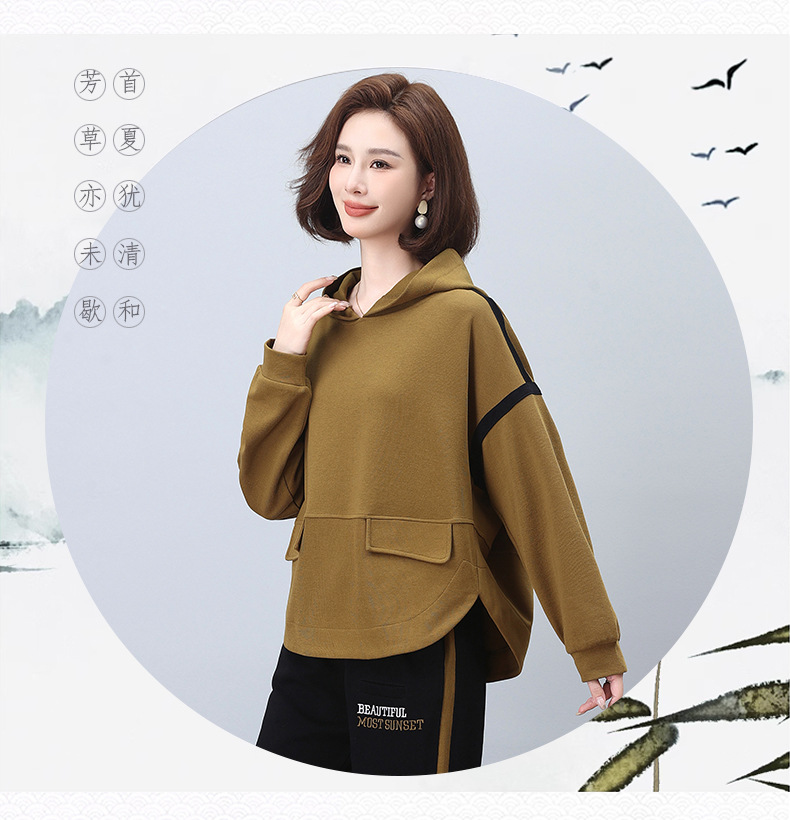 丁摩 连帽卫衣女新款春秋洋气减龄宽松百搭上衣5ZF-1923