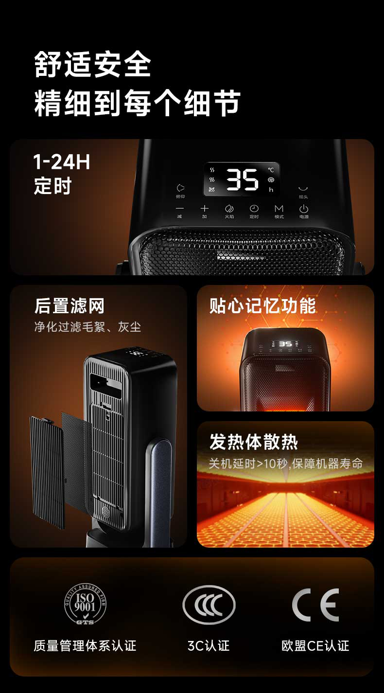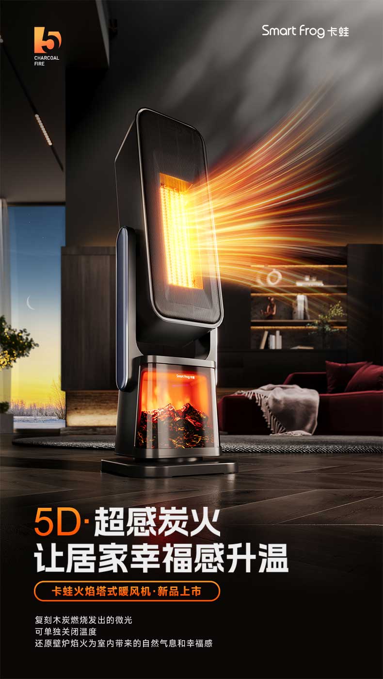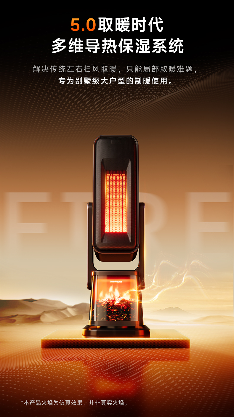 卡蛙火焰暖风机家用石墨烯取暖器办公室电暖气炉小型太阳冬季神器