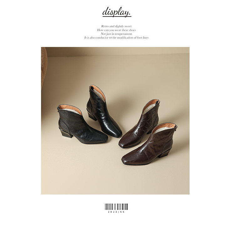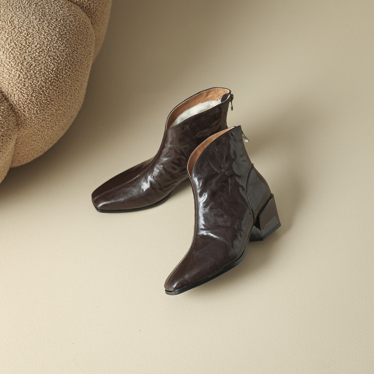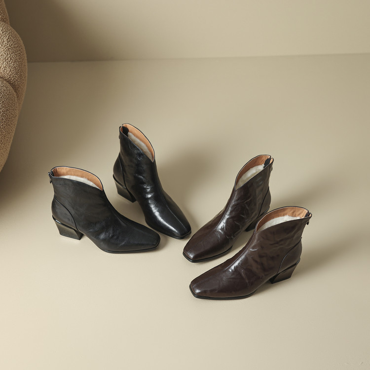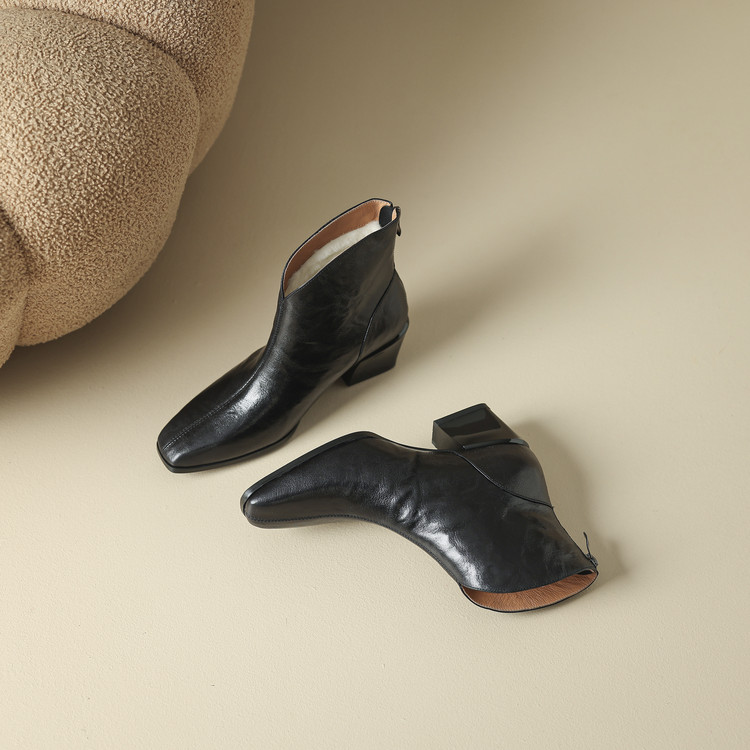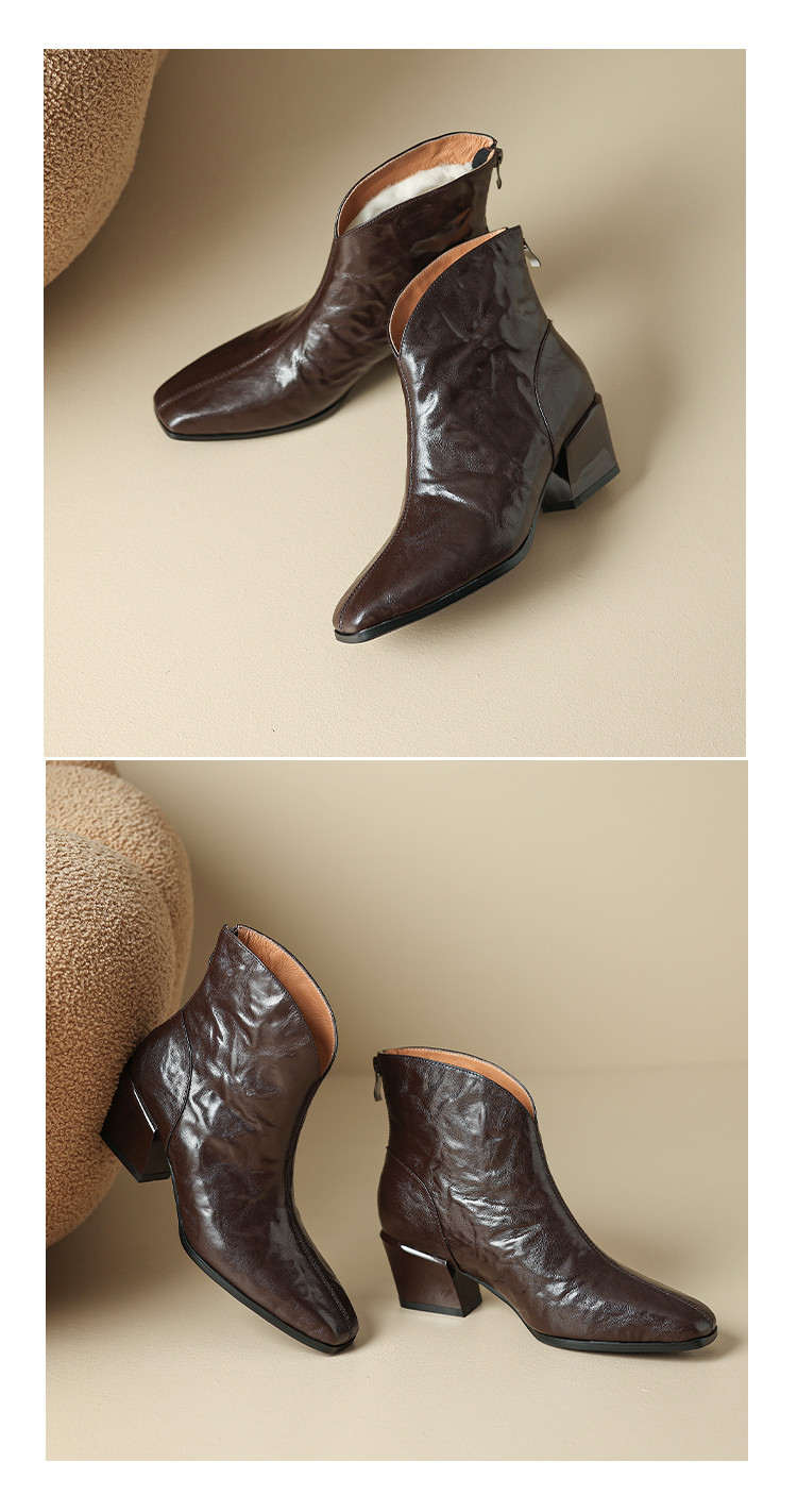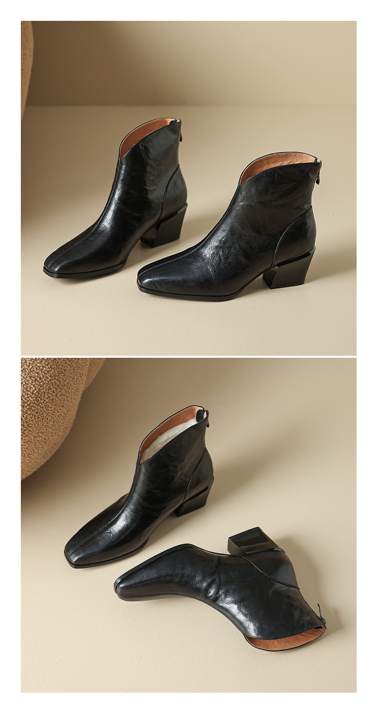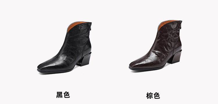 【预售5天】真皮真毛粗跟羊皮短靴女冬季羊羔毛雪地靴方头高跟瘦瘦靴保暖大棉鞋MLJ&C210