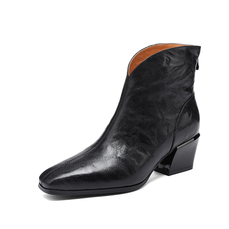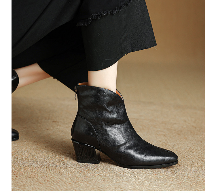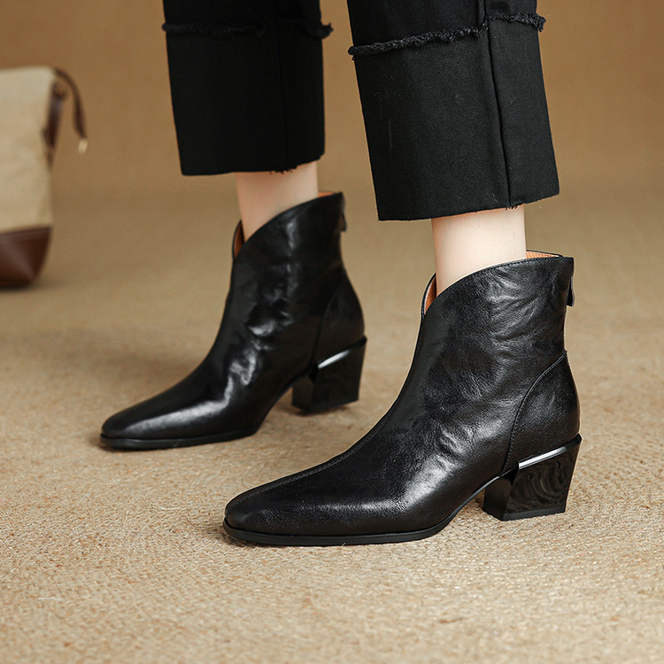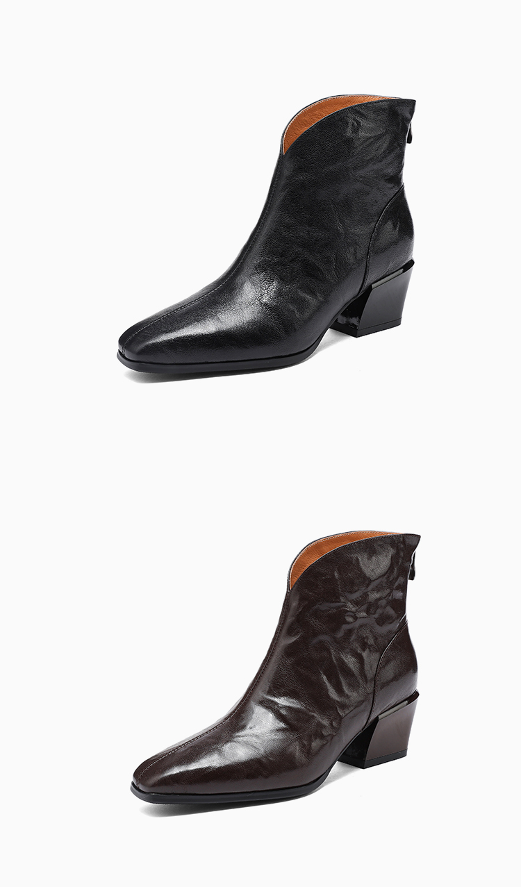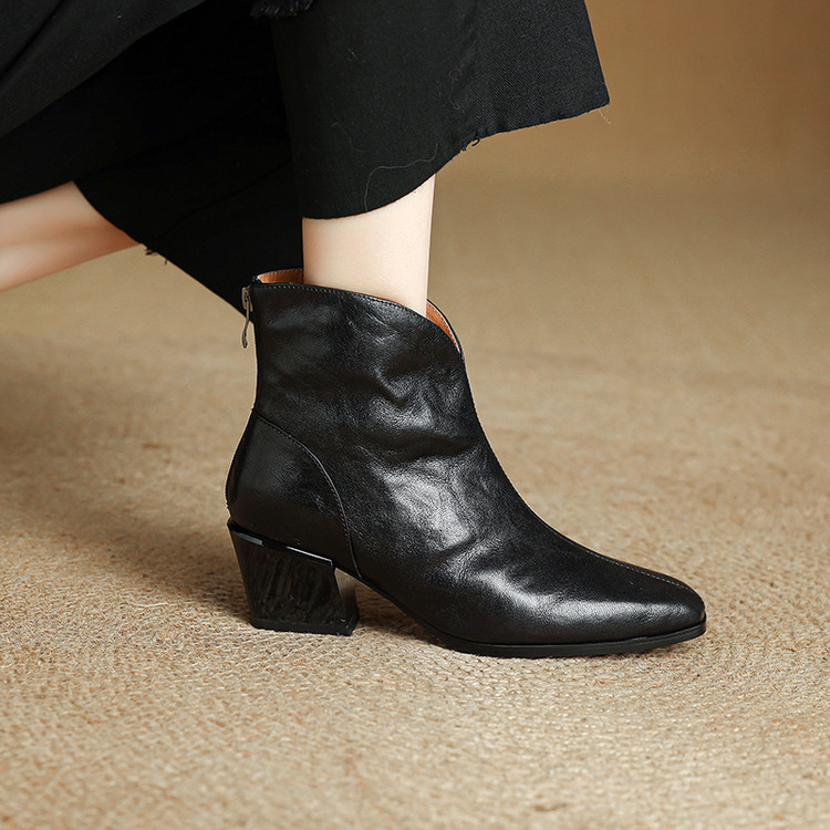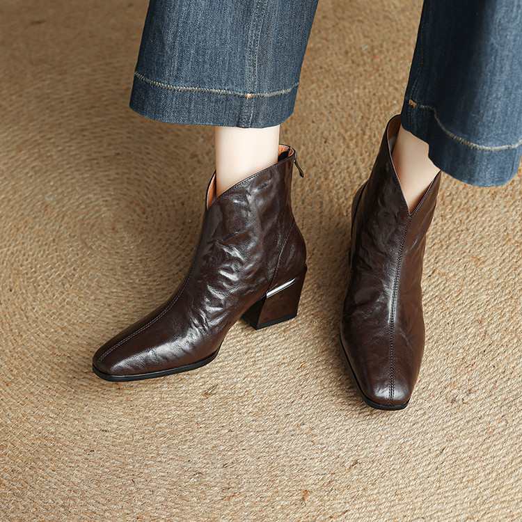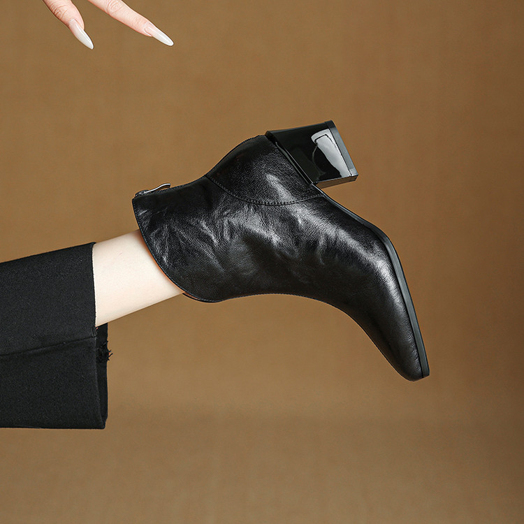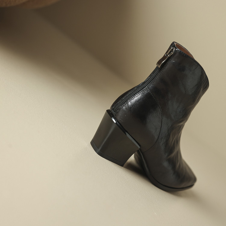 【预售5天】真皮真毛粗跟羊皮短靴女冬季羊羔毛雪地靴方头高跟瘦瘦靴保暖大棉鞋MLJ&C210